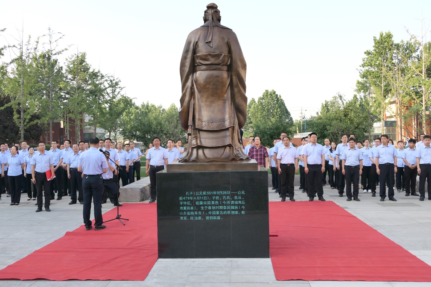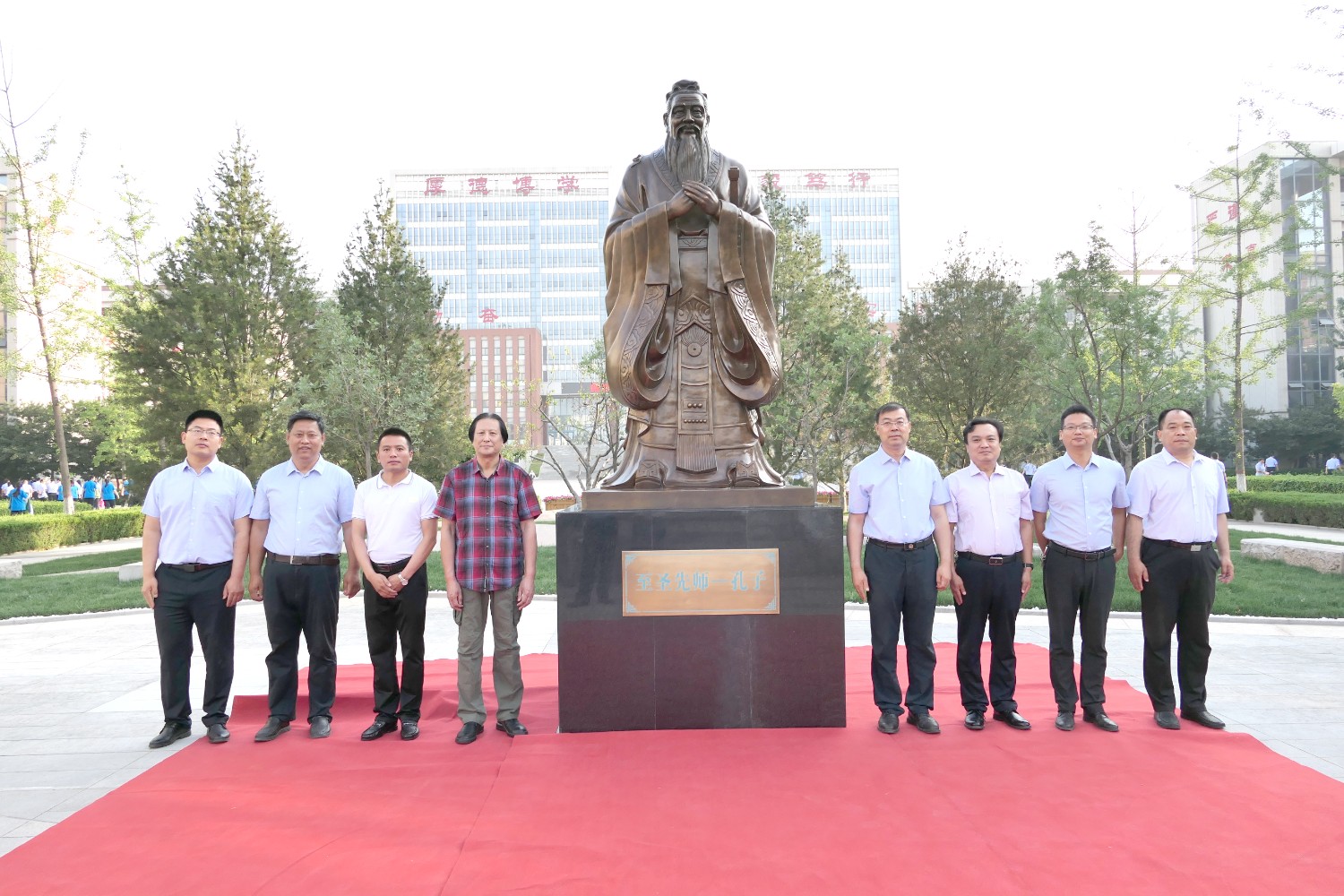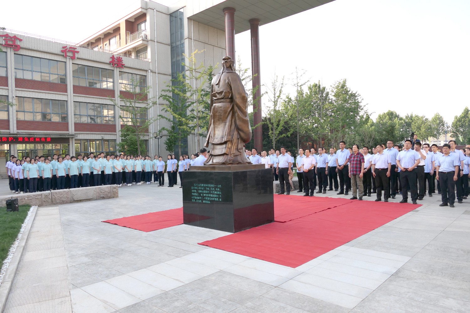 2022年6月2日早7时,临淄中学举行孔子铜像落成典礼,傅绍相董事长应邀出席揭幕仪式。全校师生代表参加典礼,杨希亮党委书记、校长致辞。傅绍相与杨希亮校长及师生代表揭幕。孔子铜像由傅绍相设计,华艺安博买球精心制作,孔子铜像的落成得到了全校师生的高度赞誉。