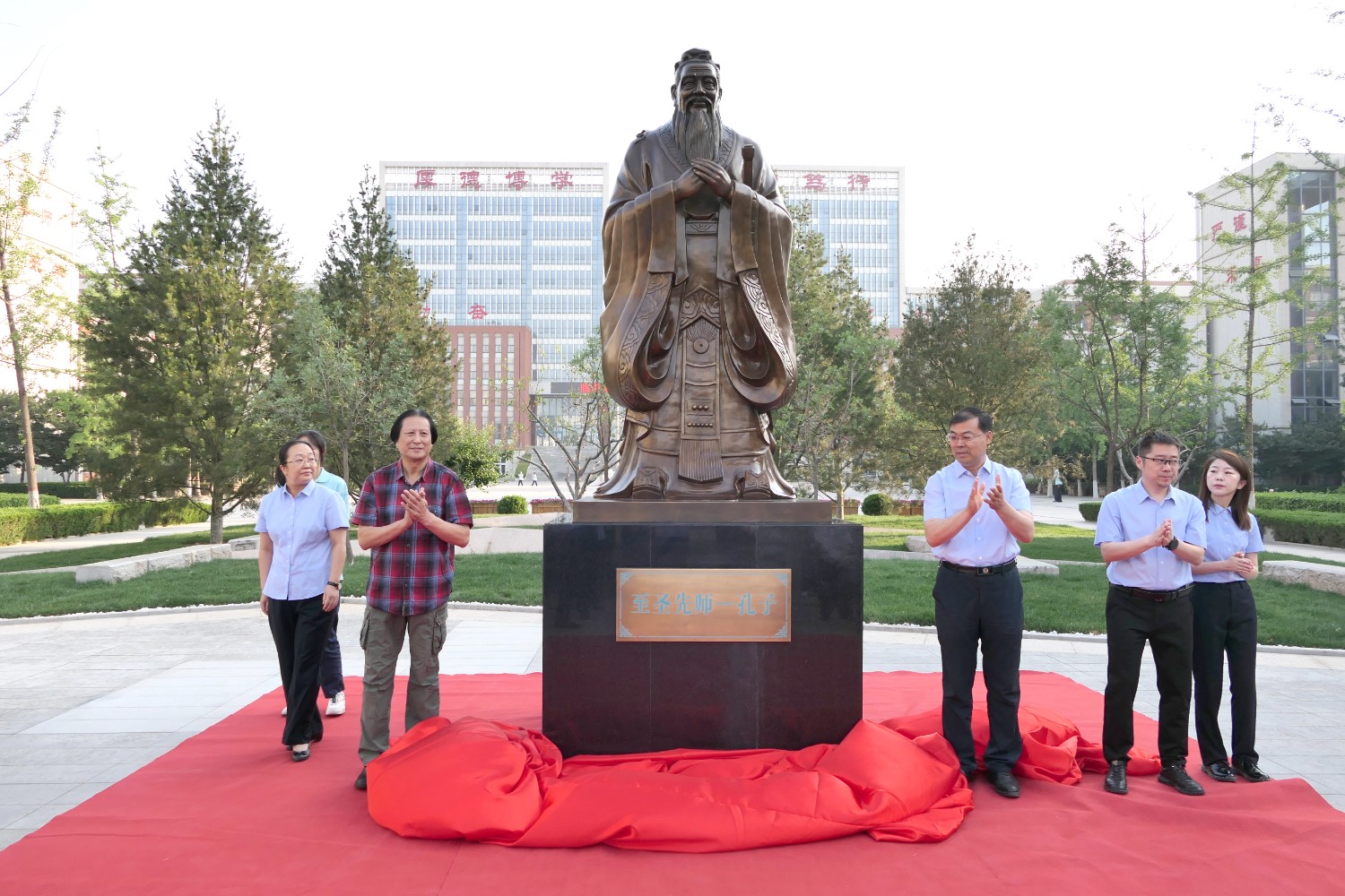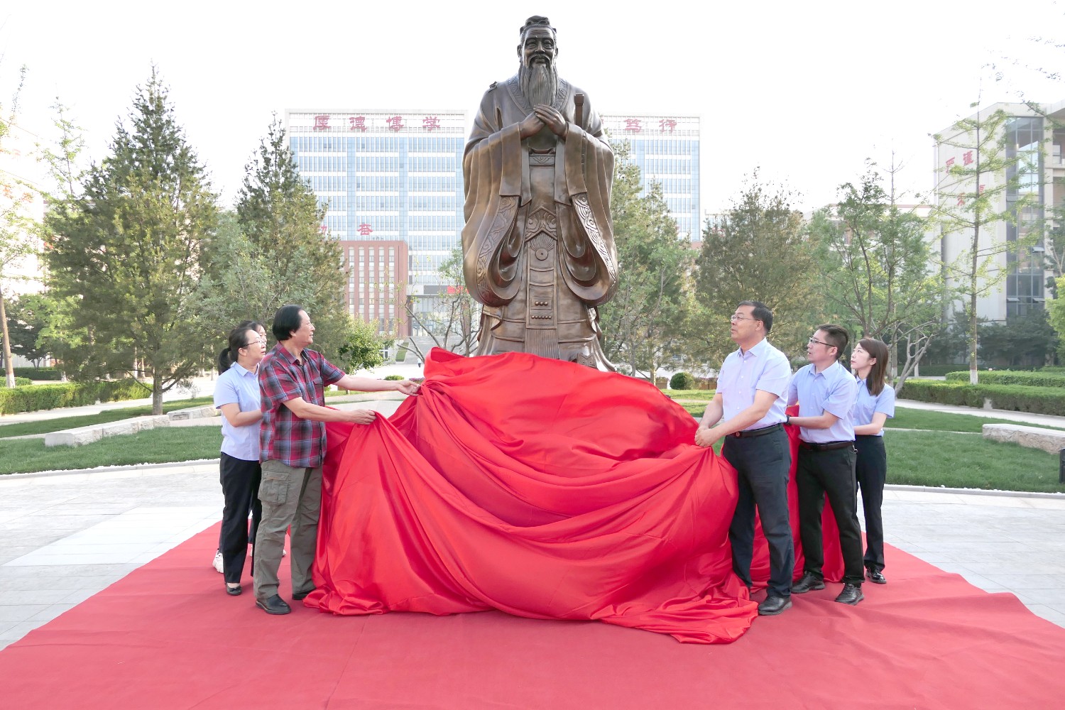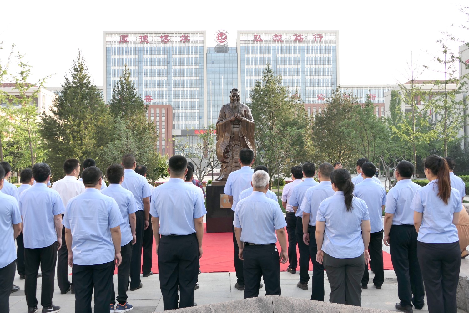 2022年6月2日早7时,临淄中学举行孔子铜像落成典礼,傅绍相董事长应邀出席揭幕仪式。全校师生代表参加典礼,杨希亮党委书记、校长致辞。傅绍相与杨希亮校长及师生代表揭幕。孔子铜像由傅绍相设计,华艺安博买球精心制作,孔子铜像的落成得到了全校师生的高度赞誉。