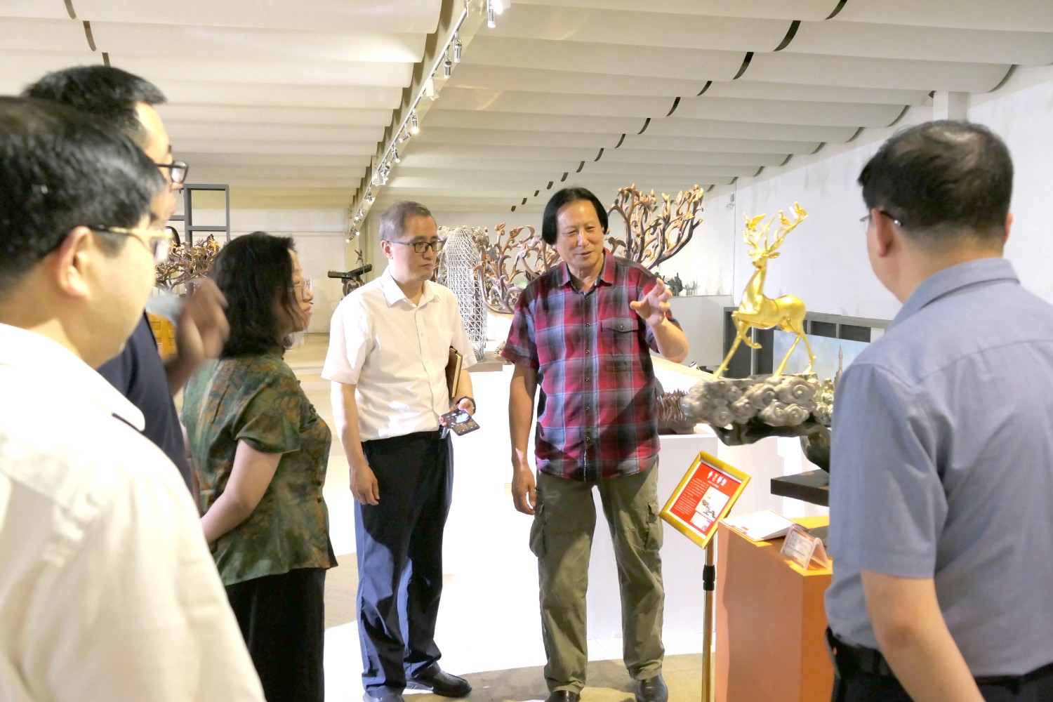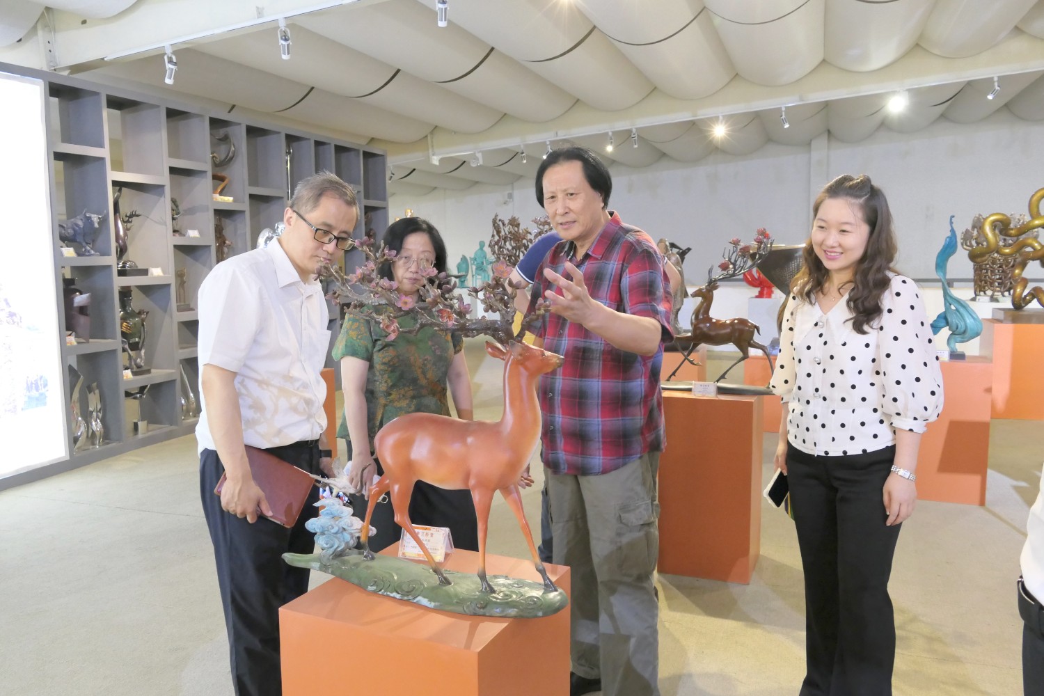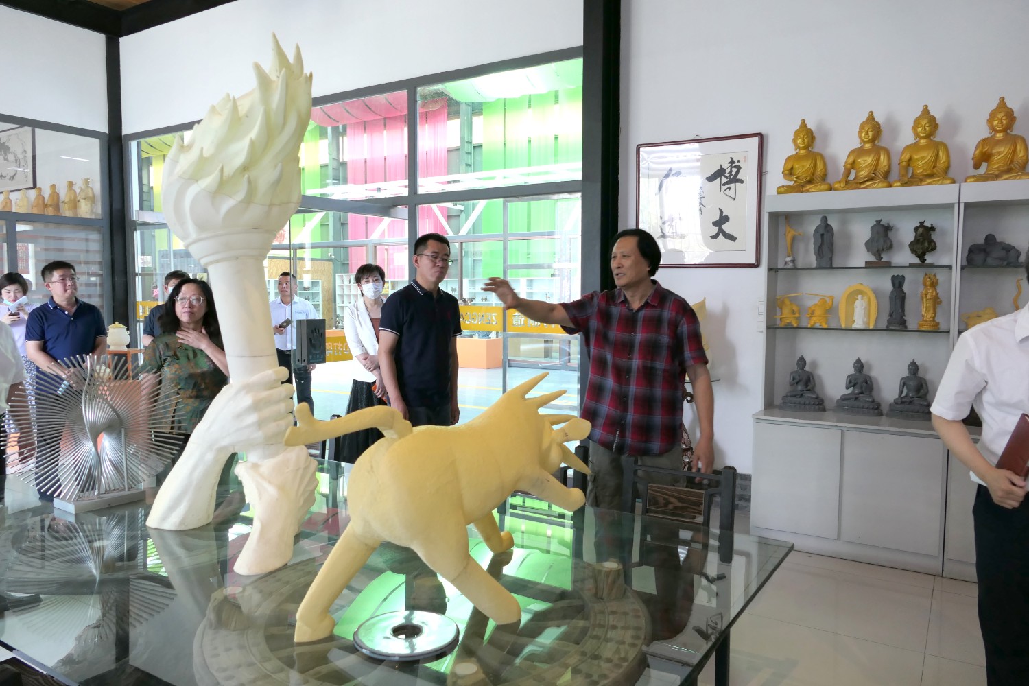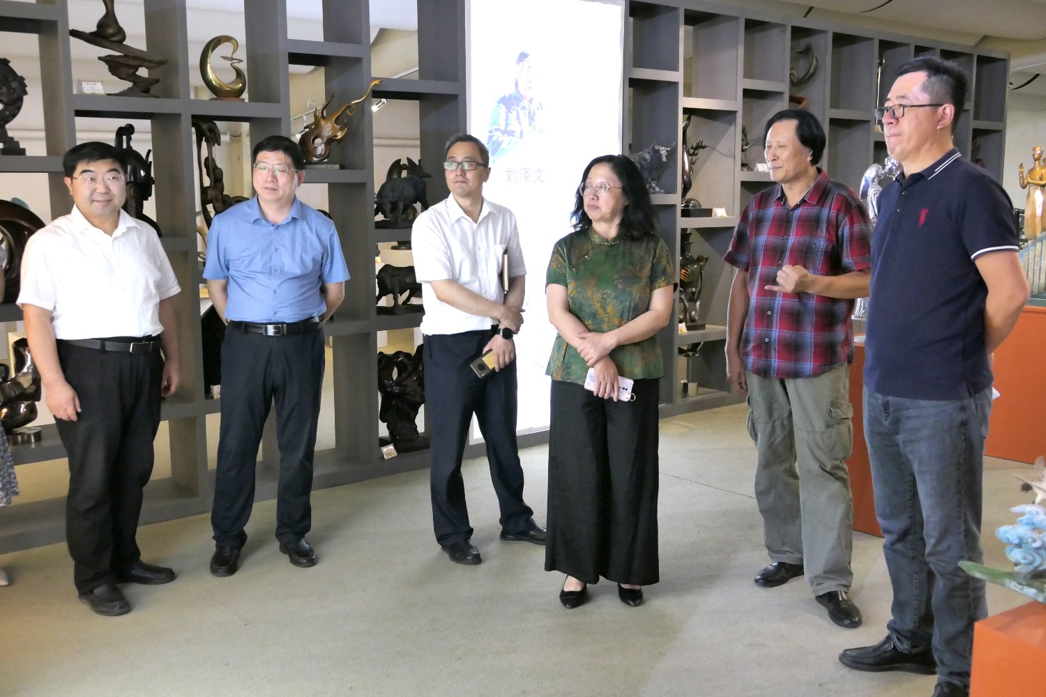 2022-7-52022年6月8日,山东省委宣传部文改办副主任王晔。昝胜锋,济南工艺美术学会会长,山东大学文化产业研究院院长。刘绍芹,山东青年政治学院文化传播学院院长,中国地域文化传播研究中心主任。李金芳,山东文旅景区投资集团宣传营销中心经理等领导,在潍坊市委宣传部副部长田义明,齐鲁文化(潍坊)生态保护区服务中心主任高增光,市委宣传部文化科科长王绍芳,市新时代文明实践中心副主任杨国平的陪同下,莅临华艺调研“山东手造100”企业情况。临朐县委宣传部长刘莹有,县文化中心主任李咏梅,县委宣传部办公室主任刘鹏,宣传部文化科科长祝红蕾等领导陪同参观调研。傅绍相董事长介绍安博买球艺术及企业“山东手造”发展情况。