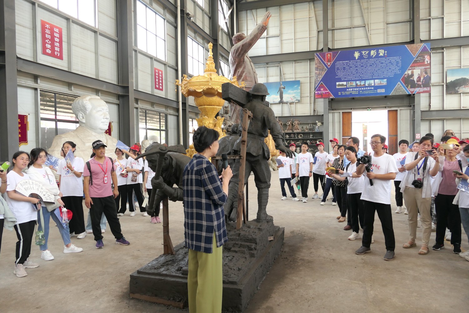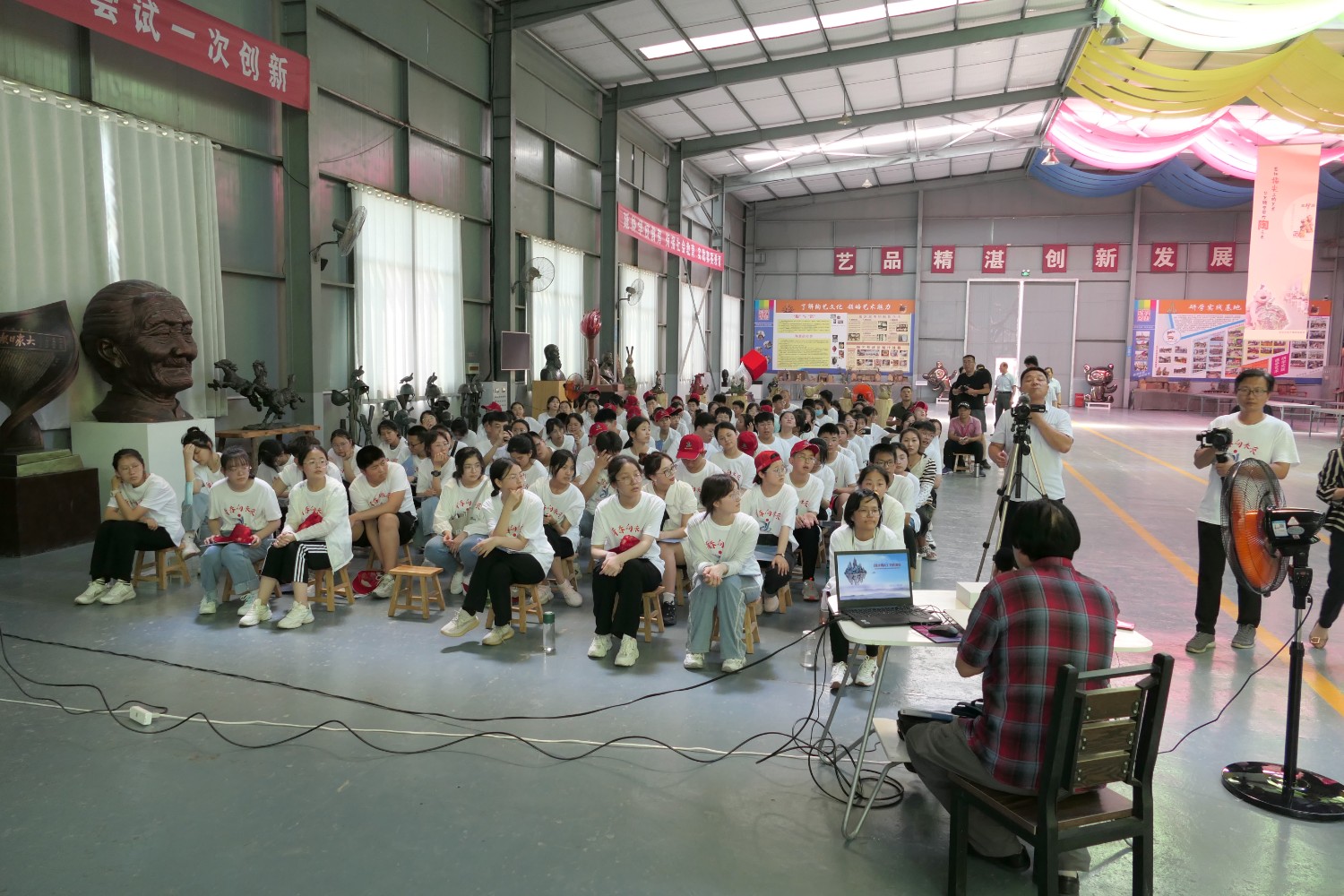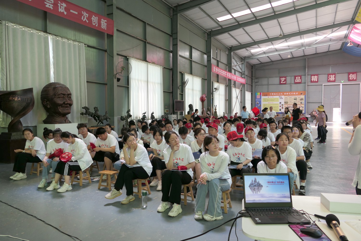 2022年6月18日,临朐县综合实践学校莅临华艺安博买球参加实践培训。傅绍相作了文创《绿水青山》系列作品的讲座,精心的构思、精湛的作品得到了师生的共同赞誉。比利时安博买球家闫淑芬现场安博买球《一战华工》泥塑介绍,使全体师生受益匪浅。