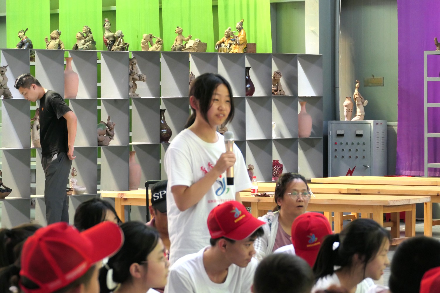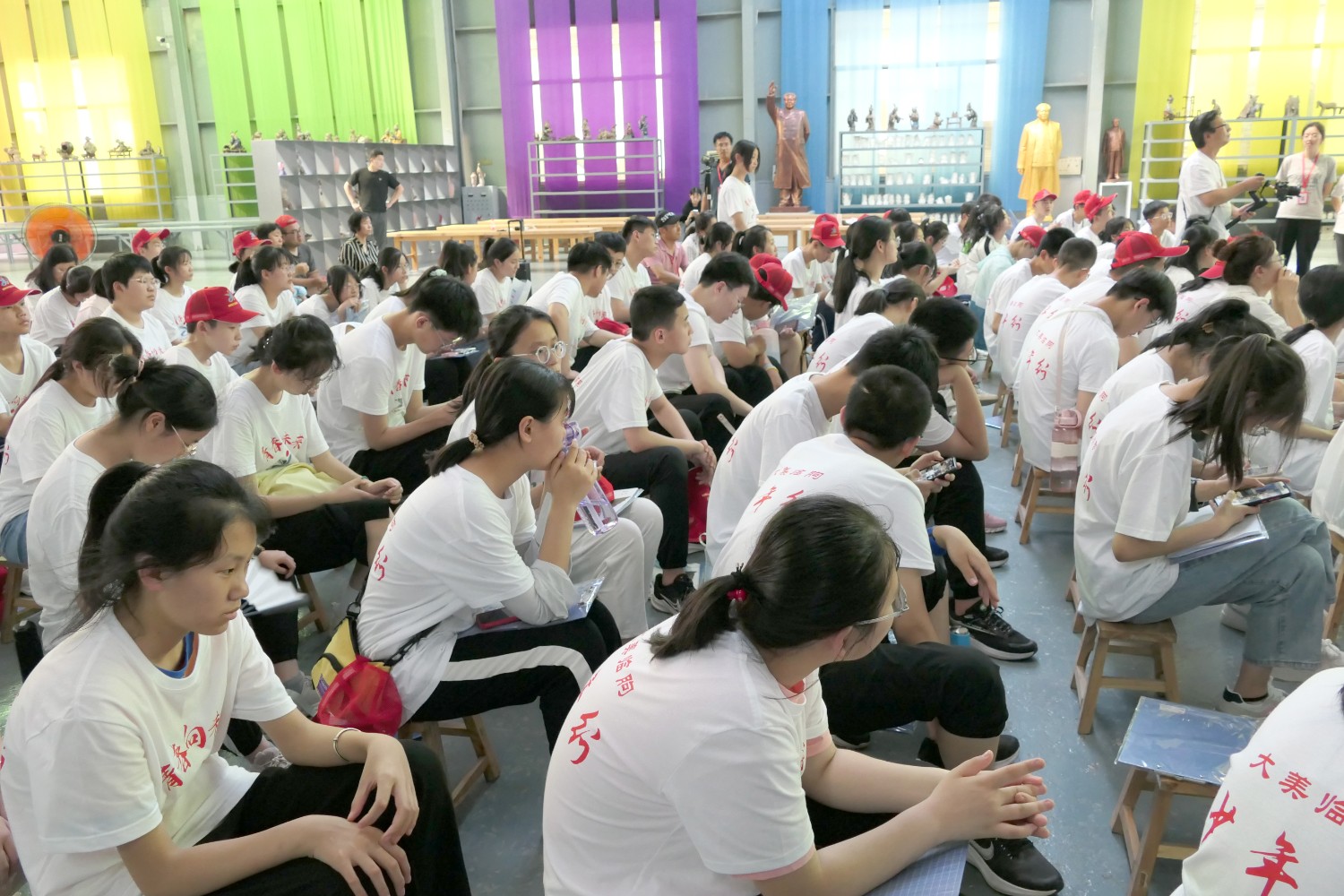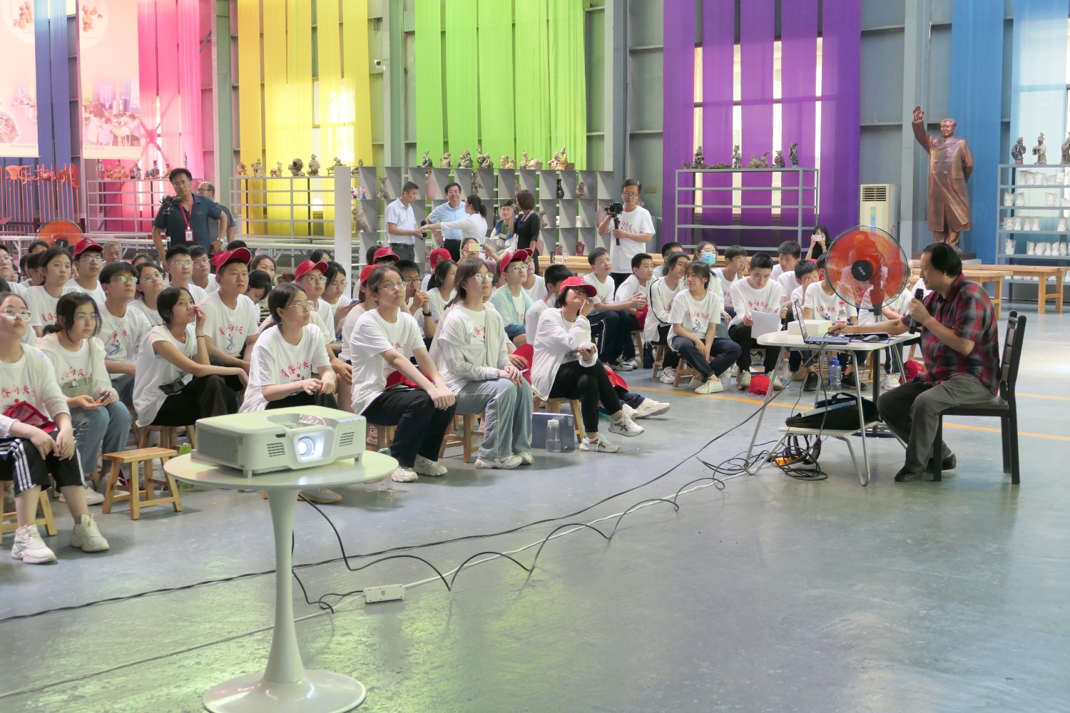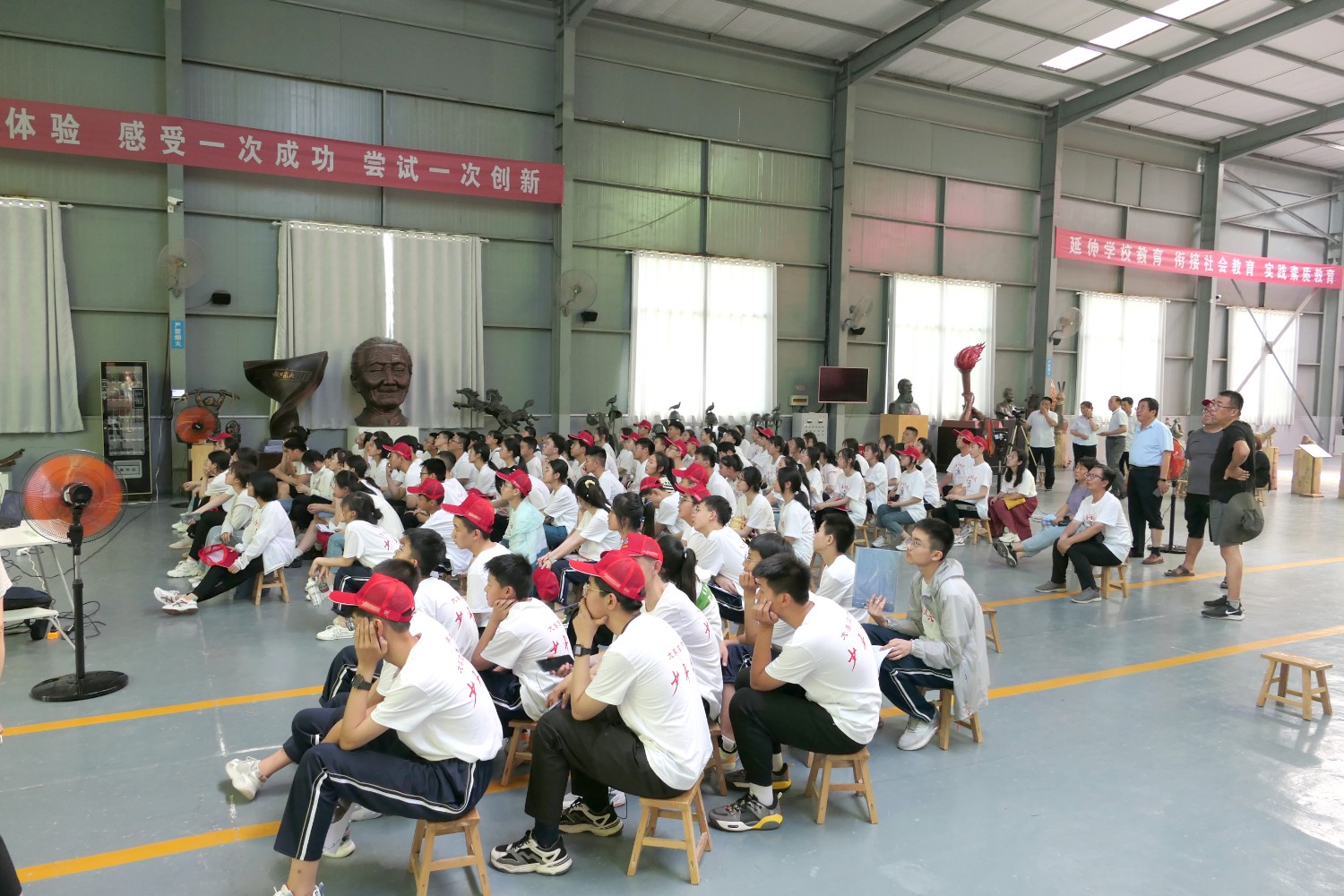 2022年6月18日,临朐县综合实践学校莅临华艺安博买球参加实践培训。傅绍相作了文创《绿水青山》系列作品的讲座,精心的构思、精湛的作品得到了师生的共同赞誉。比利时安博买球家闫淑芬现场安博买球《一战华工》泥塑介绍,使全体师生受益匪浅。