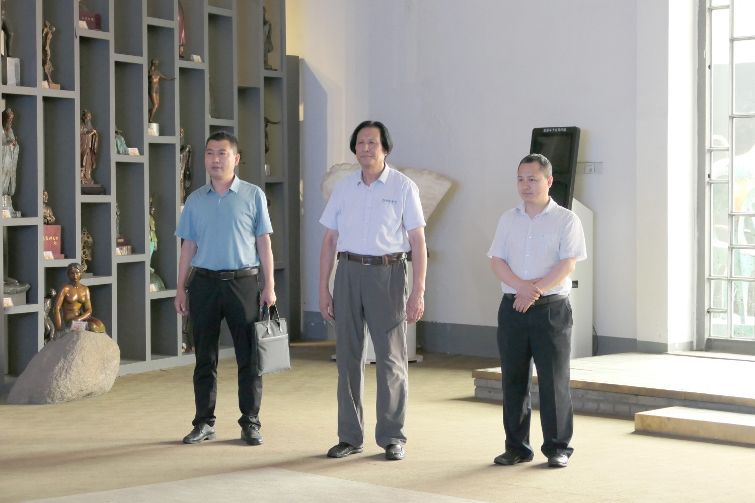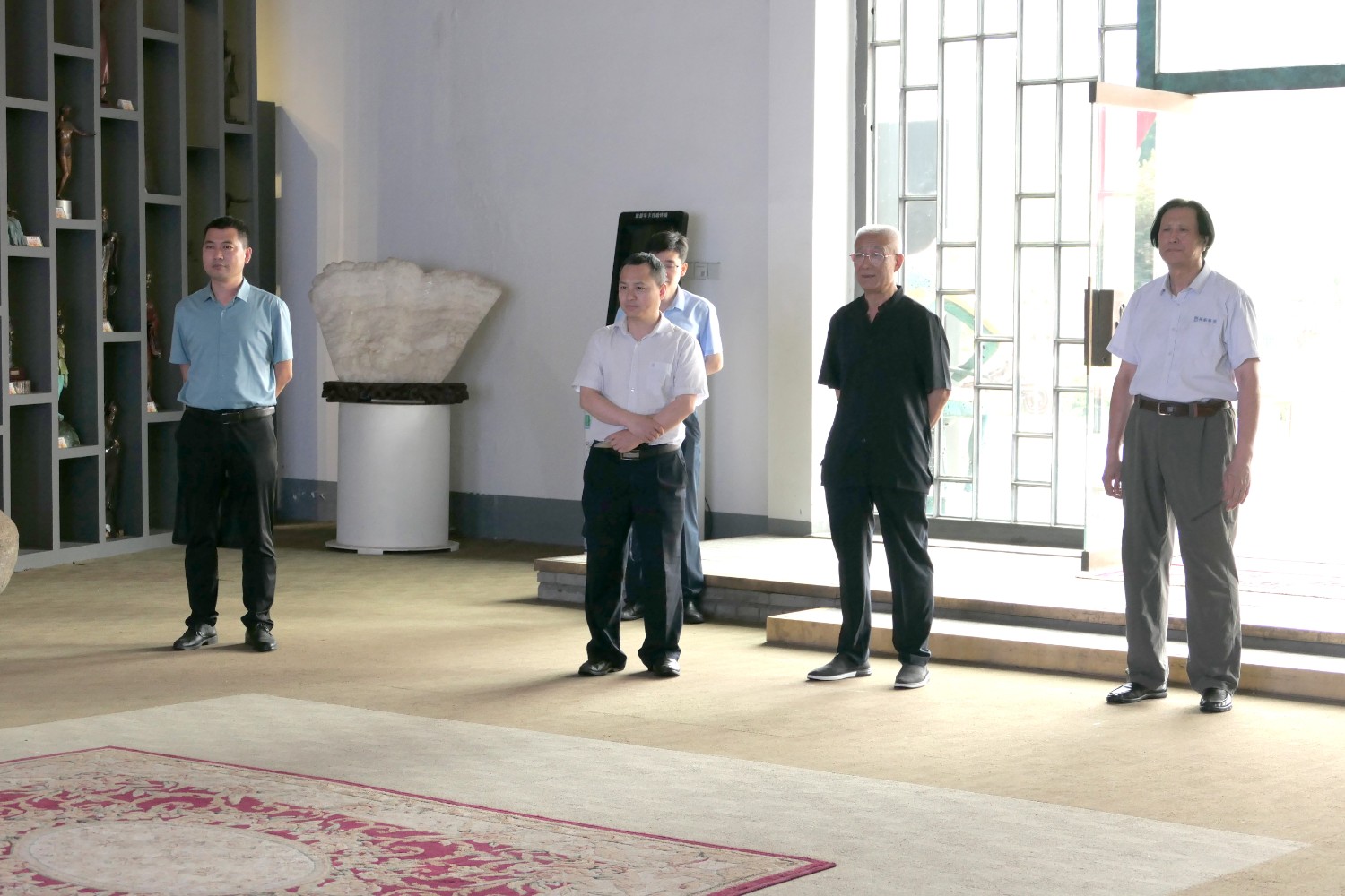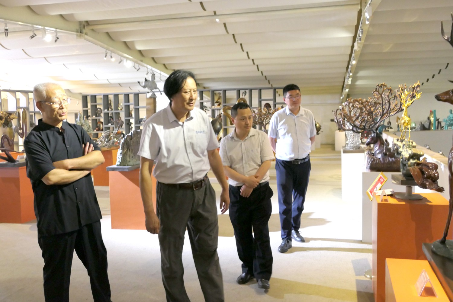2022年6月23日,青岛铁路有限责任公司潍坊分公司总经理宋文超,中铁上海设计院曹栋,中铁二十三局集团中原区域总部潍坊分公司经理李善龙,中铁二十三局集团程向明一行,莅临华艺安博买球参观指导。傅绍相与嘉宾进行友好交流及介绍文创安博买球作品。
