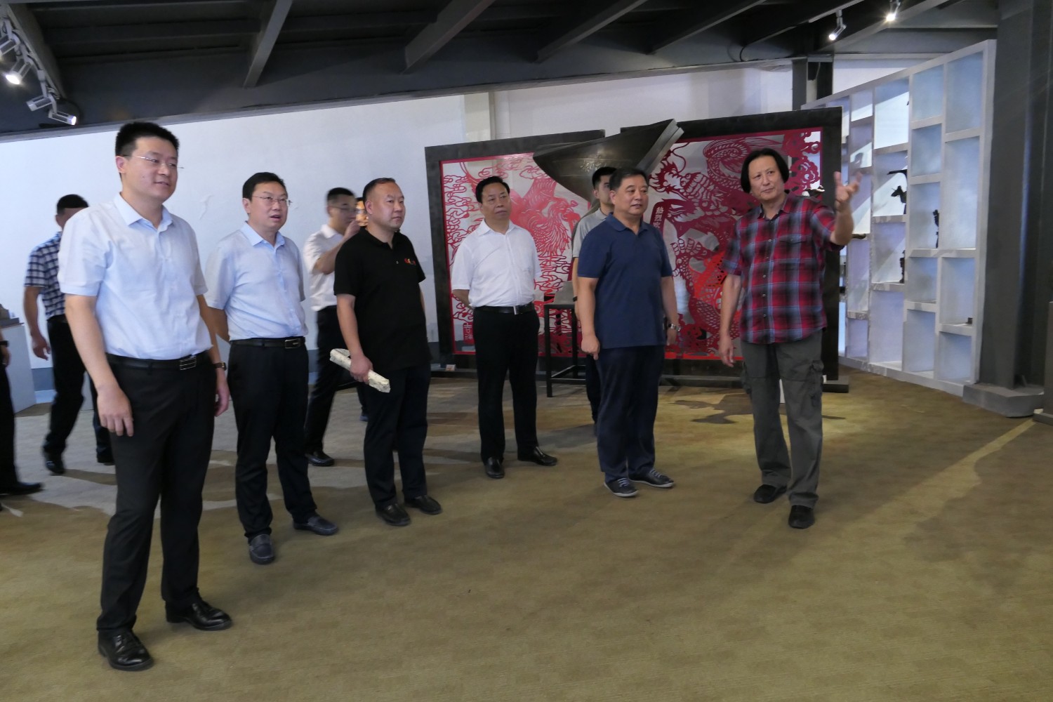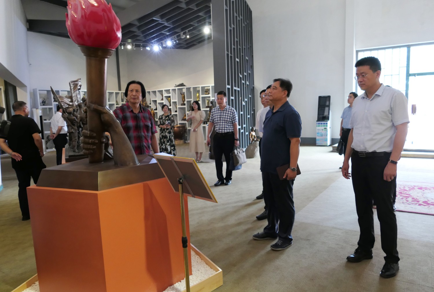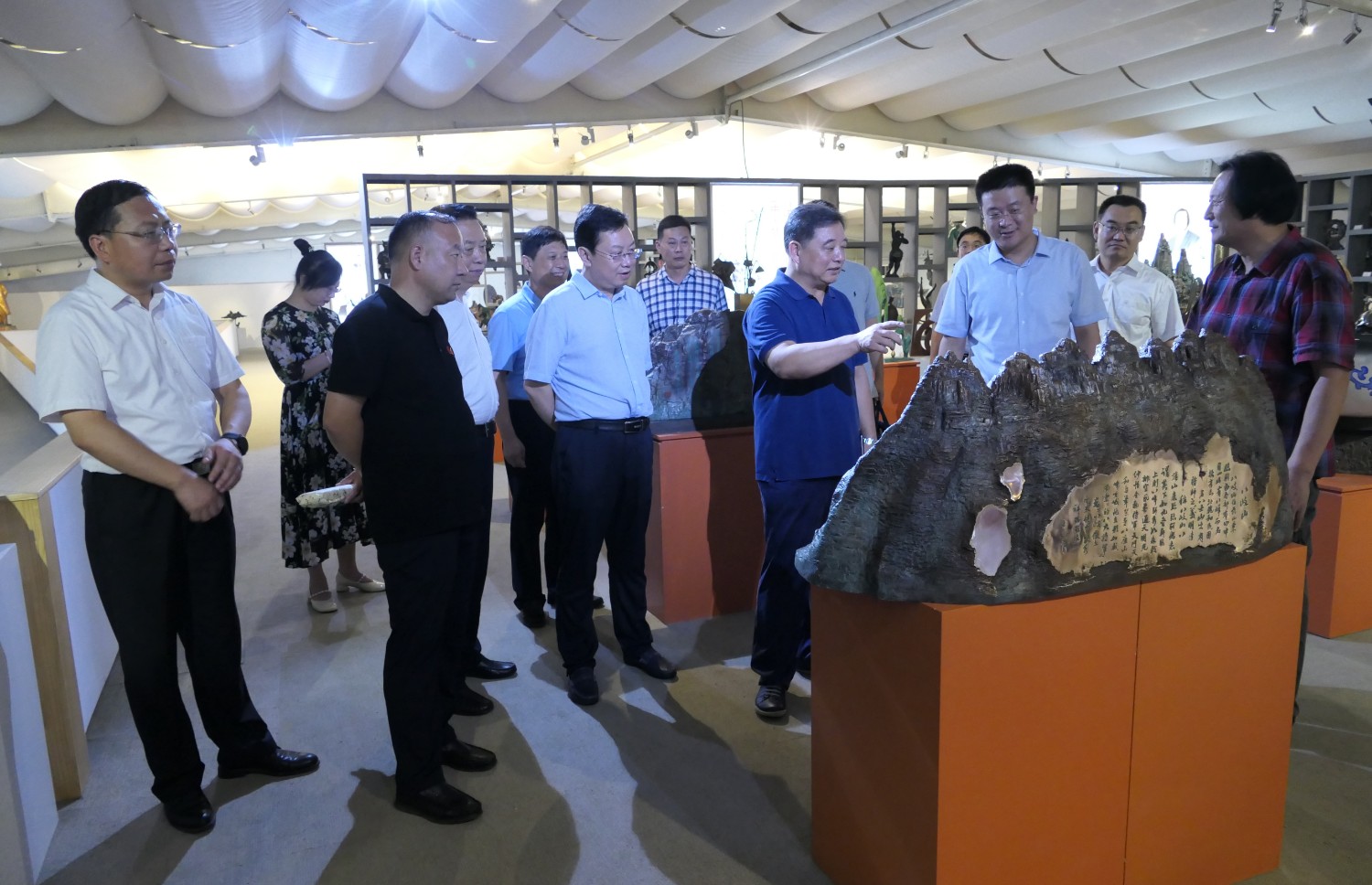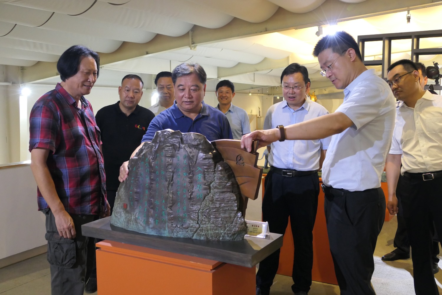 2022年7月18日, 临朐县委副书记、县长陈诚陪同山东省委党校(山东省行政学院)常务校长、沂蒙干部学院院长(兼)徐闻,潍坊市委党校常务副校长丁志伟,潍坊市副市长狄波等领导莅临华艺安博买球参观指导,傅绍相董事长介绍安博买球艺术。