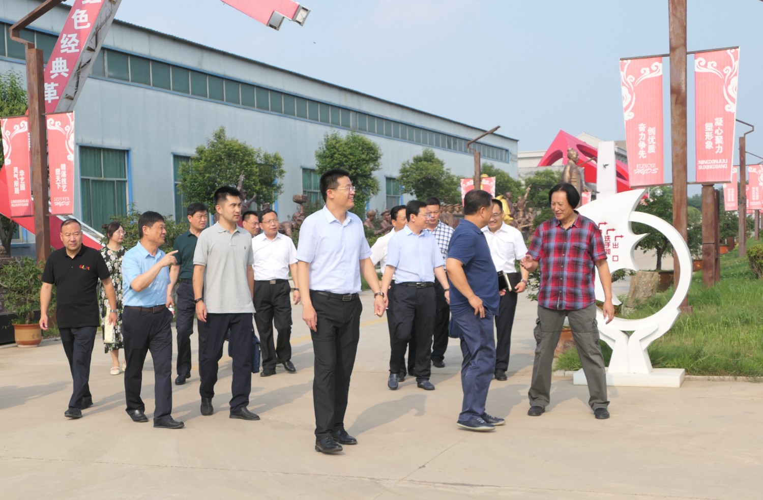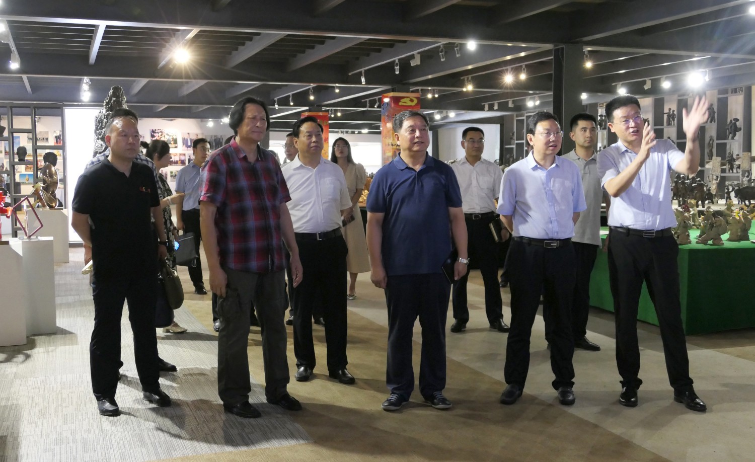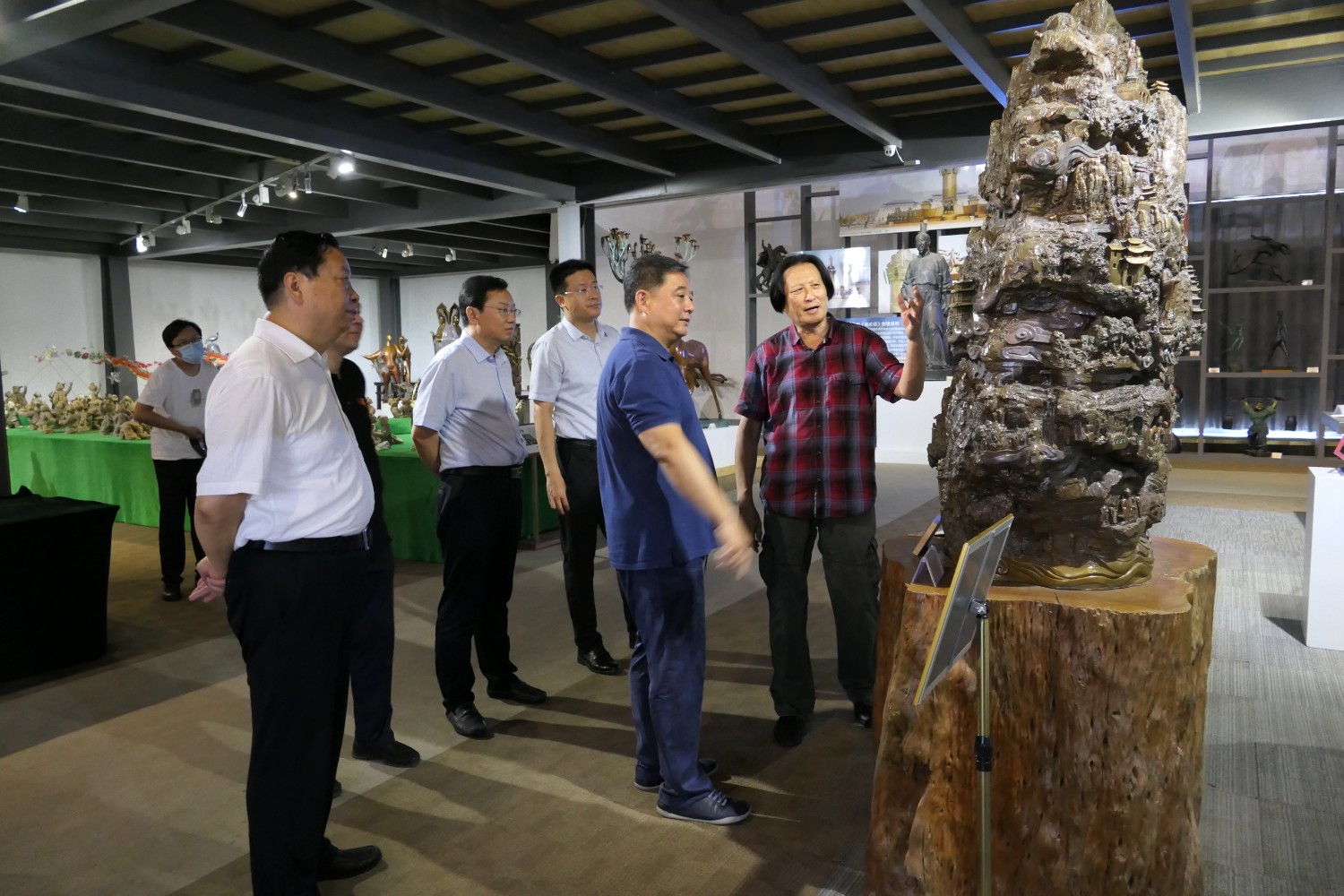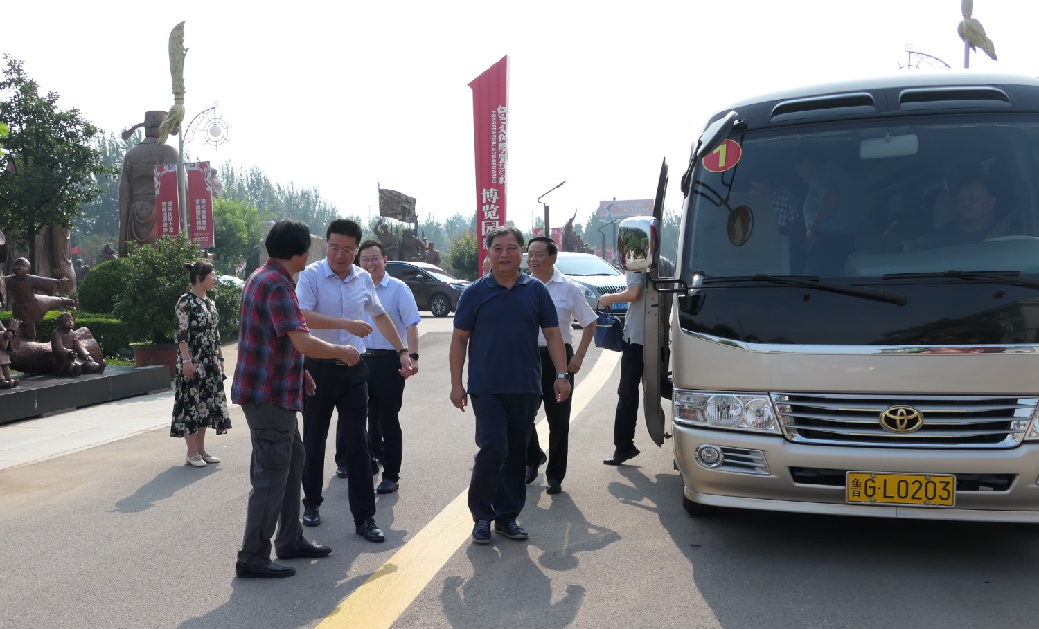 2022年7月18日, 临朐县委副书记、县长陈诚陪同山东省委党校(山东省行政学院)常务校长、沂蒙干部学院院长(兼)徐闻,潍坊市委党校常务副校长丁志伟,潍坊市副市长狄波等领导莅临华艺安博买球参观指导,傅绍相董事长介绍安博买球艺术。