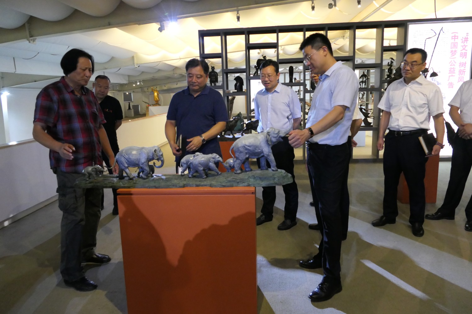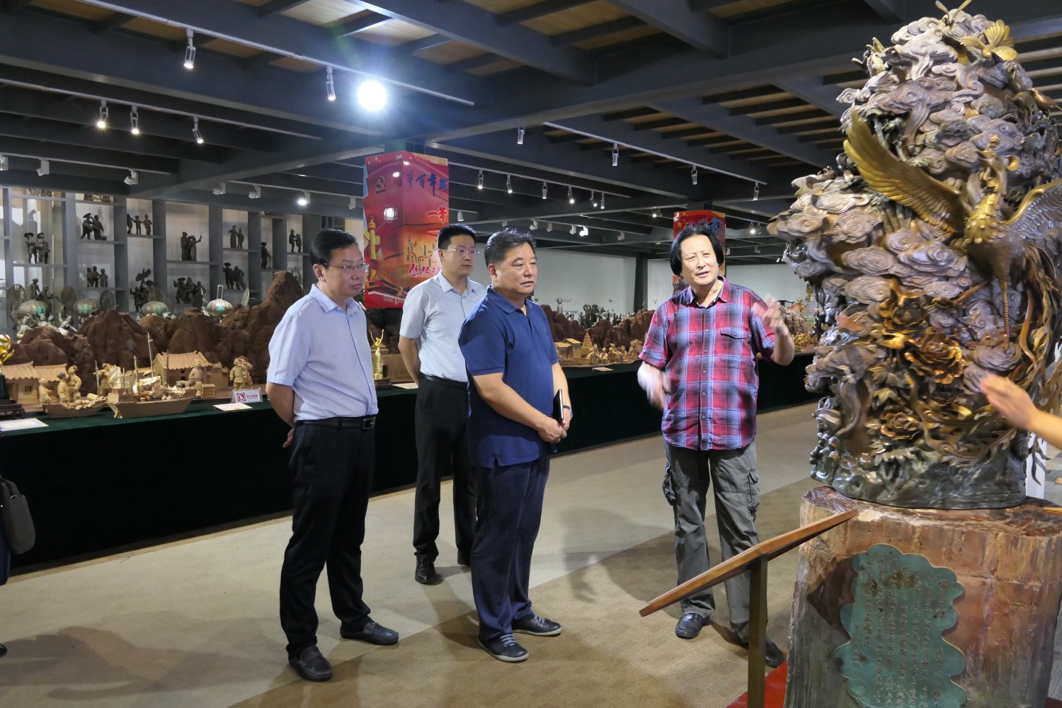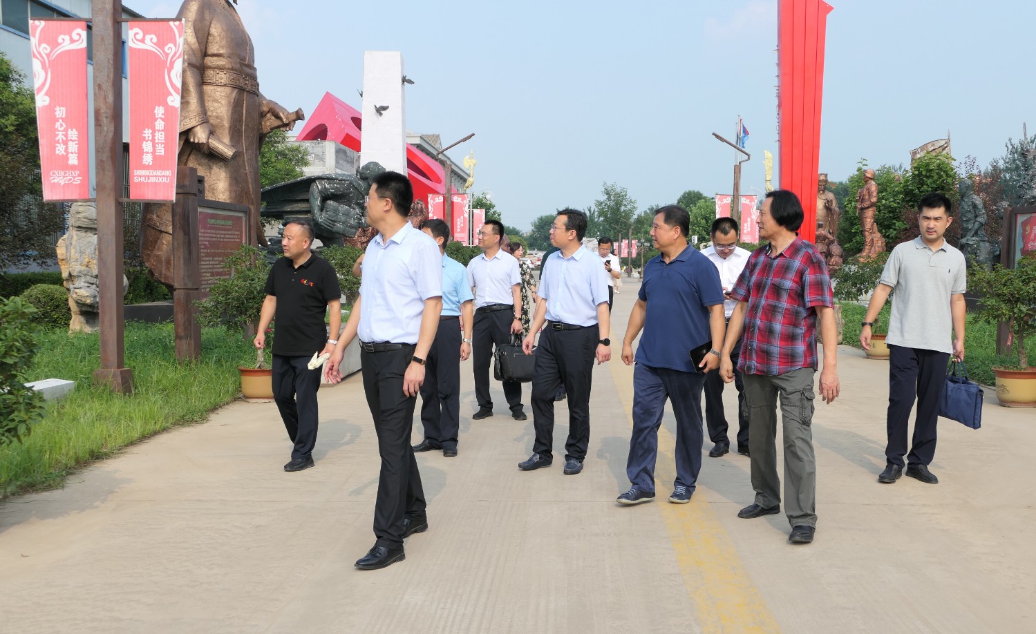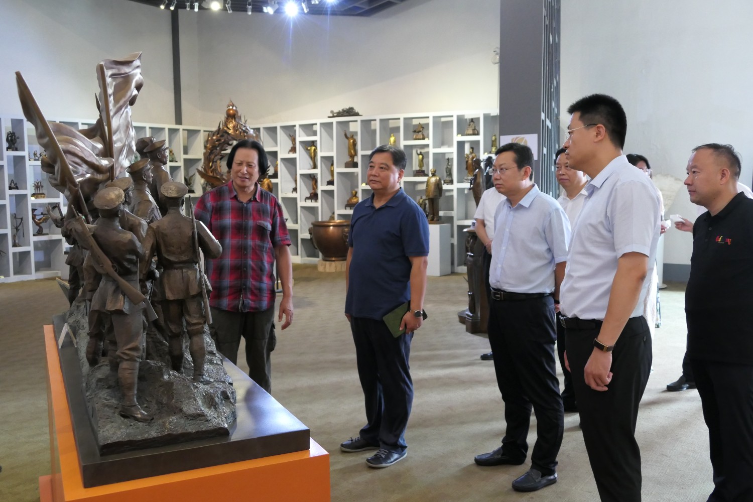 2022年7月18日, 临朐县委副书记、县长陈诚陪同山东省委党校(山东省行政学院)常务校长、沂蒙干部学院院长(兼)徐闻,潍坊市委党校常务副校长丁志伟,潍坊市副市长狄波等领导莅临华艺安博买球参观指导,傅绍相董事长介绍安博买球艺术。