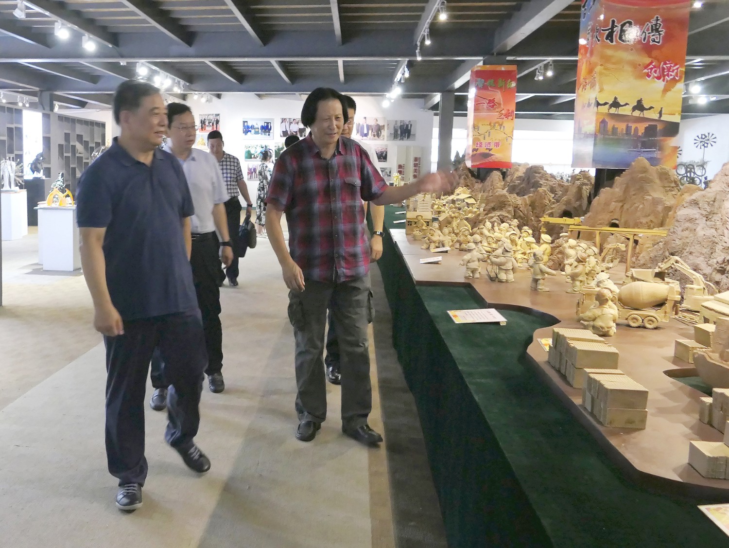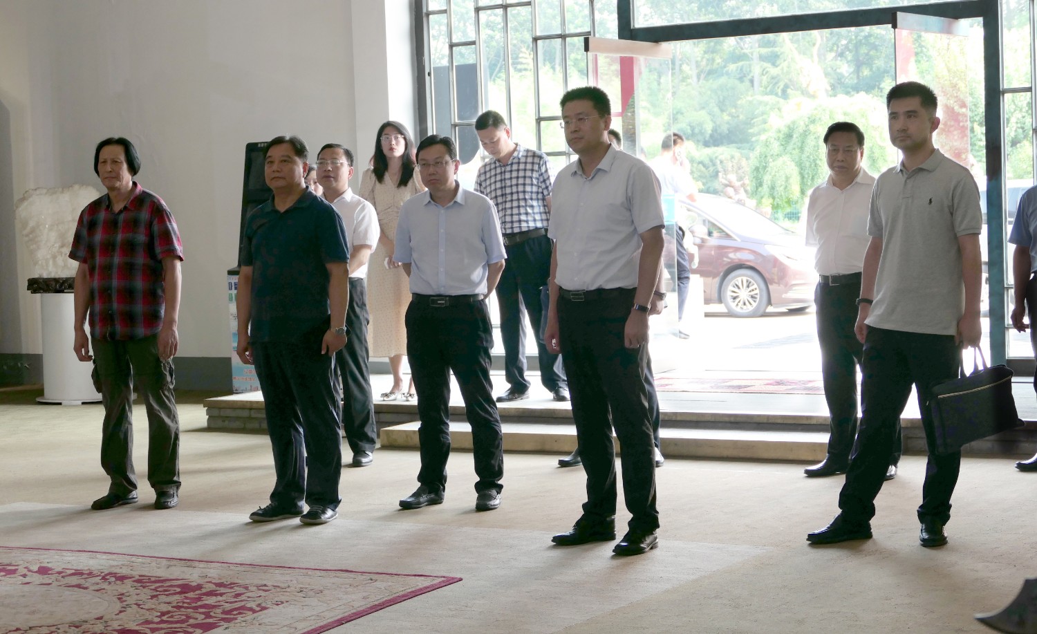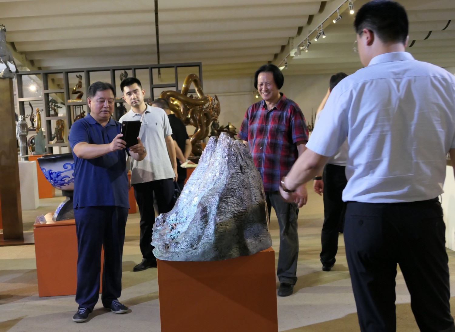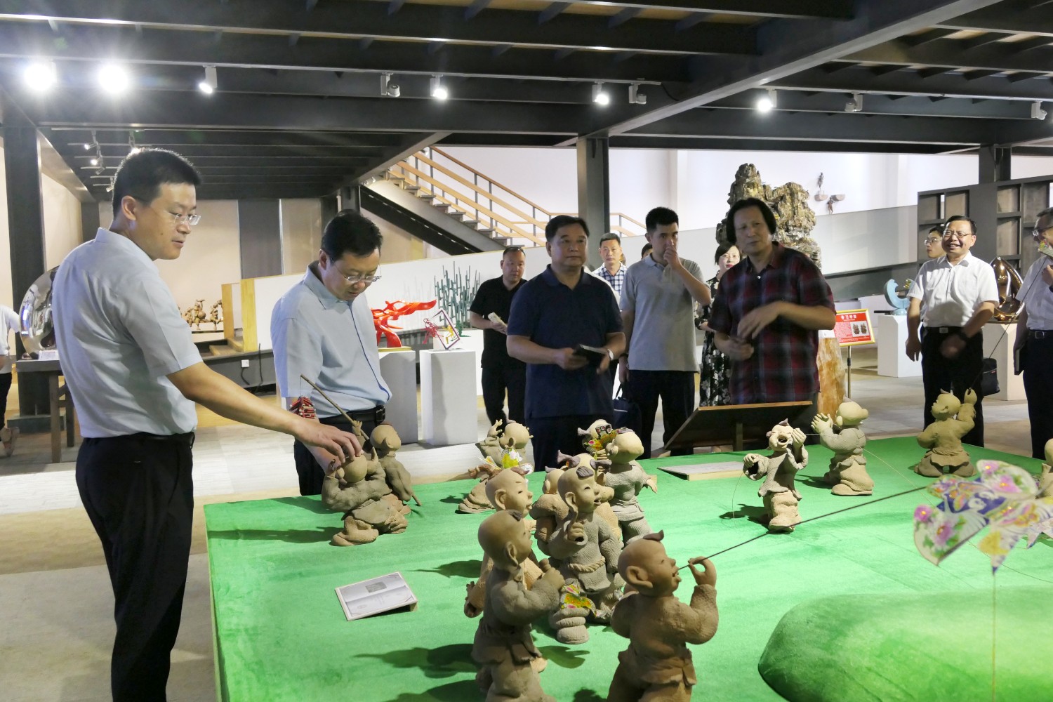 2022年7月18日, 临朐县委副书记、县长陈诚陪同山东省委党校(山东省行政学院)常务校长、沂蒙干部学院院长(兼)徐闻,潍坊市委党校常务副校长丁志伟,潍坊市副市长狄波等领导莅临华艺安博买球参观指导,傅绍相董事长介绍安博买球艺术。