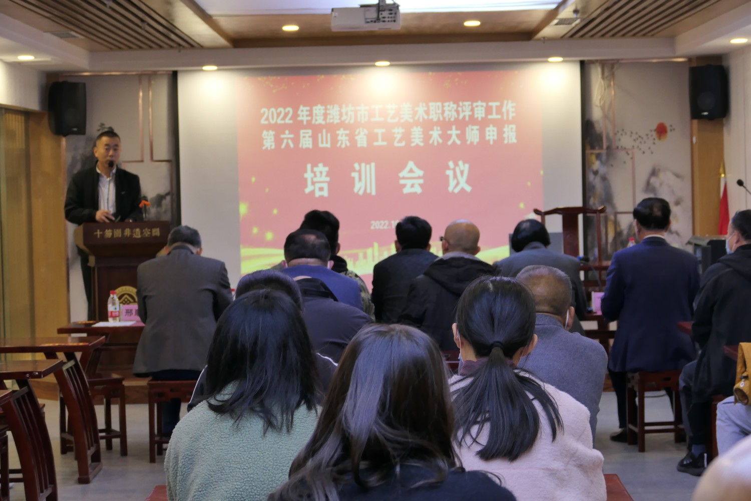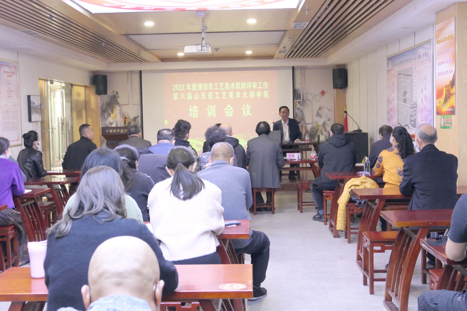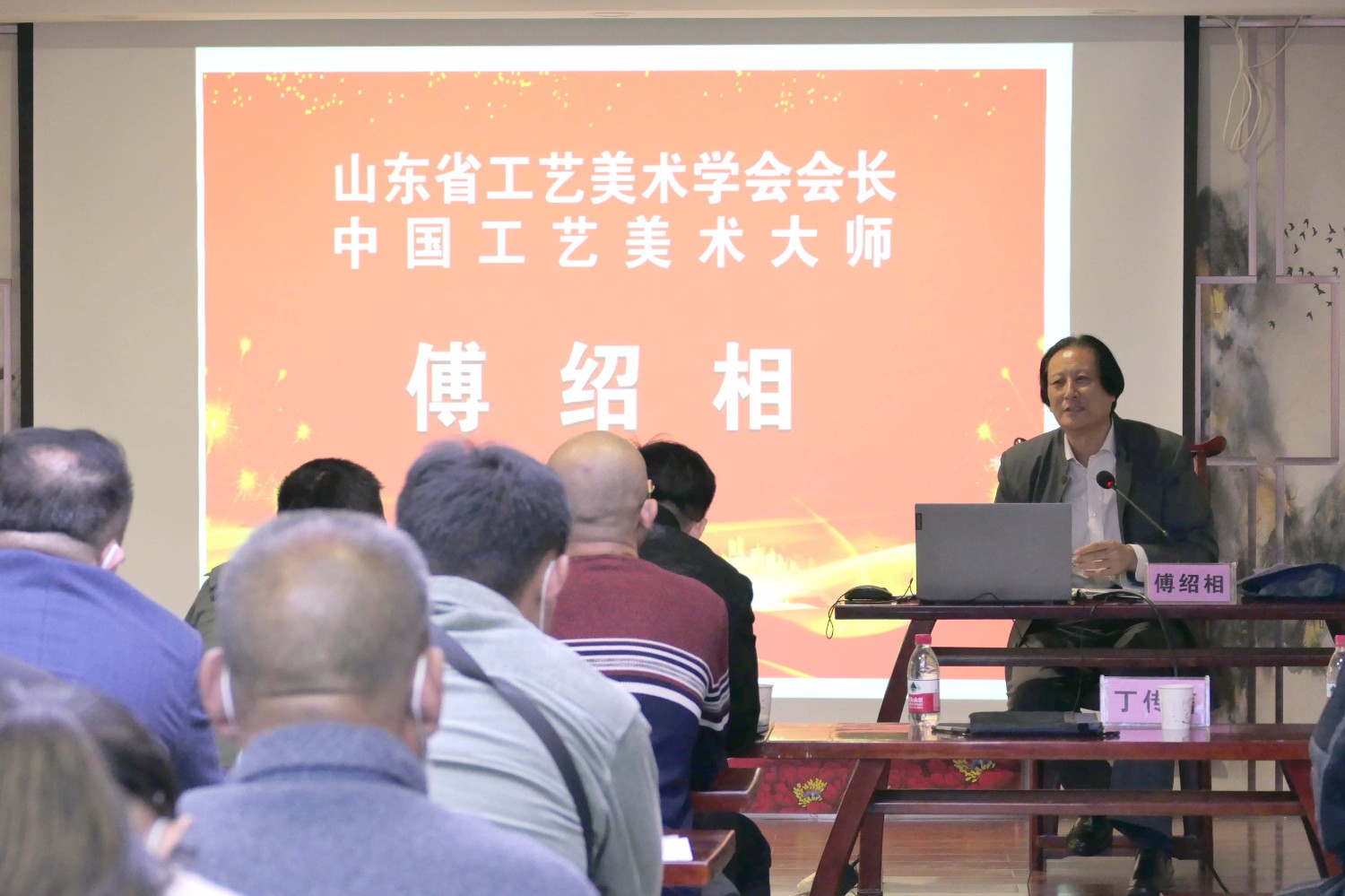 2022年10月10日,2022年度潍坊市工艺美术职称评审工作及第六届山东省工艺美术大师申报培训会议,在十笏园潍坊市工艺美术博览会议中心举行,来自潍坊市工艺美术大师50余人参加此次培训。中国工艺美术大师、山东省工艺美术学会会长傅绍相作了如何填报第六届山东省工艺美术大师申报表的培训讲座。