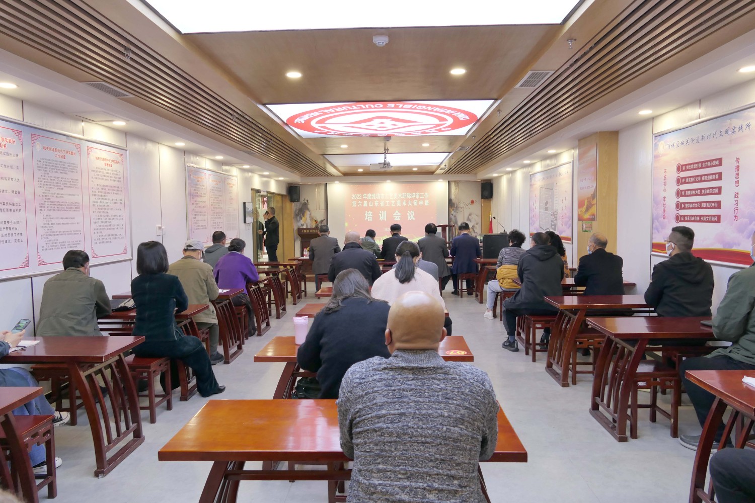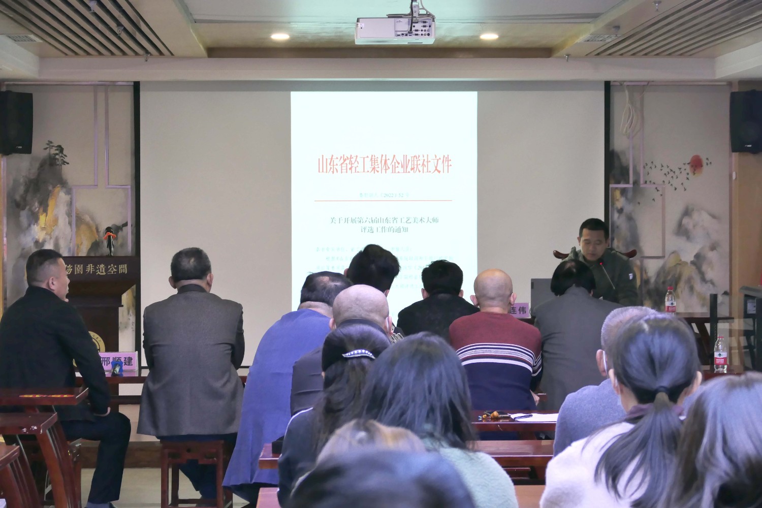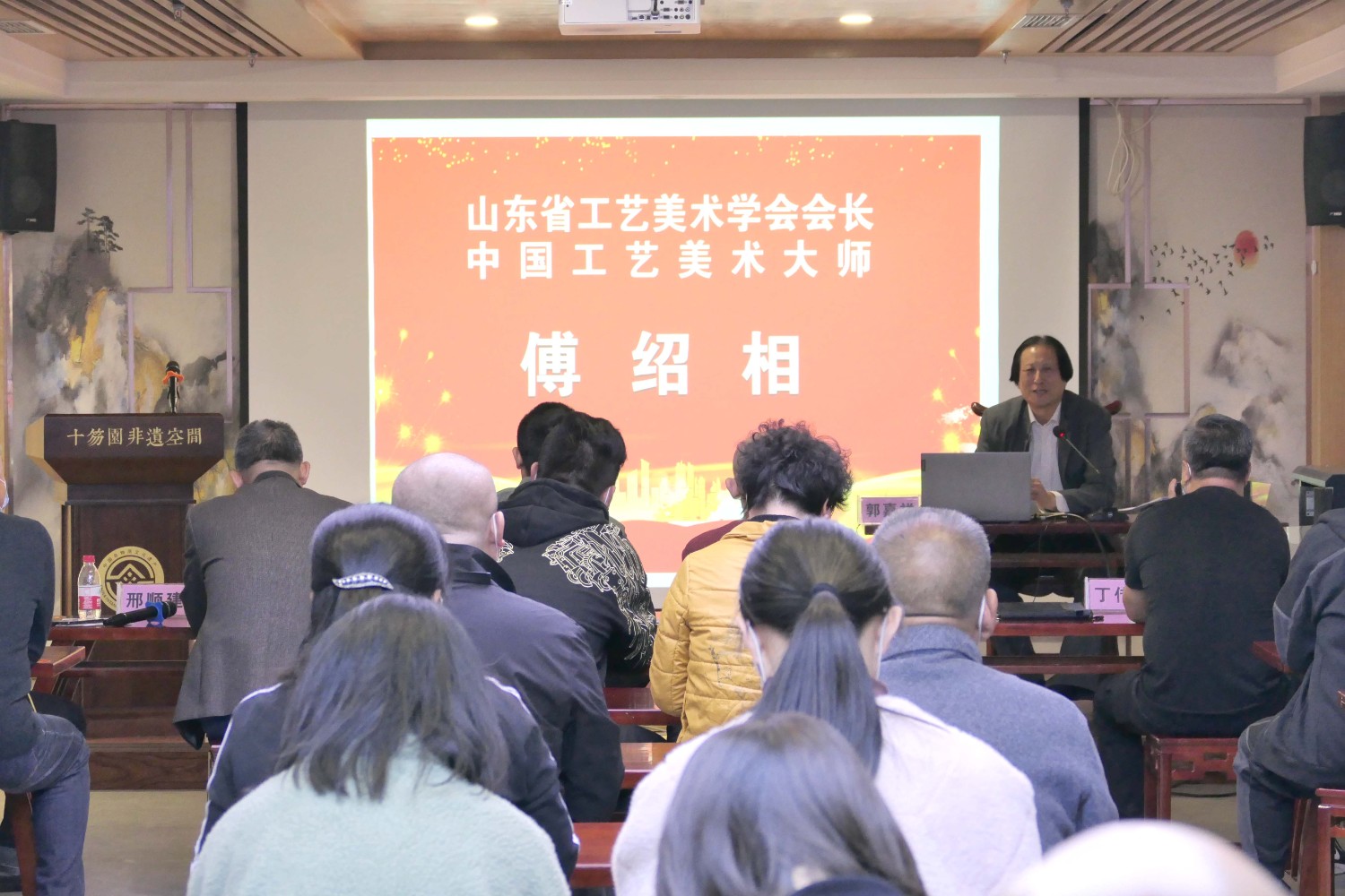 2022年10月10日,2022年度潍坊市工艺美术职称评审工作及第六届山东省工艺美术大师申报培训会议,在十笏园潍坊市工艺美术博览会议中心举行,来自潍坊市工艺美术大师50余人参加此次培训。中国工艺美术大师、山东省工艺美术学会会长傅绍相作了如何填报第六届山东省工艺美术大师申报表的培训讲座。
