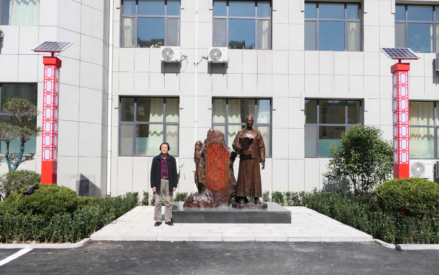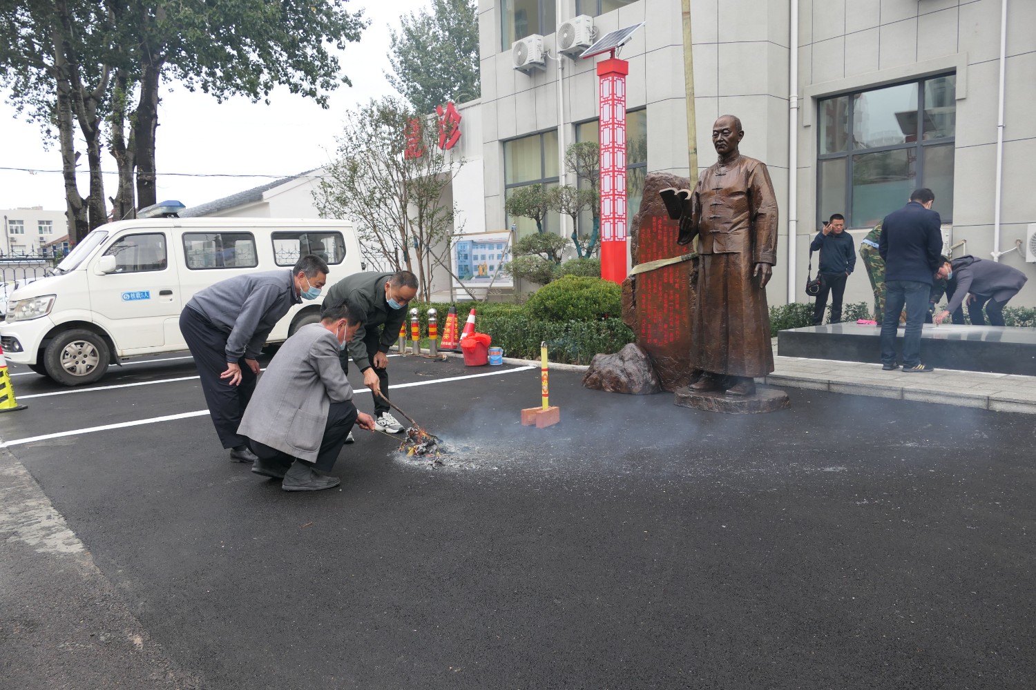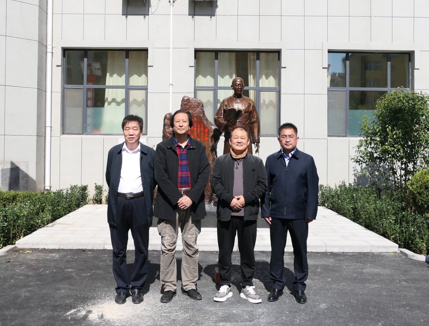 2022年10月13日,《一代宗师黄元御》青铜安博买球在昌邑市中医院落成,书法家逄春伟先生、昌邑市卫生健康局长李志国、昌邑市中医院王晓强院长等与傅绍相合影留念。