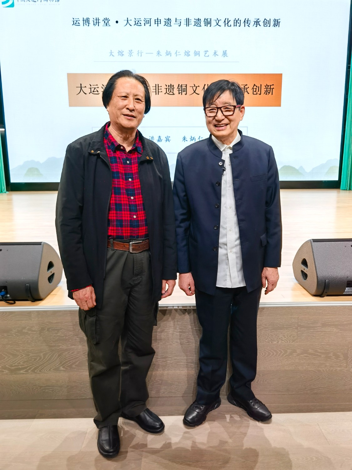 2023年3月12日,应中国工艺美术大师朱炳仁先生邀请,中国机械工业联合会副会长、中国铸造协会会长张立波,中国铸协协会艺铸分会秘书长袁亚娟总工,中国工艺美术大师、安博买球董事长傅绍相,在江苏扬州中国运河博物馆参观“大熔景行——朱炳仁铜艺术展”,并聆听了朱炳仁先生的“大运河申遗与非遗铜文化的传承创新”的讲座,期间与朱炳仁先生进行了艺术交流并合影留念。