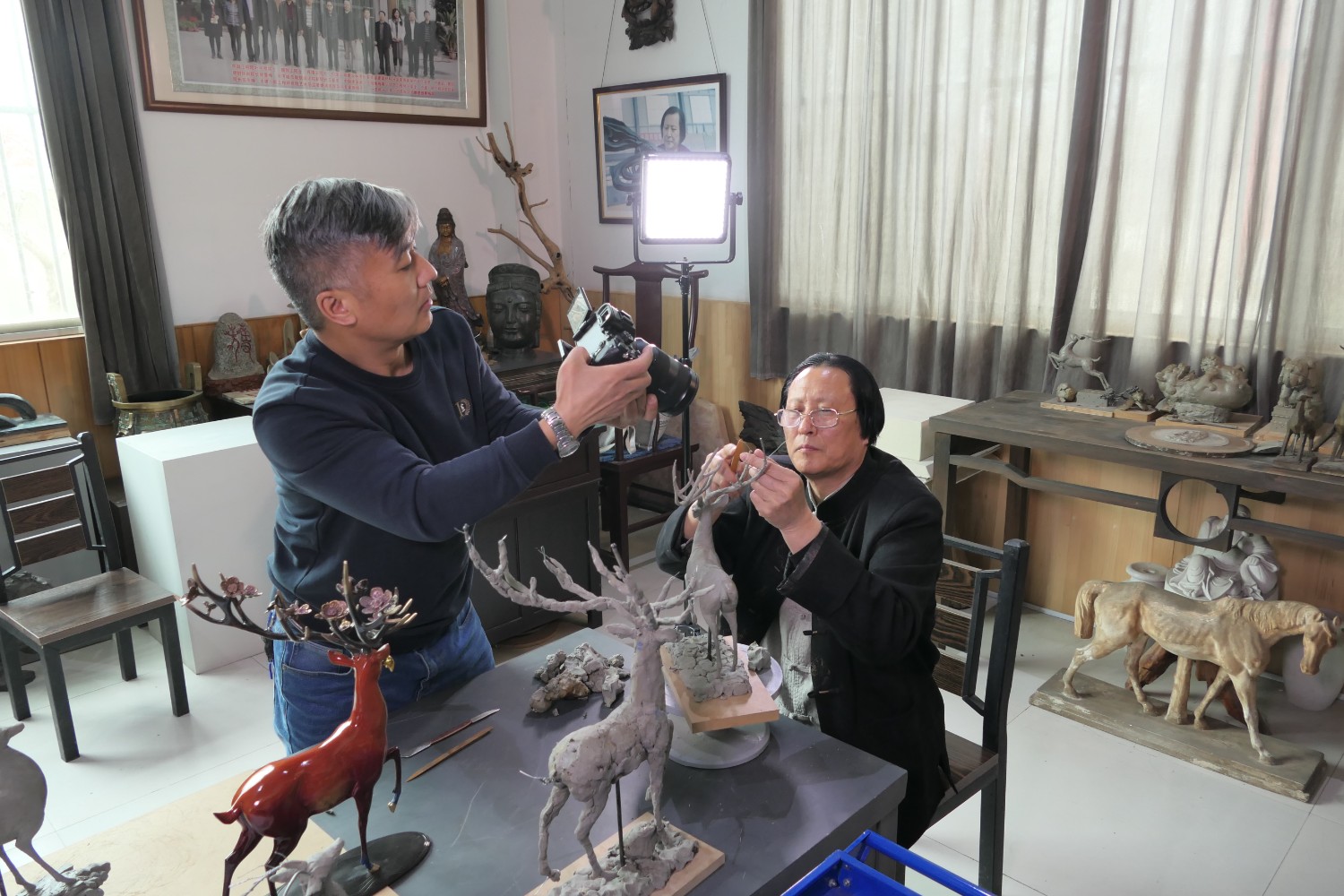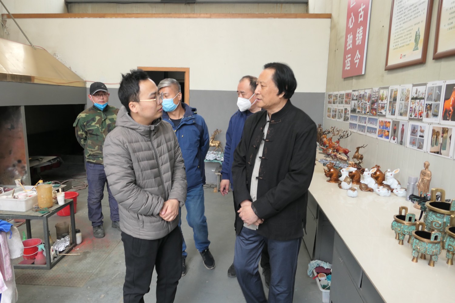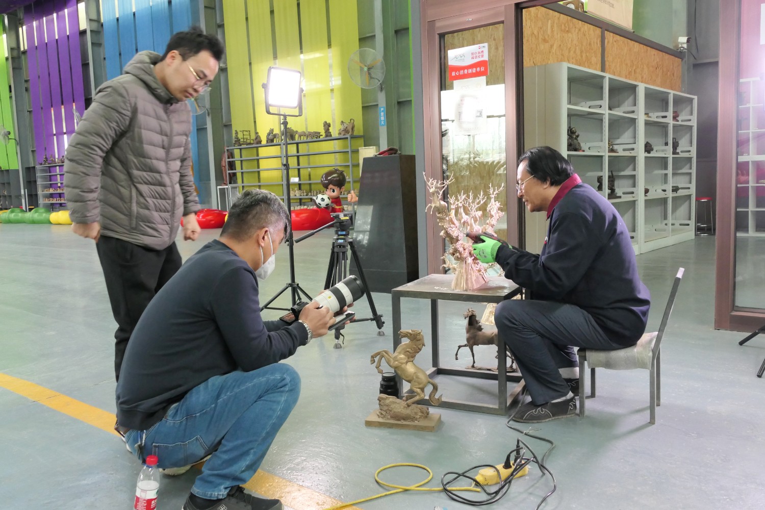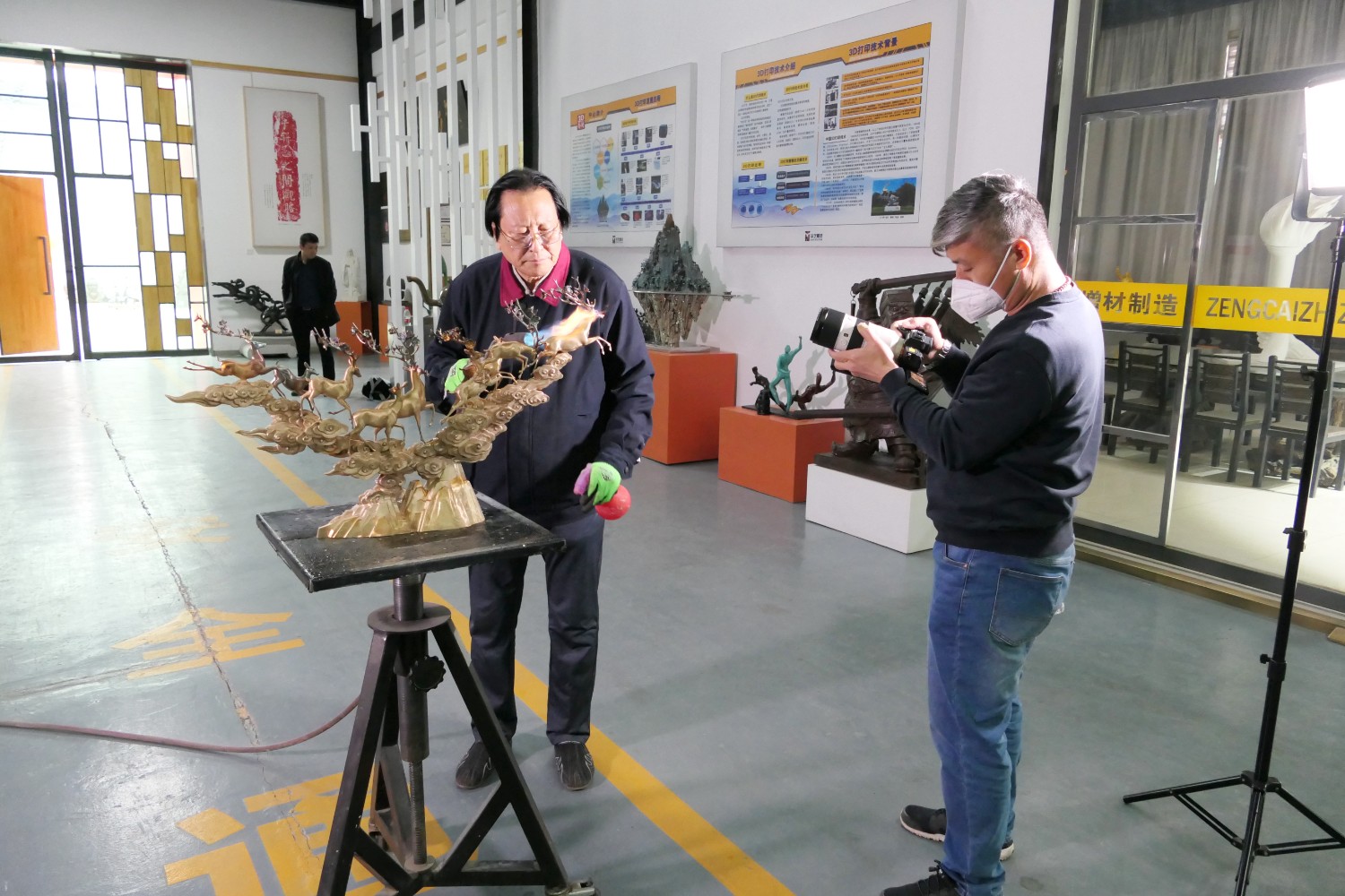 2023年3月16日,山东省电视台记者穆广辉、刘建等莅临华艺拍摄央视新闻的微博视频“齐鲁巨匠”手造,巧手雕金石,匠心话传承。 展现中国工艺美术大师傅绍相青铜铸造艺术。