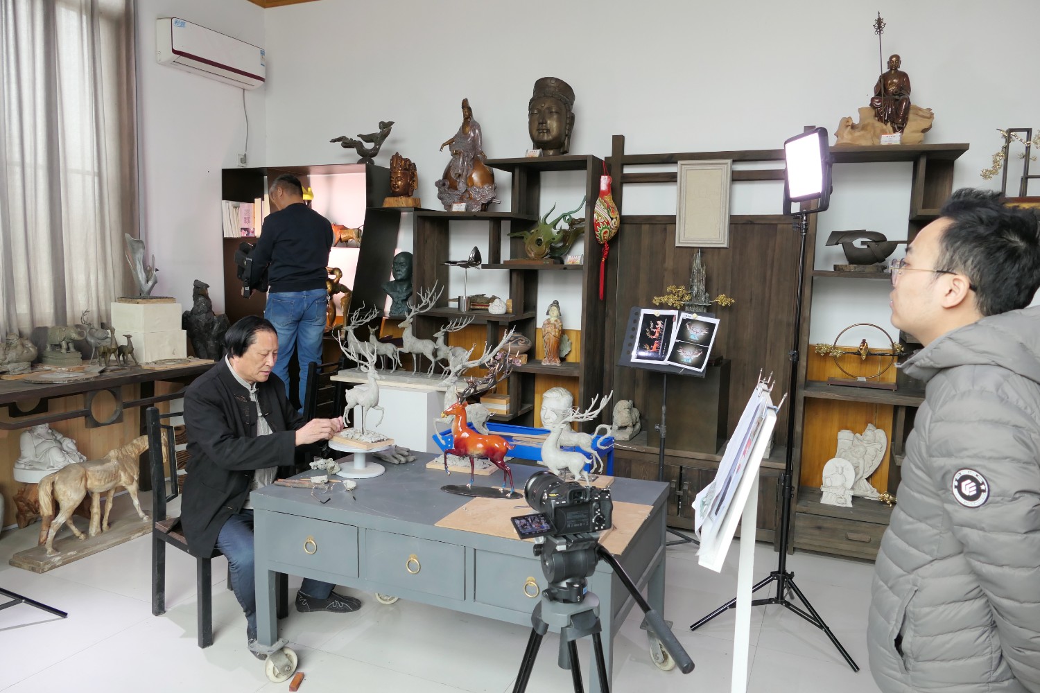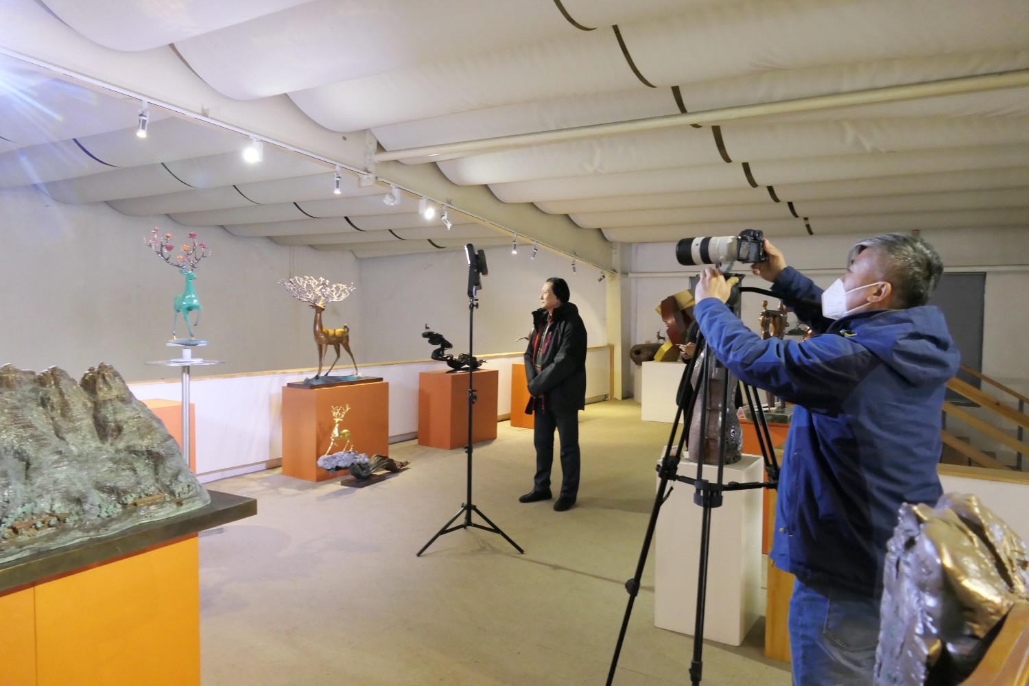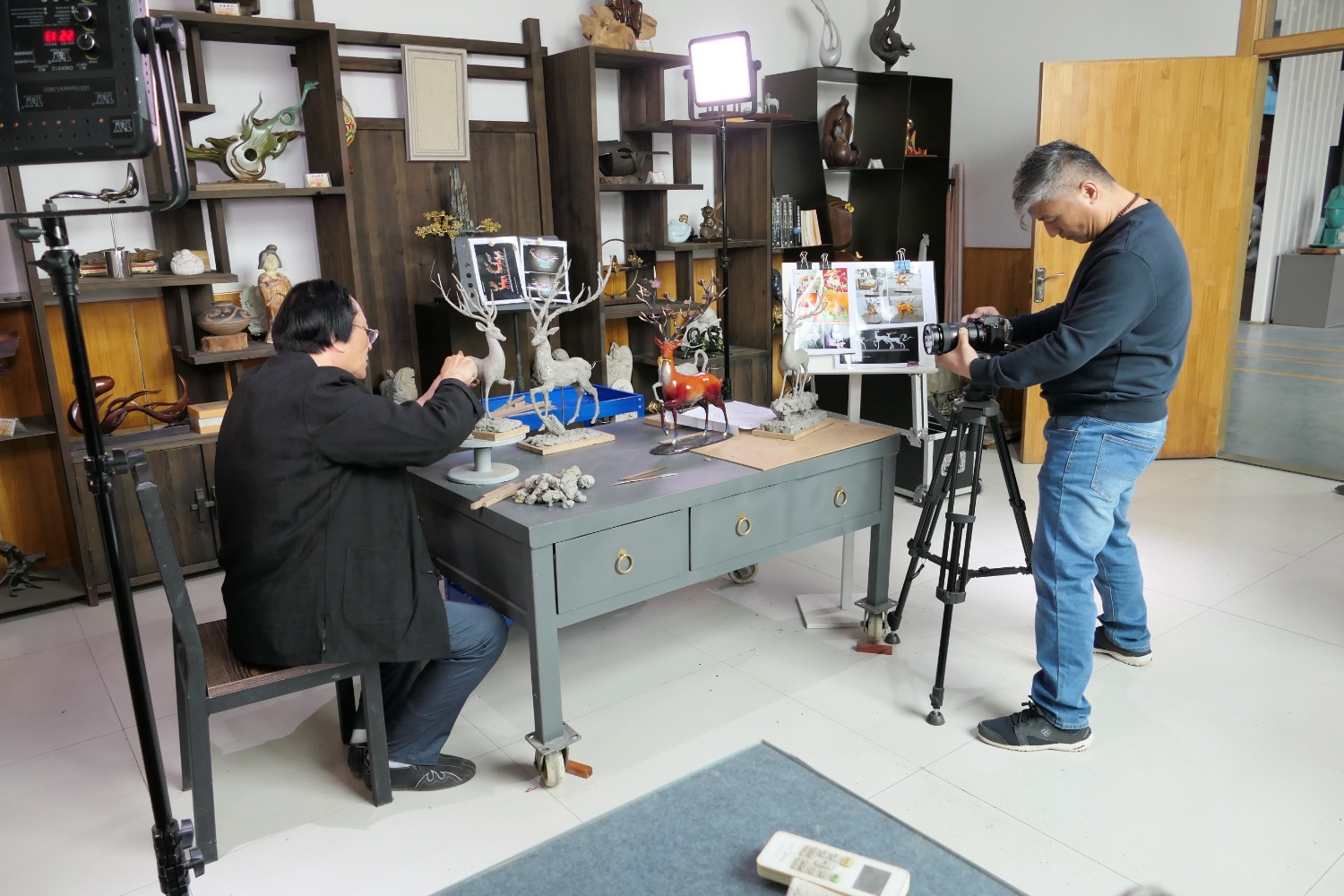2023年3月16日,山东省电视台记者穆广辉、刘建等莅临华艺拍摄央视新闻的微博视频“齐鲁巨匠”手造,巧手雕金石,匠心话传承。 展现中国工艺美术大师傅绍相青铜铸造艺术。