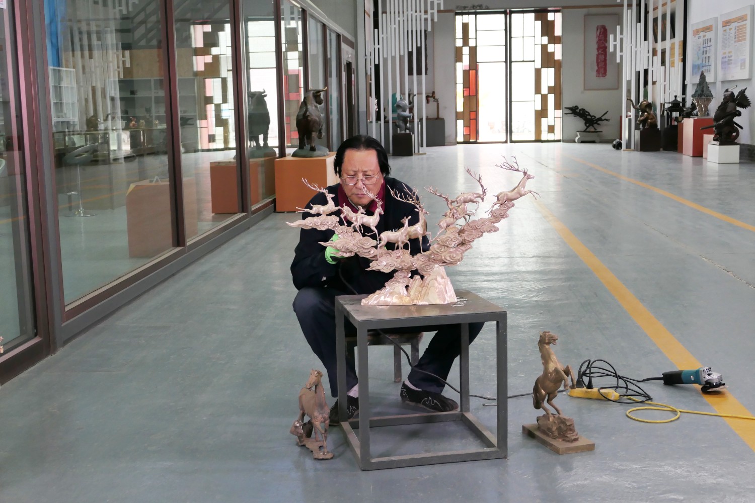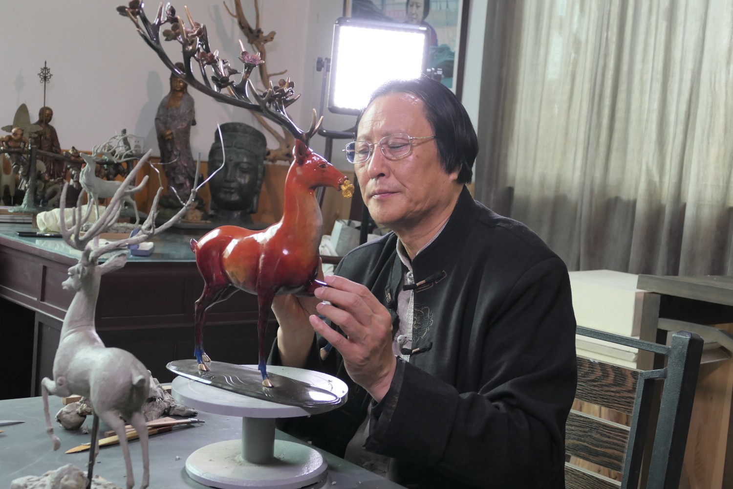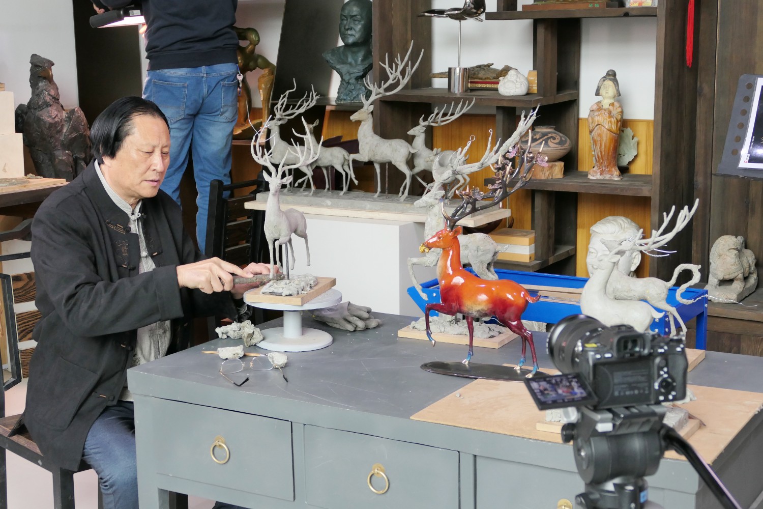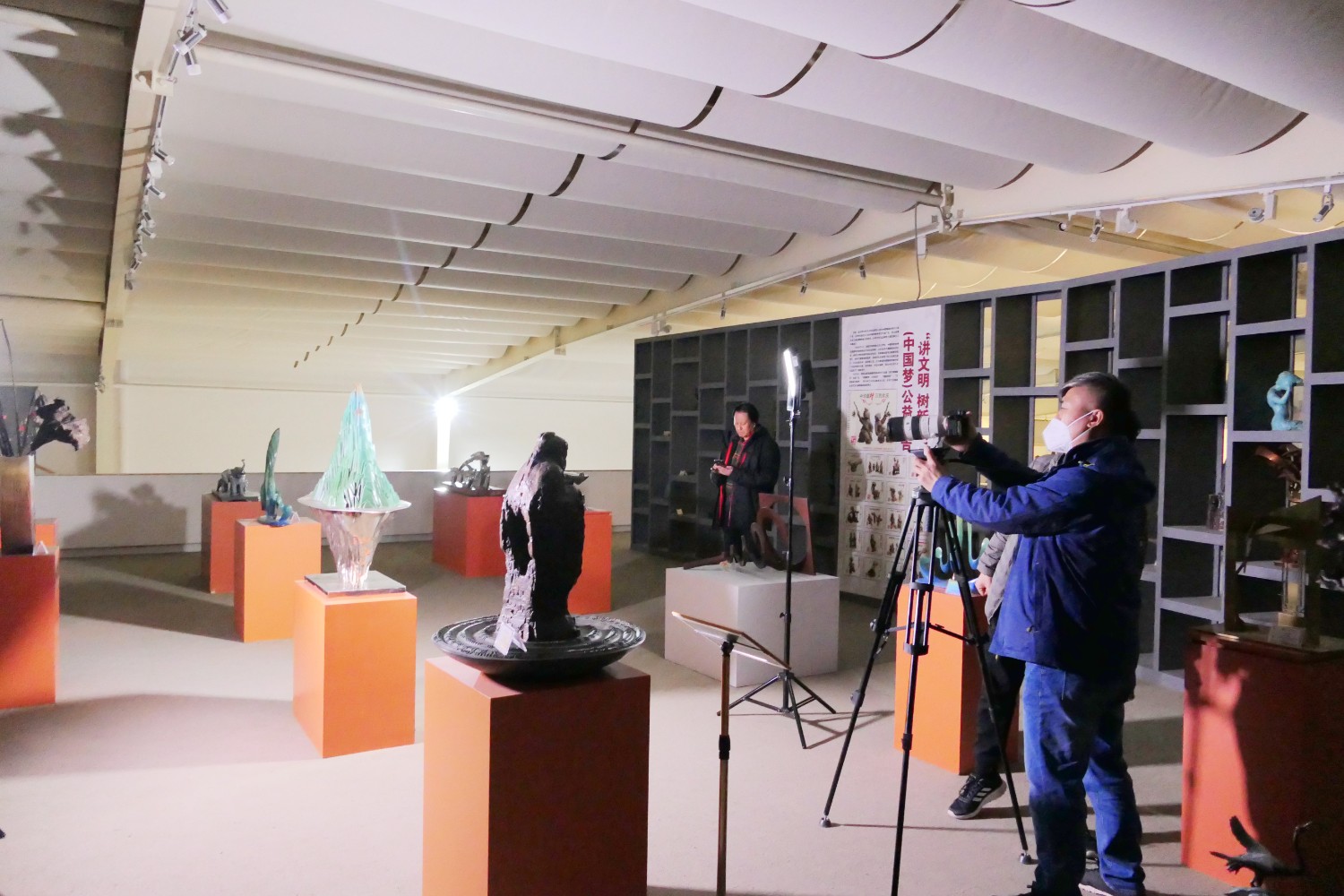 2023年3月16日,山东省电视台记者穆广辉、刘建等莅临华艺拍摄央视新闻的微博视频“齐鲁巨匠”手造,巧手雕金石,匠心话传承。 展现中国工艺美术大师傅绍相青铜铸造艺术。