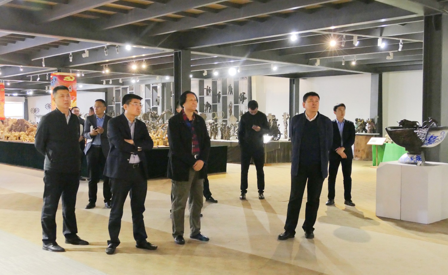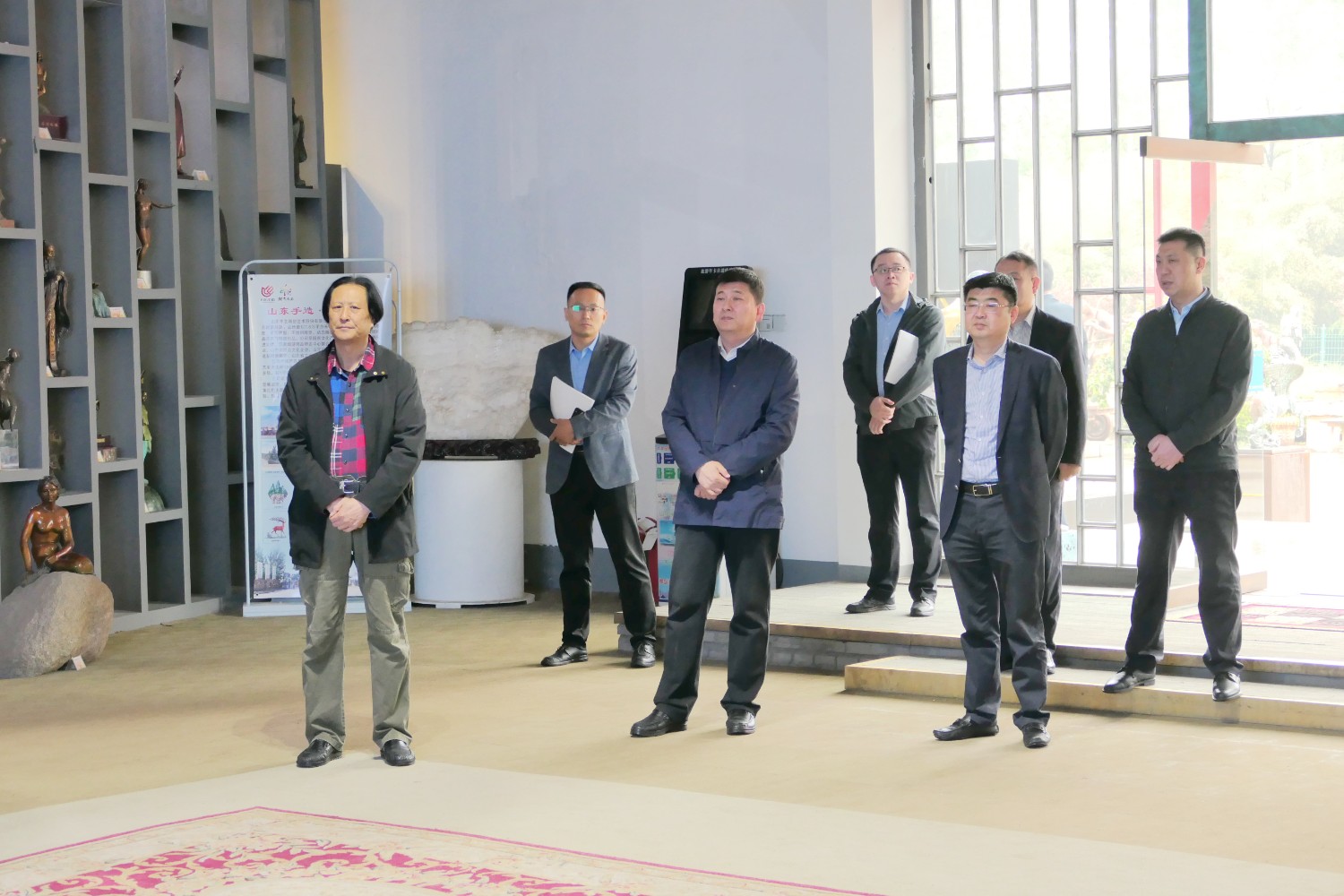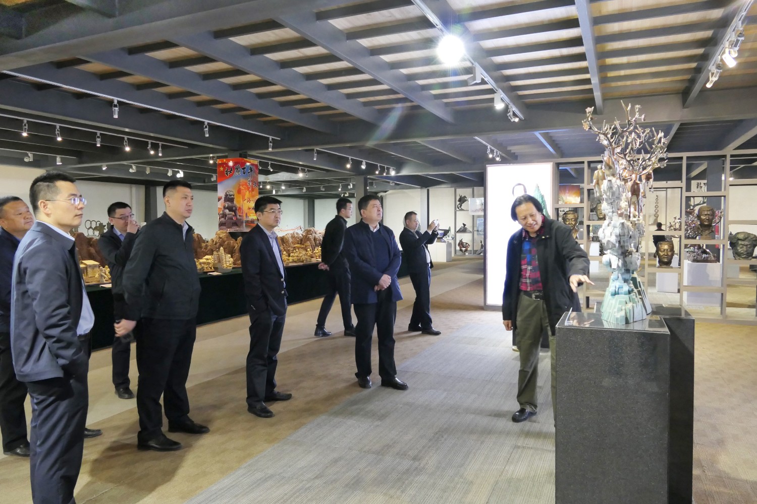 2023年4月23日,潍坊创新投资集团有限公司李晓华总裁一行,在临朐县税务局王钰局长的陪同下,莅临华艺参观指导,并洽谈合作事宜。傅绍相介绍安博买球艺术。
