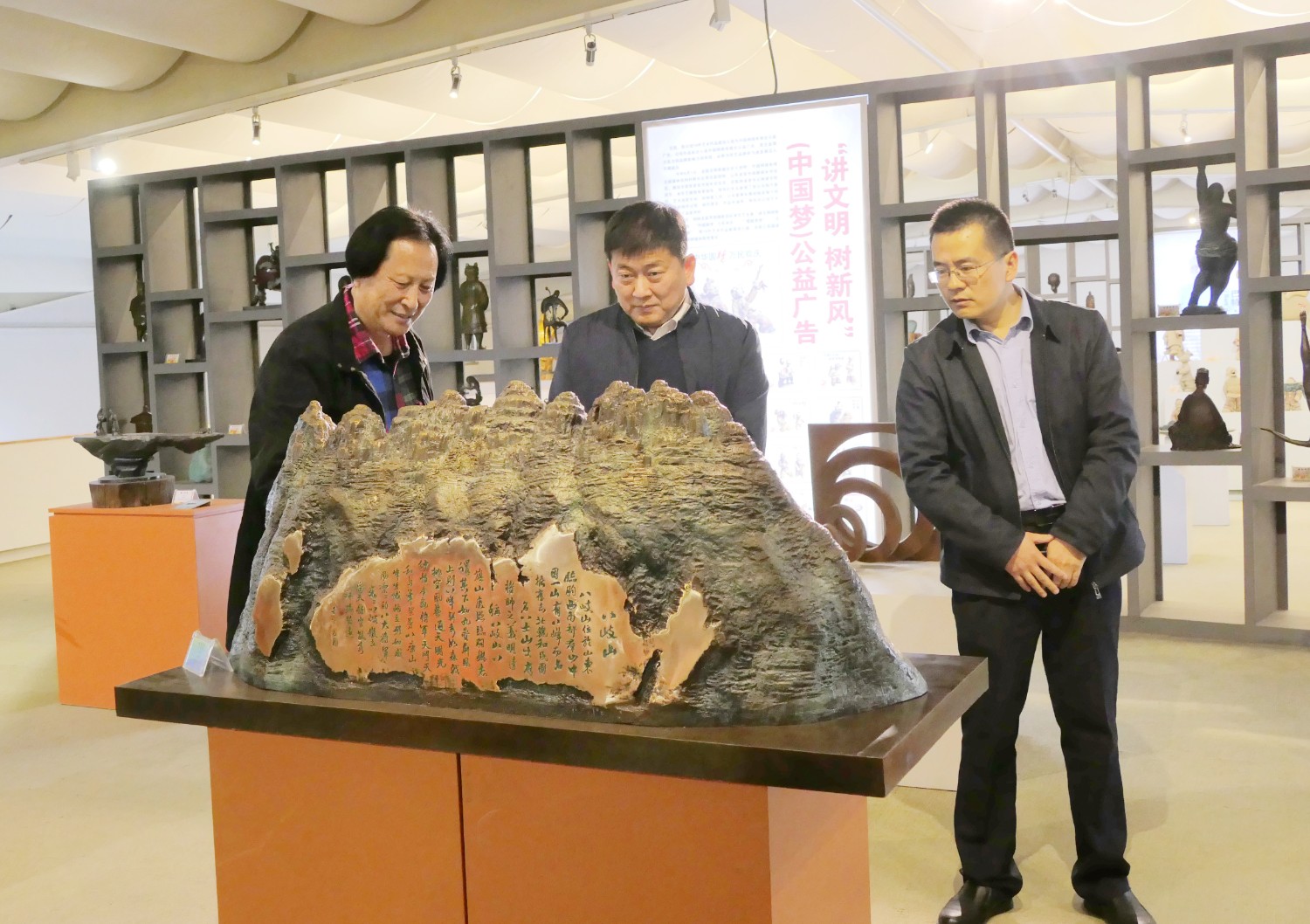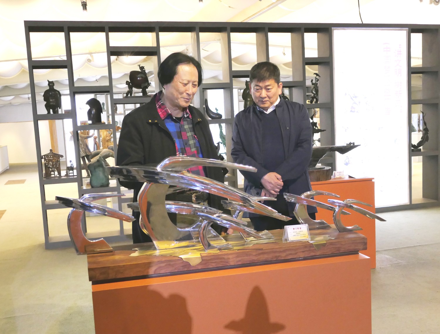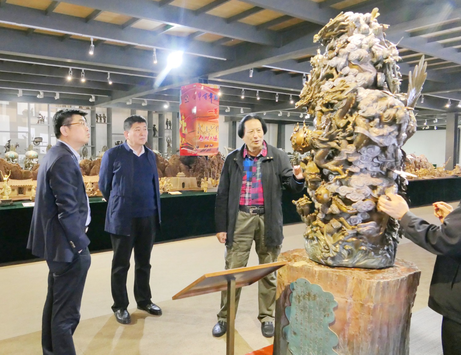 2023年4月23日,潍坊创新投资集团有限公司李晓华总裁一行,在临朐县税务局王钰局长的陪同下,莅临华艺参观指导,并洽谈合作事宜。傅绍相介绍安博买球艺术。