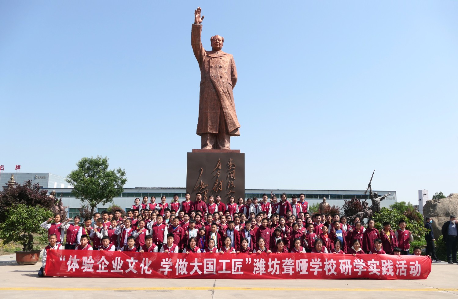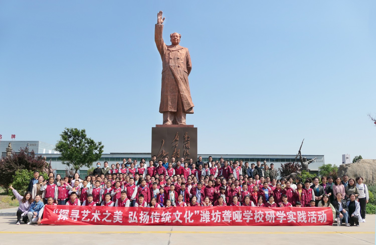 2023年5月7日,潍坊市聋哑学校四百余名师生在王京强校长及陈福民主任的带领下,莅临华艺安博买球举行“探寻艺术之美 弘扬传统文化”潍坊聋哑学校教育教学实践活动,中国工艺美术大师傅绍相与潍坊市聋哑学校部分师生合影留念。