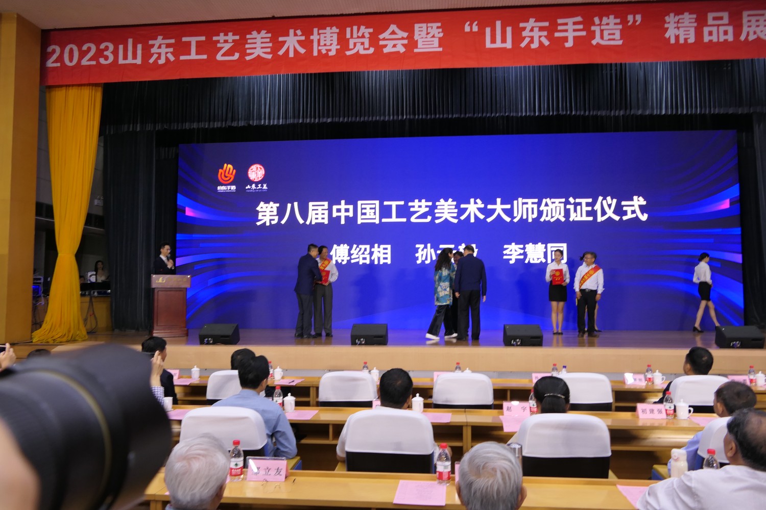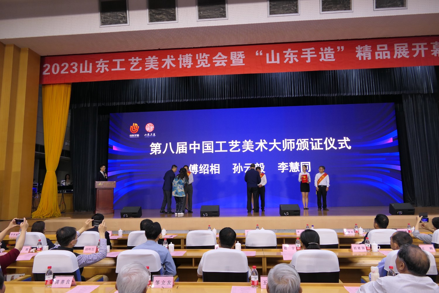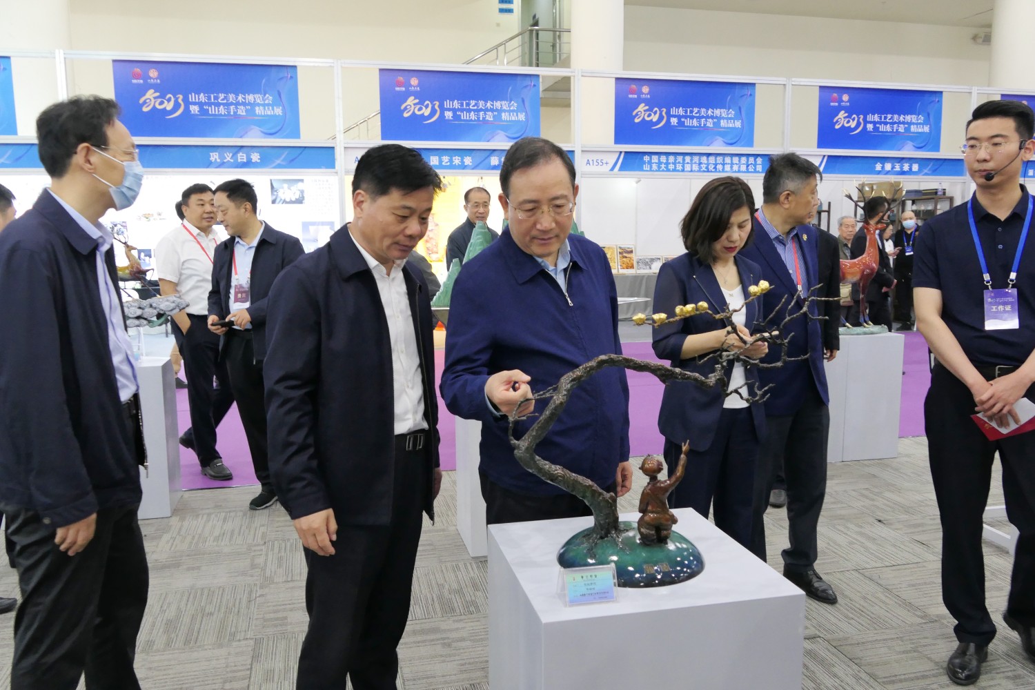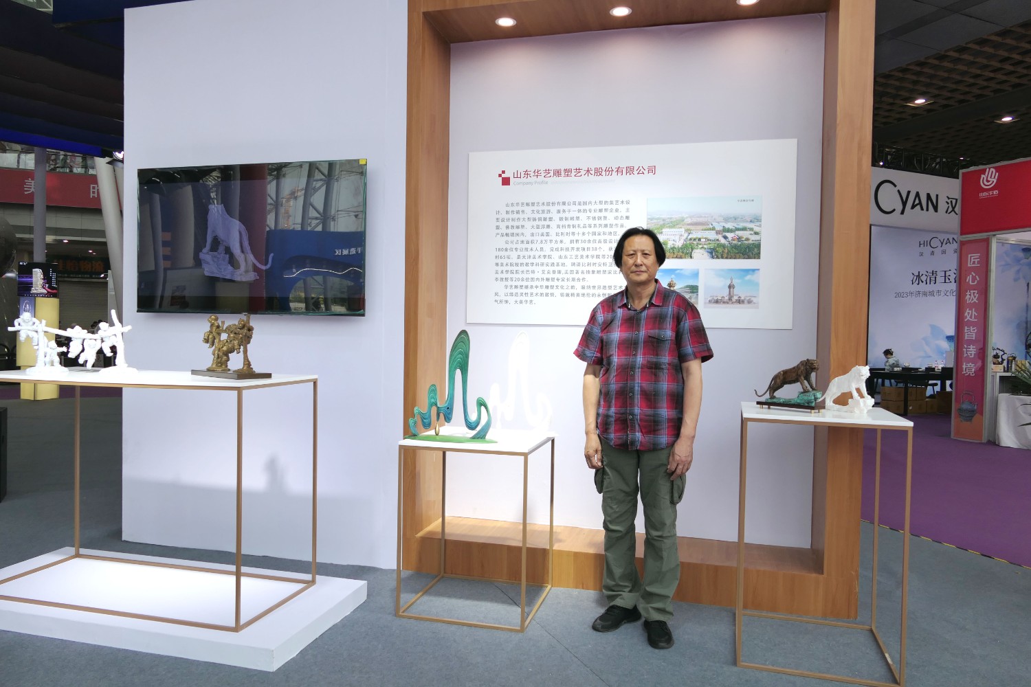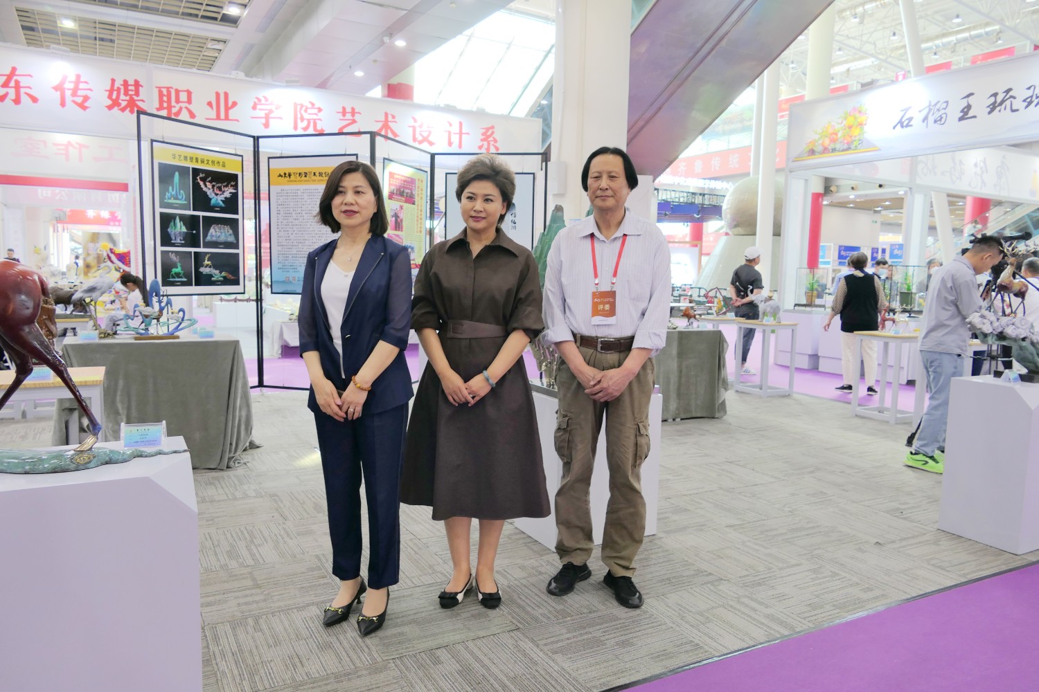 2023-7-192023年5月12日,由山东省工业和信息化厅、中共山东省委宣传部、山东省商务厅主办的“璀璨工美•时尚手造”2023山东工艺美术博览会暨“山东手造”精品展,在舜耕国际会展中心盛大开幕。开幕式以“山东手造”宣传片揭开序幕,“四廊一线”文化体验廊道为主线,展示不同地域文化孕育出的独特手造产品,以历史文脉为依托, 展现文化地标风景的同时突出“山东手造”地域特色。歌舞、乐器、合奏……阵阵掌声,现场还举办了“第八届中国工艺美术大师”傅绍相,孙云毅,李慧同三人的颁证仪式和淄博市文化“两新”新品发布等活动,由程守田、才大颖、孙烨、罗新军、臧耀刚、王哲军、袁敏等领导嘉宾共同触发启动手印,2023山东工艺美术博览会暨“山东手造”精品展正式启动。领导嘉宾巡展,程守田、才大颖、王哲军、袁敏等领导对中国工艺美术大师傅绍相《一路祥瑞》等作品给予高度评价。此次展会华艺安博买球遴选近30件青铜艺术精品参展,展会期间傅绍相接受山东省“新黄河”频道记者任晓雯的采访、山东省电视台尚士春主任的采访,并与山东省电视台主持人毛馨,山东省工艺美术协会会长袁敏等交流安博买球艺术并合影留念。华艺安博买球傅东总经理参展作品《飞天》、傅思涵《福禄祥瑞》、谭炳《鹿伏鹤行》、谭建伟《至圣先师-孔子》、郭宁《呵护》荣获“荷花杯”山东省工艺美术设计创新大赛金奖;同时傅东总经理参展作品《飞天》荣获“2023山东省工艺美术设计创新奖”。