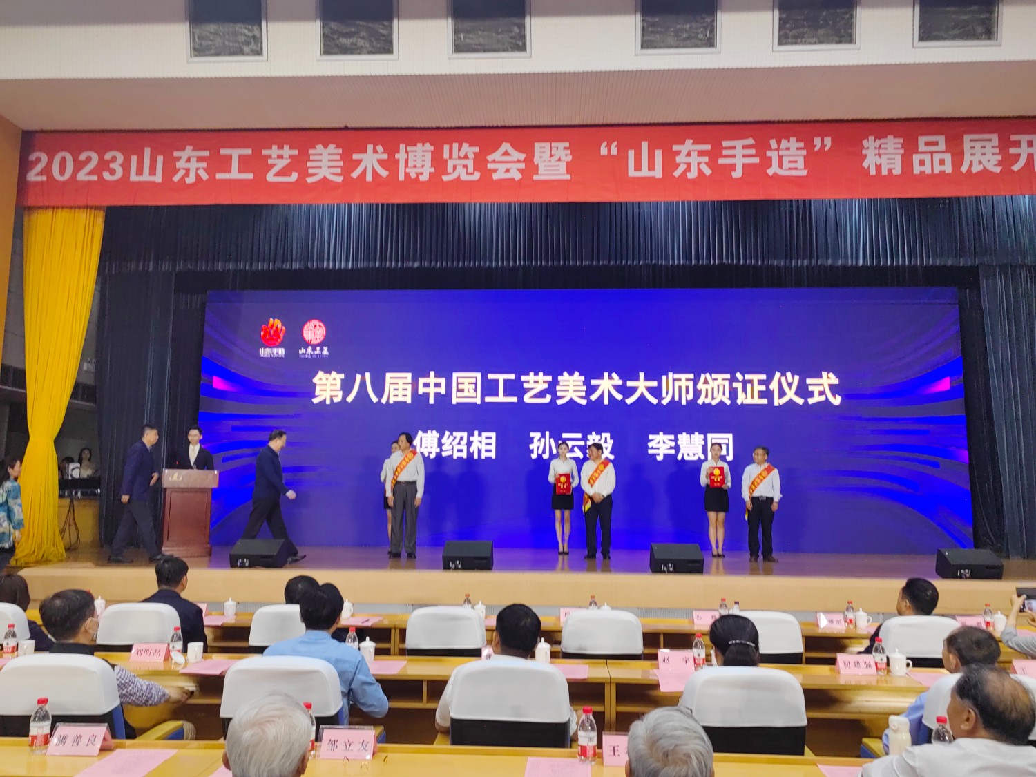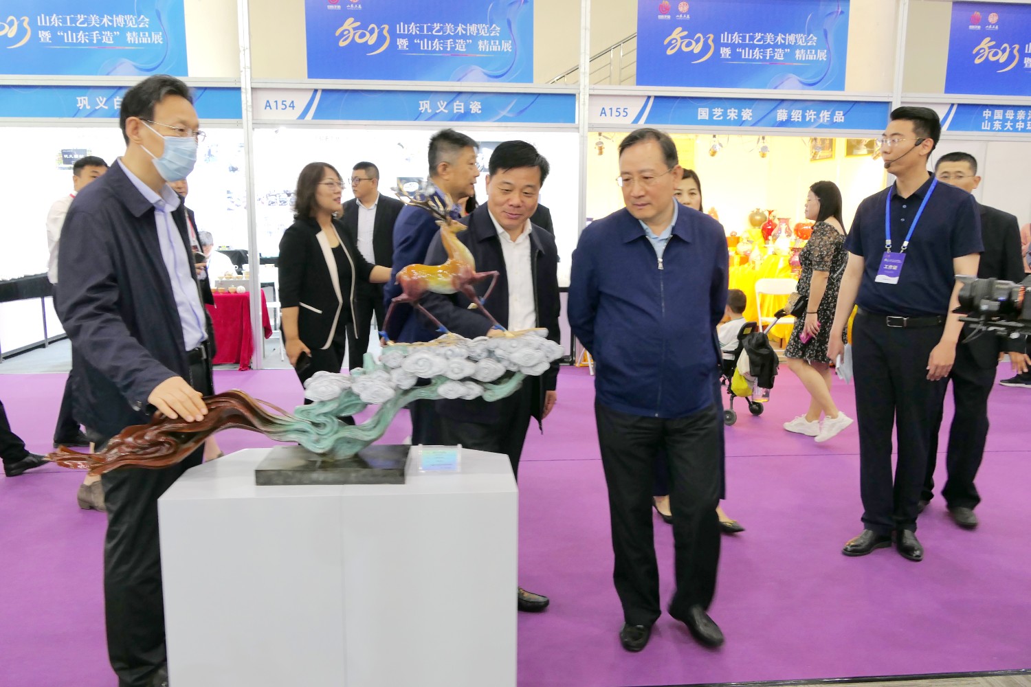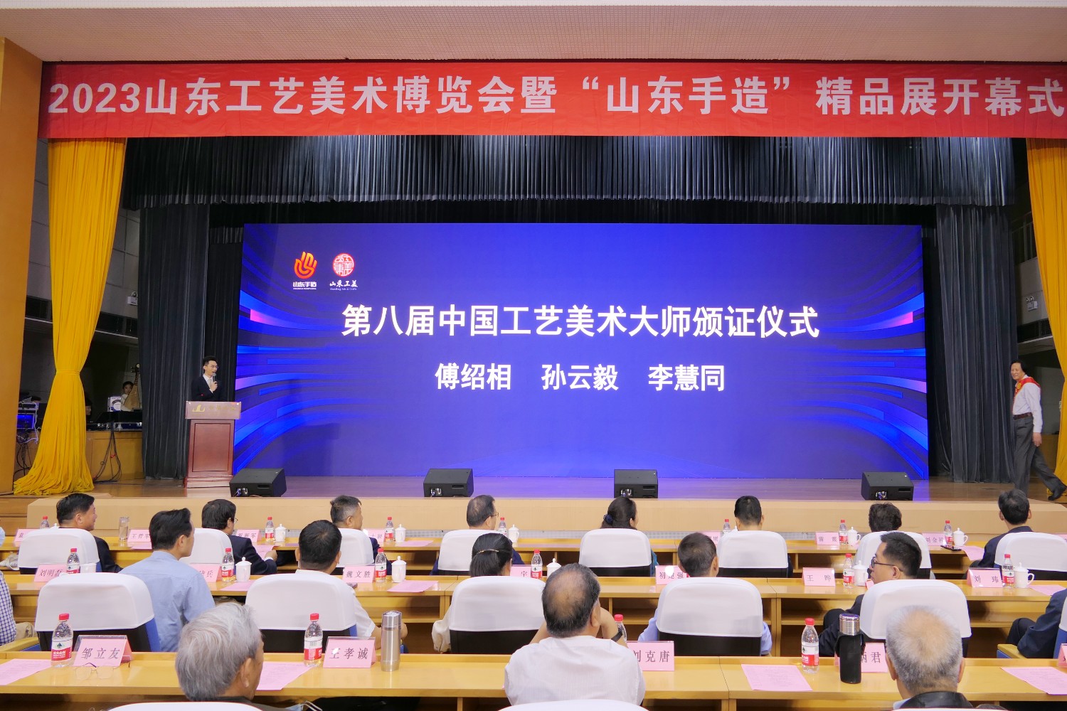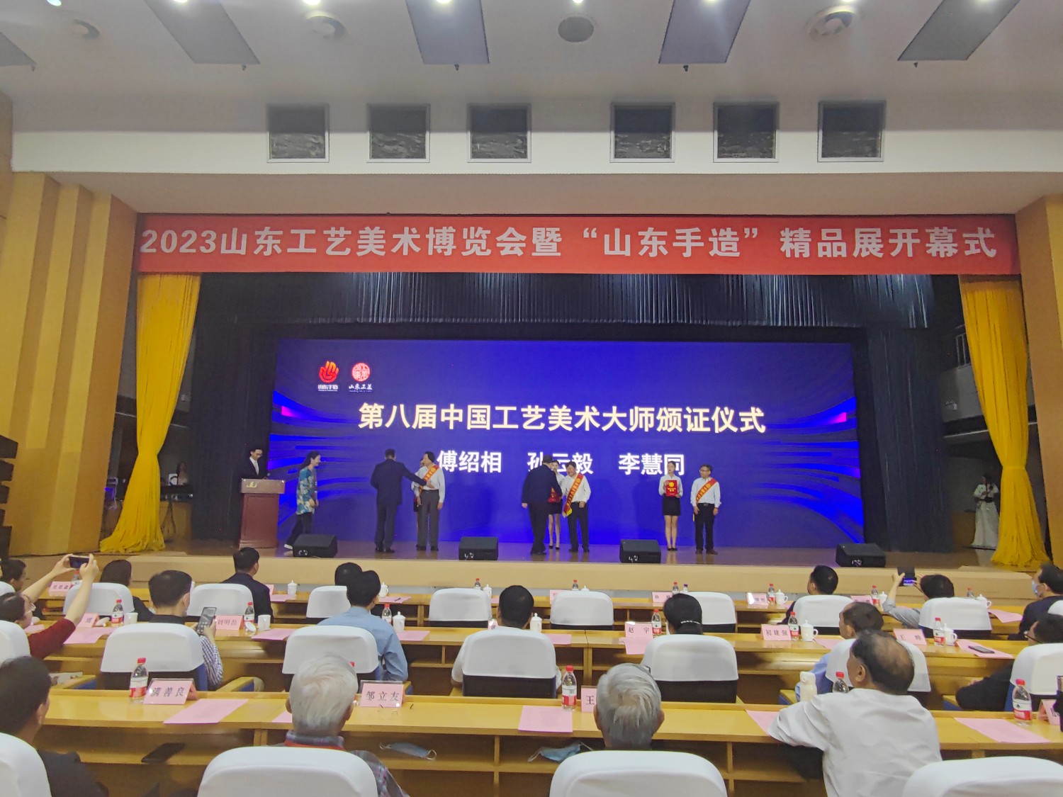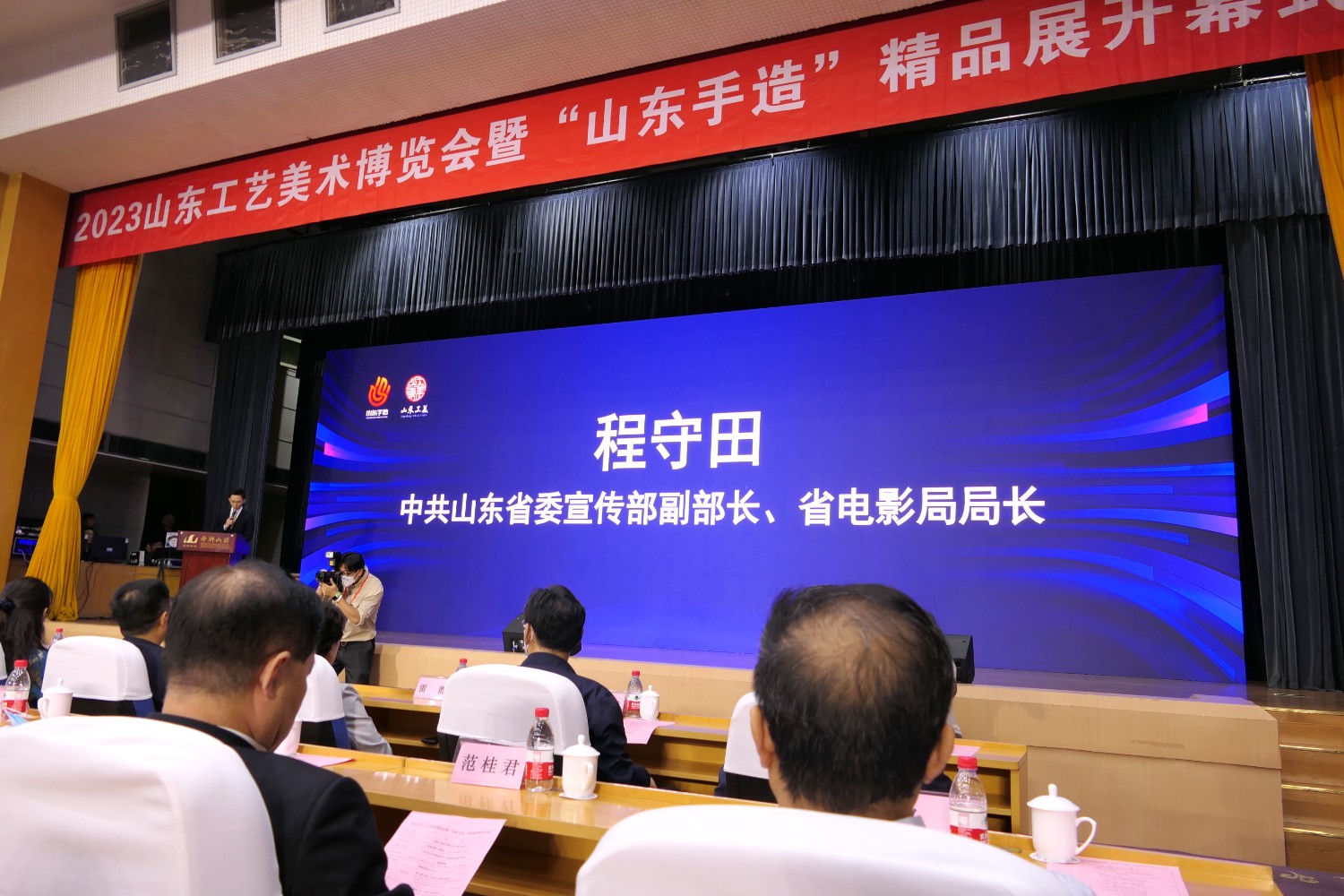 2023-7-192023年5月12日,由山东省工业和信息化厅、中共山东省委宣传部、山东省商务厅主办的“璀璨工美•时尚手造”2023山东工艺美术博览会暨“山东手造”精品展,在舜耕国际会展中心盛大开幕。开幕式以“山东手造”宣传片揭开序幕,“四廊一线”文化体验廊道为主线,展示不同地域文化孕育出的独特手造产品,以历史文脉为依托, 展现文化地标风景的同时突出“山东手造”地域特色。歌舞、乐器、合奏……阵阵掌声,现场还举办了“第八届中国工艺美术大师”傅绍相,孙云毅,李慧同三人的颁证仪式和淄博市文化“两新”新品发布等活动,由程守田、才大颖、孙烨、罗新军、臧耀刚、王哲军、袁敏等领导嘉宾共同触发启动手印,2023山东工艺美术博览会暨“山东手造”精品展正式启动。领导嘉宾巡展,程守田、才大颖、王哲军、袁敏等领导对中国工艺美术大师傅绍相《一路祥瑞》等作品给予高度评价。此次展会华艺安博买球遴选近30件青铜艺术精品参展,展会期间傅绍相接受山东省“新黄河”频道记者任晓雯的采访、山东省电视台尚士春主任的采访,并与山东省电视台主持人毛馨,山东省工艺美术协会会长袁敏等交流安博买球艺术并合影留念。华艺安博买球傅东总经理参展作品《飞天》、傅思涵《福禄祥瑞》、谭炳《鹿伏鹤行》、谭建伟《至圣先师-孔子》、郭宁《呵护》荣获“荷花杯”山东省工艺美术设计创新大赛金奖;同时傅东总经理参展作品《飞天》荣获“2023山东省工艺美术设计创新奖”。
