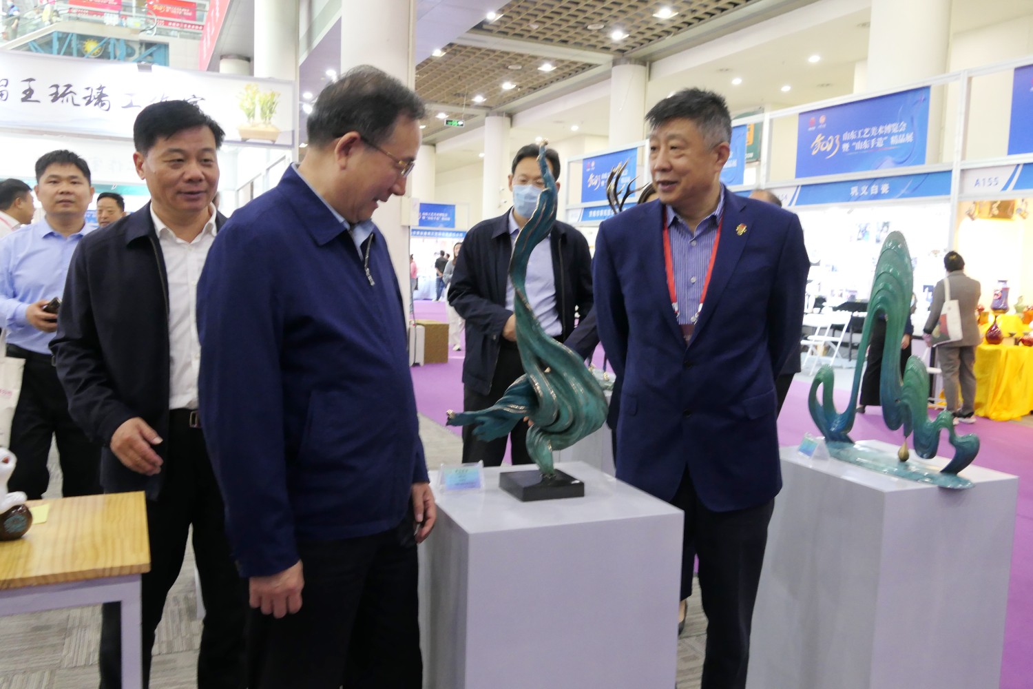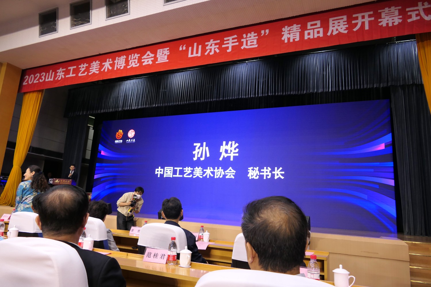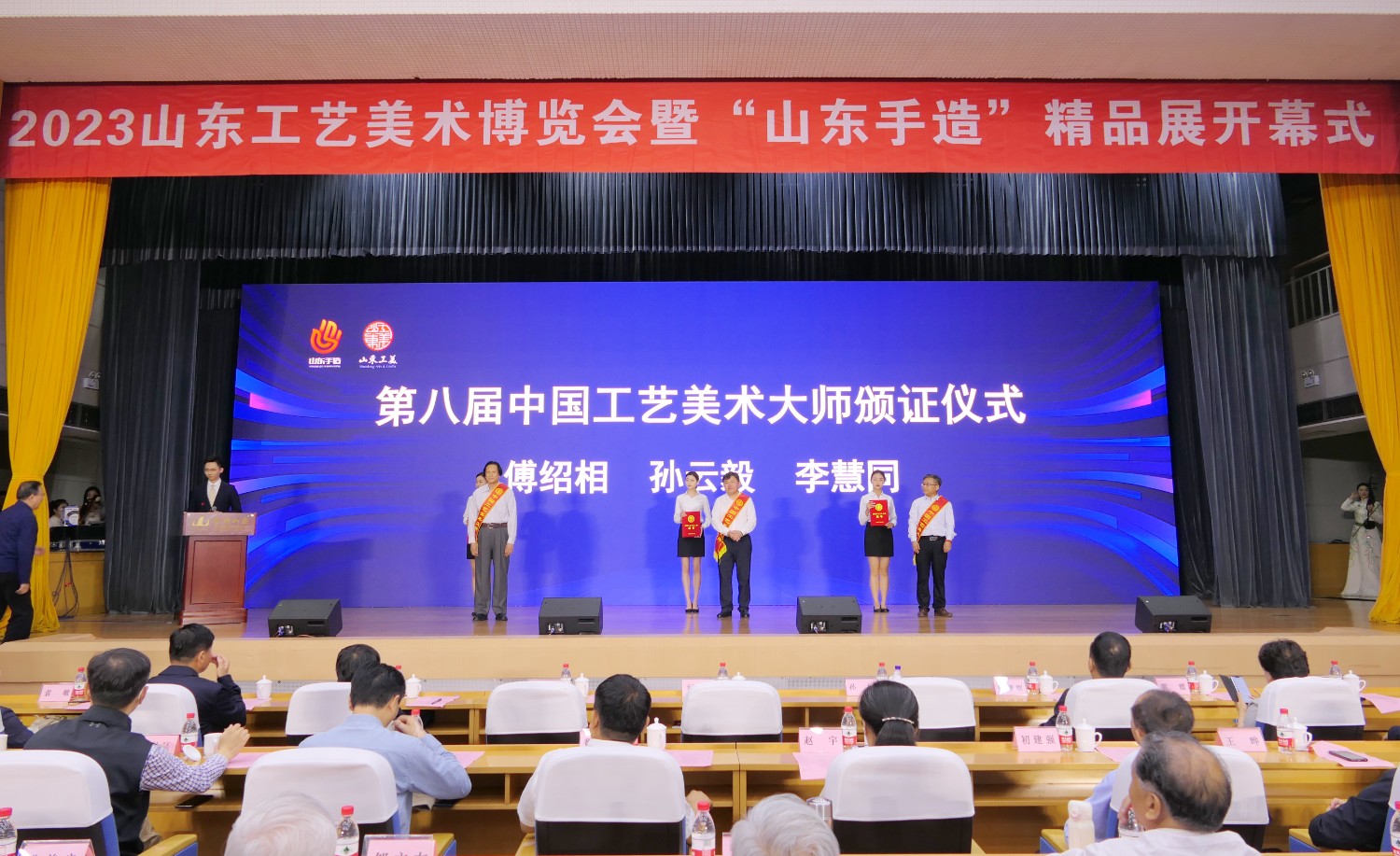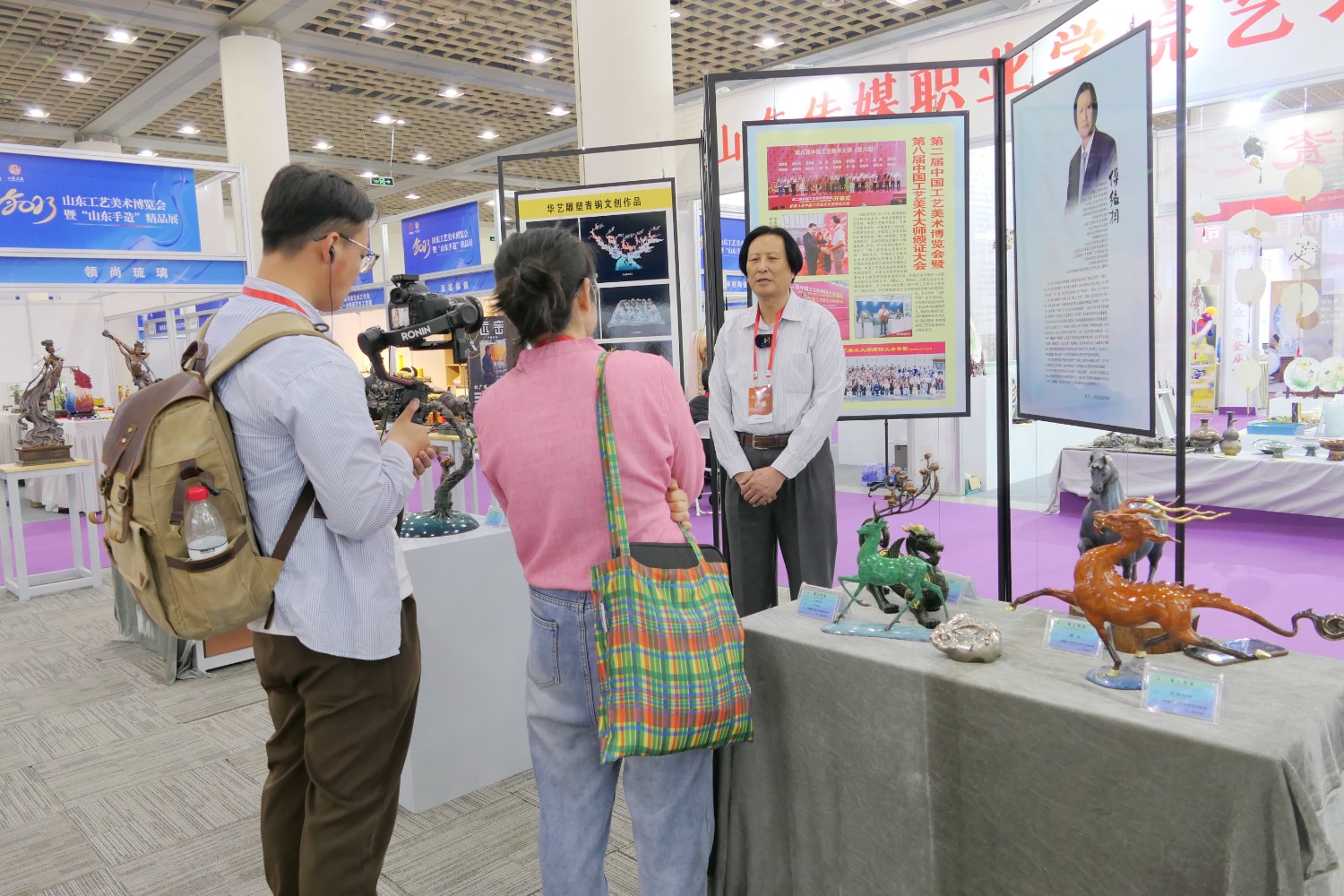 2023-7-192023年5月12日,由山东省工业和信息化厅、中共山东省委宣传部、山东省商务厅主办的“璀璨工美•时尚手造”2023山东工艺美术博览会暨“山东手造”精品展,在舜耕国际会展中心盛大开幕。开幕式以“山东手造”宣传片揭开序幕,“四廊一线”文化体验廊道为主线,展示不同地域文化孕育出的独特手造产品,以历史文脉为依托, 展现文化地标风景的同时突出“山东手造”地域特色。歌舞、乐器、合奏……阵阵掌声,现场还举办了“第八届中国工艺美术大师”傅绍相,孙云毅,李慧同三人的颁证仪式和淄博市文化“两新”新品发布等活动,由程守田、才大颖、孙烨、罗新军、臧耀刚、王哲军、袁敏等领导嘉宾共同触发启动手印,2023山东工艺美术博览会暨“山东手造”精品展正式启动。领导嘉宾巡展,程守田、才大颖、王哲军、袁敏等领导对中国工艺美术大师傅绍相《一路祥瑞》等作品给予高度评价。此次展会华艺安博买球遴选近30件青铜艺术精品参展,展会期间傅绍相接受山东省“新黄河”频道记者任晓雯的采访、山东省电视台尚士春主任的采访,并与山东省电视台主持人毛馨,山东省工艺美术协会会长袁敏等交流安博买球艺术并合影留念。华艺安博买球傅东总经理参展作品《飞天》、傅思涵《福禄祥瑞》、谭炳《鹿伏鹤行》、谭建伟《至圣先师-孔子》、郭宁《呵护》荣获“荷花杯”山东省工艺美术设计创新大赛金奖;同时傅东总经理参展作品《飞天》荣获“2023山东省工艺美术设计创新奖”。