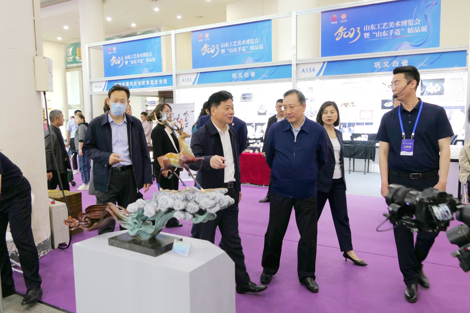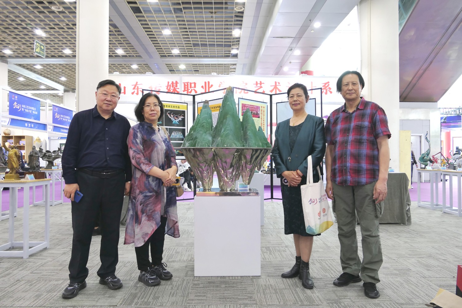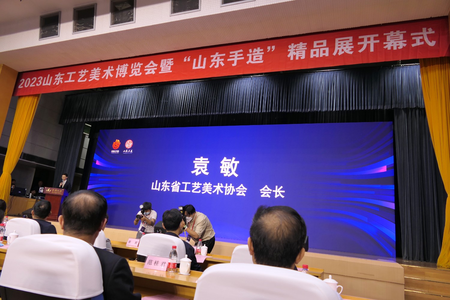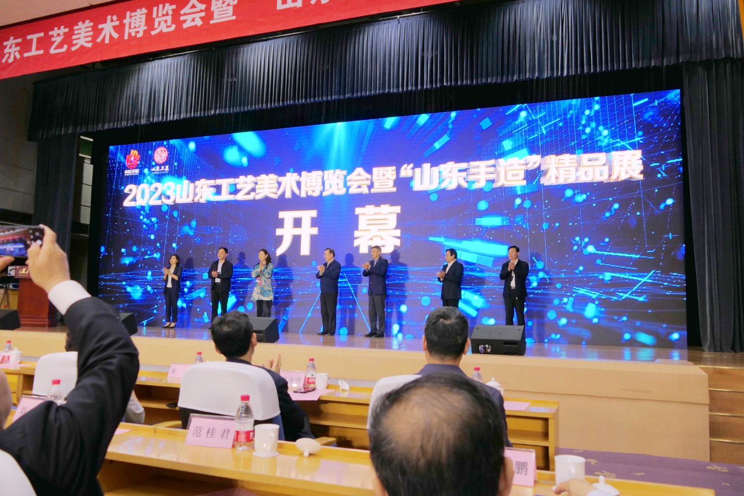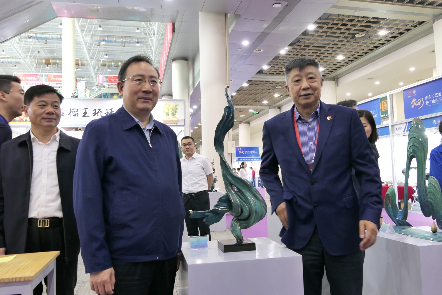 2023-7-192023年5月12日,由山东省工业和信息化厅、中共山东省委宣传部、山东省商务厅主办的“璀璨工美•时尚手造”2023山东工艺美术博览会暨“山东手造”精品展,在舜耕国际会展中心盛大开幕。开幕式以“山东手造”宣传片揭开序幕,“四廊一线”文化体验廊道为主线,展示不同地域文化孕育出的独特手造产品,以历史文脉为依托, 展现文化地标风景的同时突出“山东手造”地域特色。歌舞、乐器、合奏……阵阵掌声,现场还举办了“第八届中国工艺美术大师”傅绍相,孙云毅,李慧同三人的颁证仪式和淄博市文化“两新”新品发布等活动,由程守田、才大颖、孙烨、罗新军、臧耀刚、王哲军、袁敏等领导嘉宾共同触发启动手印,2023山东工艺美术博览会暨“山东手造”精品展正式启动。领导嘉宾巡展,程守田、才大颖、王哲军、袁敏等领导对中国工艺美术大师傅绍相《一路祥瑞》等作品给予高度评价。此次展会华艺安博买球遴选近30件青铜艺术精品参展,展会期间傅绍相接受山东省“新黄河”频道记者任晓雯的采访、山东省电视台尚士春主任的采访,并与山东省电视台主持人毛馨,山东省工艺美术协会会长袁敏等交流安博买球艺术并合影留念。华艺安博买球傅东总经理参展作品《飞天》、傅思涵《福禄祥瑞》、谭炳《鹿伏鹤行》、谭建伟《至圣先师-孔子》、郭宁《呵护》荣获“荷花杯”山东省工艺美术设计创新大赛金奖;同时傅东总经理参展作品《飞天》荣获“2023山东省工艺美术设计创新奖”。