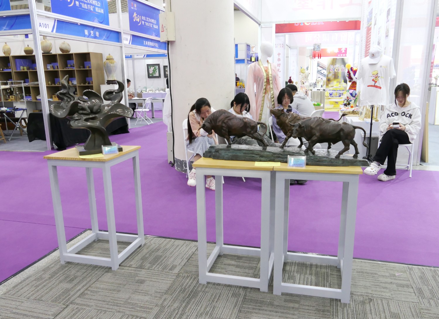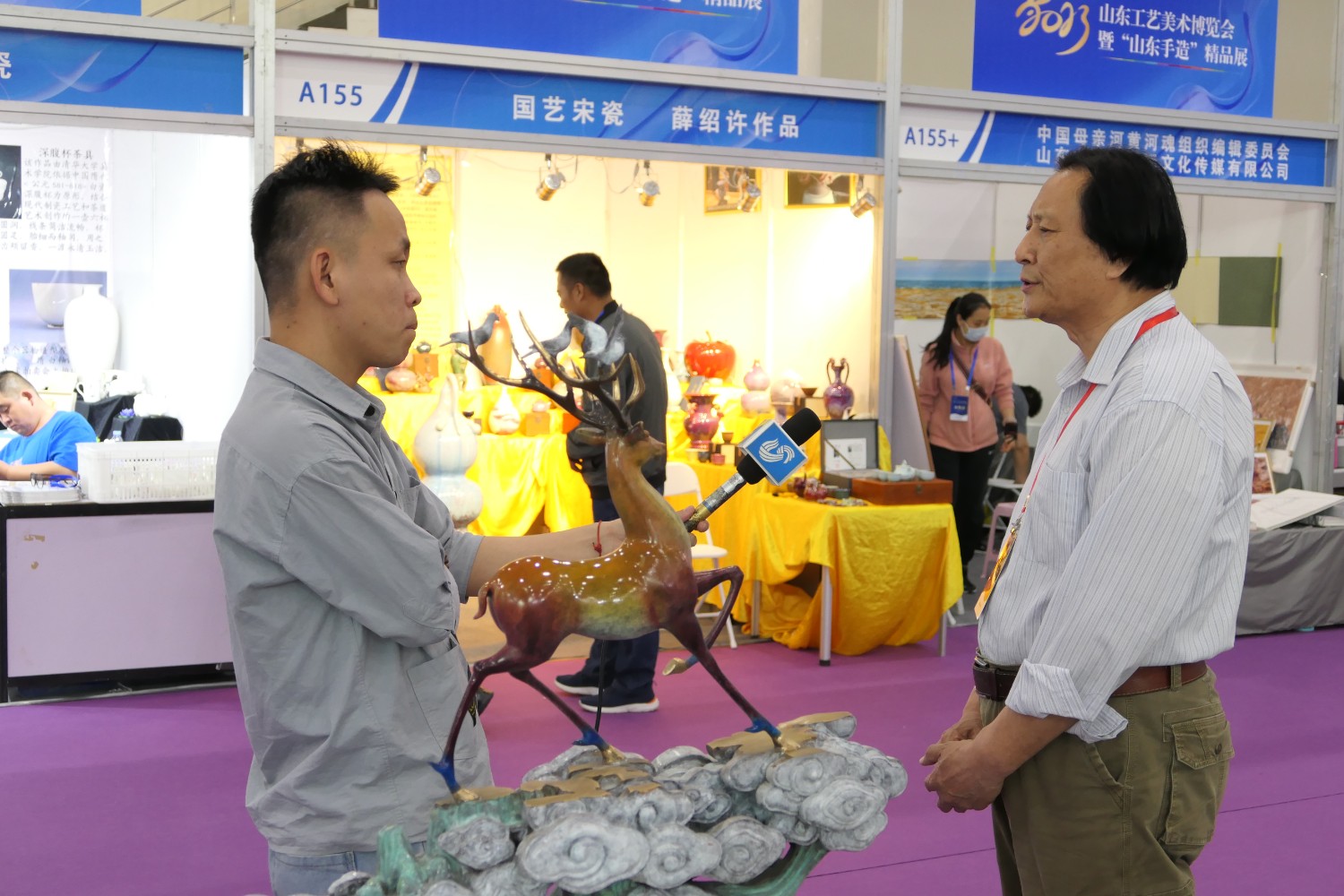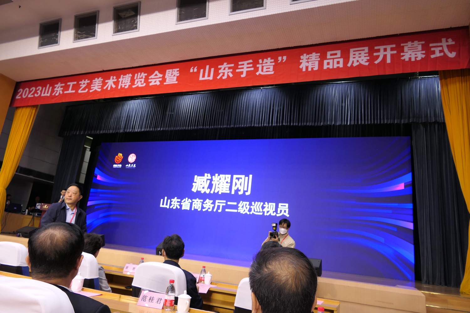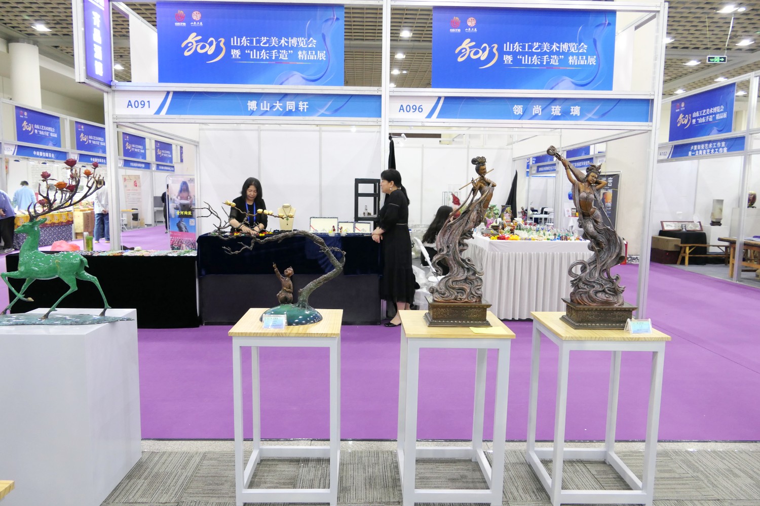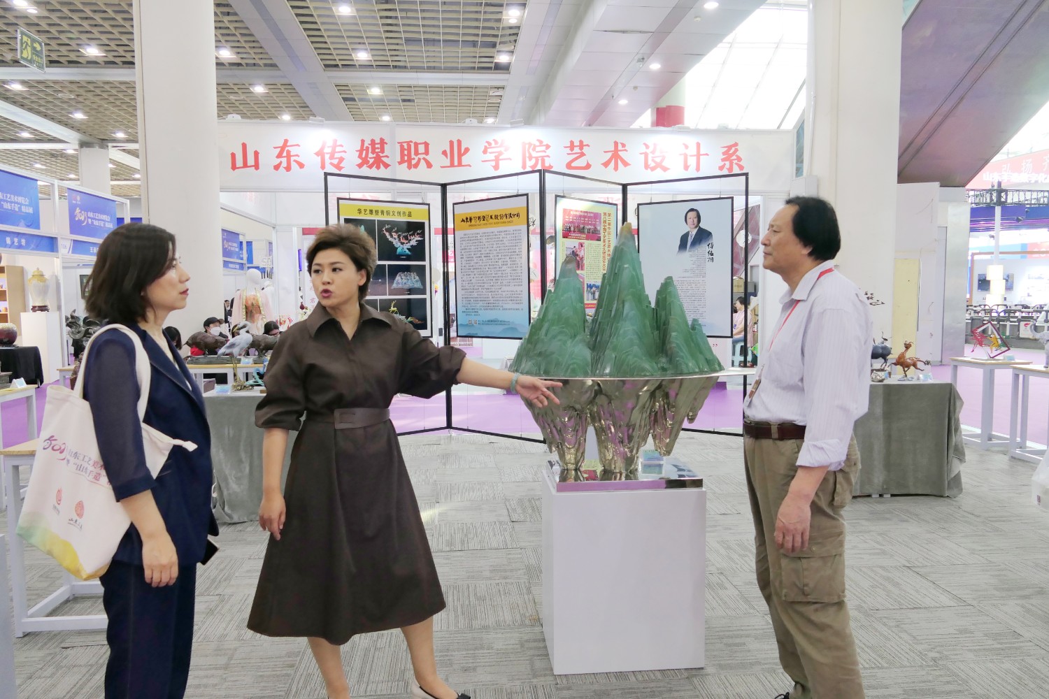 2023-7-192023年5月12日,由山东省工业和信息化厅、中共山东省委宣传部、山东省商务厅主办的“璀璨工美•时尚手造”2023山东工艺美术博览会暨“山东手造”精品展,在舜耕国际会展中心盛大开幕。开幕式以“山东手造”宣传片揭开序幕,“四廊一线”文化体验廊道为主线,展示不同地域文化孕育出的独特手造产品,以历史文脉为依托, 展现文化地标风景的同时突出“山东手造”地域特色。歌舞、乐器、合奏……阵阵掌声,现场还举办了“第八届中国工艺美术大师”傅绍相,孙云毅,李慧同三人的颁证仪式和淄博市文化“两新”新品发布等活动,由程守田、才大颖、孙烨、罗新军、臧耀刚、王哲军、袁敏等领导嘉宾共同触发启动手印,2023山东工艺美术博览会暨“山东手造”精品展正式启动。领导嘉宾巡展,程守田、才大颖、王哲军、袁敏等领导对中国工艺美术大师傅绍相《一路祥瑞》等作品给予高度评价。此次展会华艺安博买球遴选近30件青铜艺术精品参展,展会期间傅绍相接受山东省“新黄河”频道记者任晓雯的采访、山东省电视台尚士春主任的采访,并与山东省电视台主持人毛馨,山东省工艺美术协会会长袁敏等交流安博买球艺术并合影留念。华艺安博买球傅东总经理参展作品《飞天》、傅思涵《福禄祥瑞》、谭炳《鹿伏鹤行》、谭建伟《至圣先师-孔子》、郭宁《呵护》荣获“荷花杯”山东省工艺美术设计创新大赛金奖;同时傅东总经理参展作品《飞天》荣获“2023山东省工艺美术设计创新奖”。