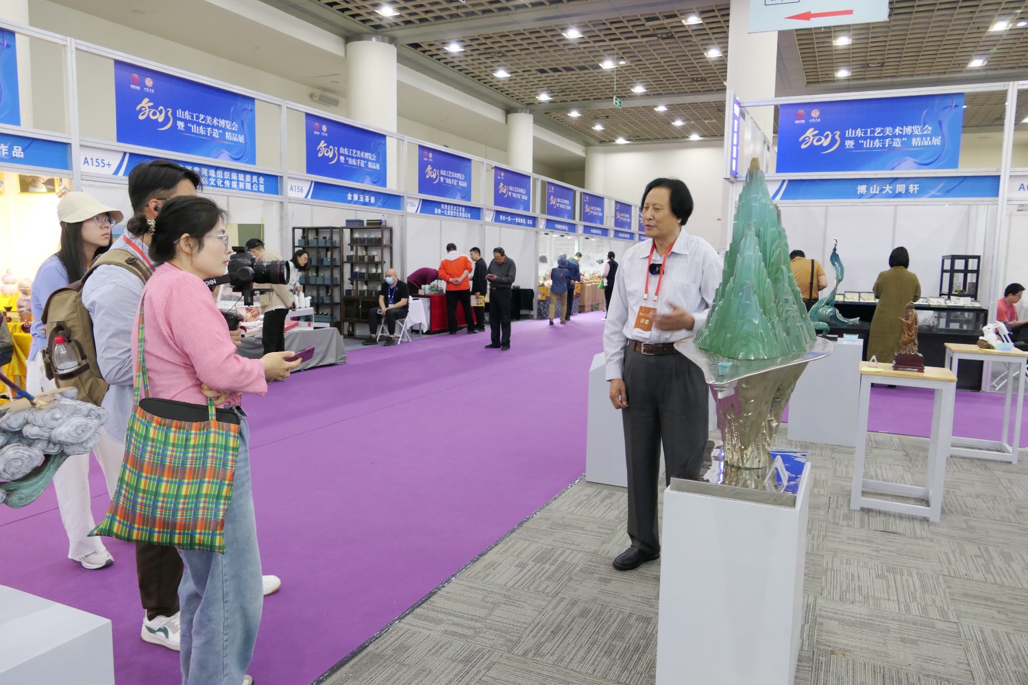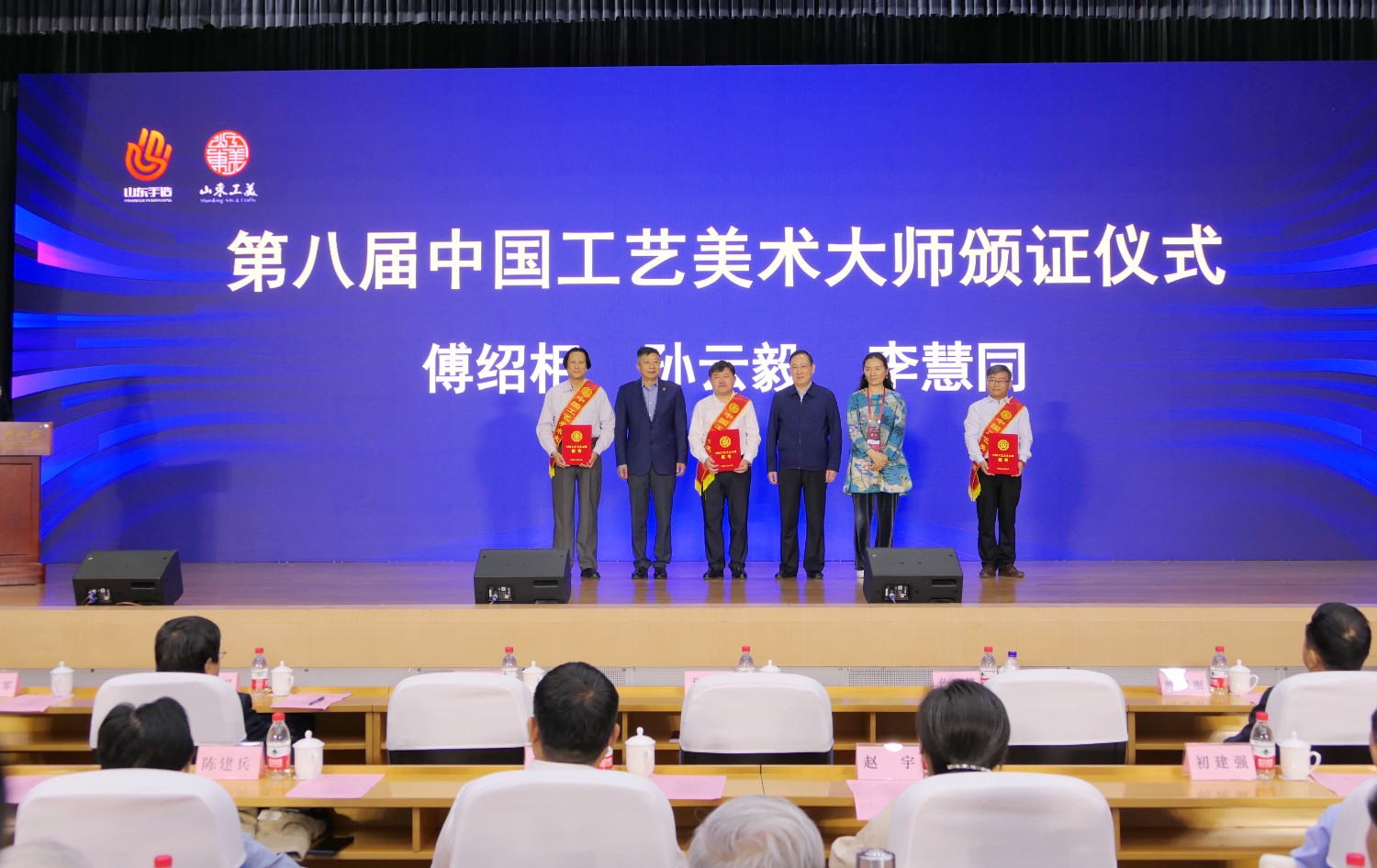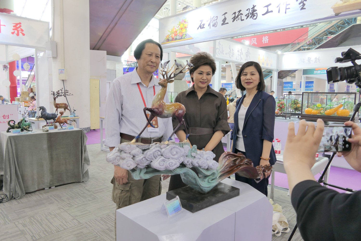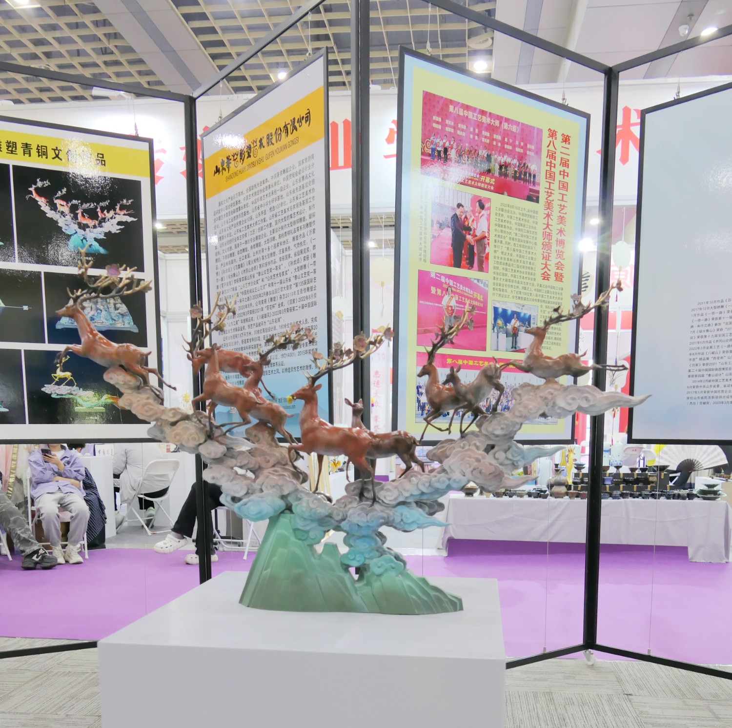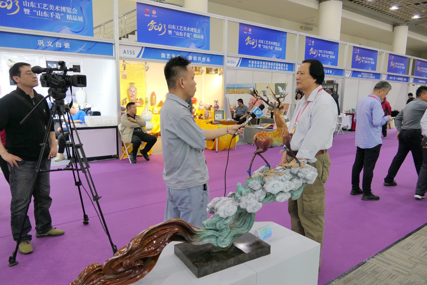 2023-7-192023年5月12日,由山东省工业和信息化厅、中共山东省委宣传部、山东省商务厅主办的“璀璨工美•时尚手造”2023山东工艺美术博览会暨“山东手造”精品展,在舜耕国际会展中心盛大开幕。开幕式以“山东手造”宣传片揭开序幕,“四廊一线”文化体验廊道为主线,展示不同地域文化孕育出的独特手造产品,以历史文脉为依托, 展现文化地标风景的同时突出“山东手造”地域特色。歌舞、乐器、合奏……阵阵掌声,现场还举办了“第八届中国工艺美术大师”傅绍相,孙云毅,李慧同三人的颁证仪式和淄博市文化“两新”新品发布等活动,由程守田、才大颖、孙烨、罗新军、臧耀刚、王哲军、袁敏等领导嘉宾共同触发启动手印,2023山东工艺美术博览会暨“山东手造”精品展正式启动。领导嘉宾巡展,程守田、才大颖、王哲军、袁敏等领导对中国工艺美术大师傅绍相《一路祥瑞》等作品给予高度评价。此次展会华艺安博买球遴选近30件青铜艺术精品参展,展会期间傅绍相接受山东省“新黄河”频道记者任晓雯的采访、山东省电视台尚士春主任的采访,并与山东省电视台主持人毛馨,山东省工艺美术协会会长袁敏等交流安博买球艺术并合影留念。华艺安博买球傅东总经理参展作品《飞天》、傅思涵《福禄祥瑞》、谭炳《鹿伏鹤行》、谭建伟《至圣先师-孔子》、郭宁《呵护》荣获“荷花杯”山东省工艺美术设计创新大赛金奖;同时傅东总经理参展作品《飞天》荣获“2023山东省工艺美术设计创新奖”。