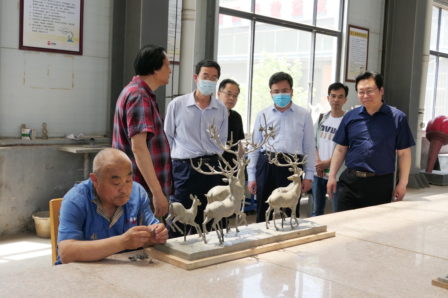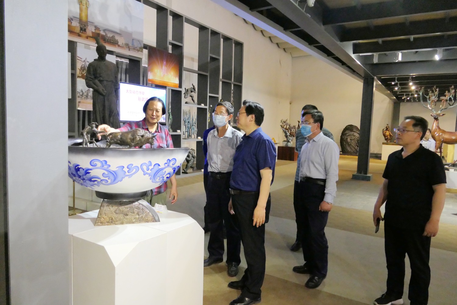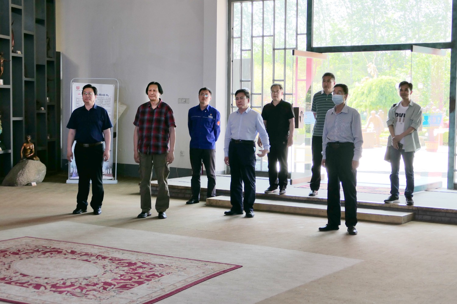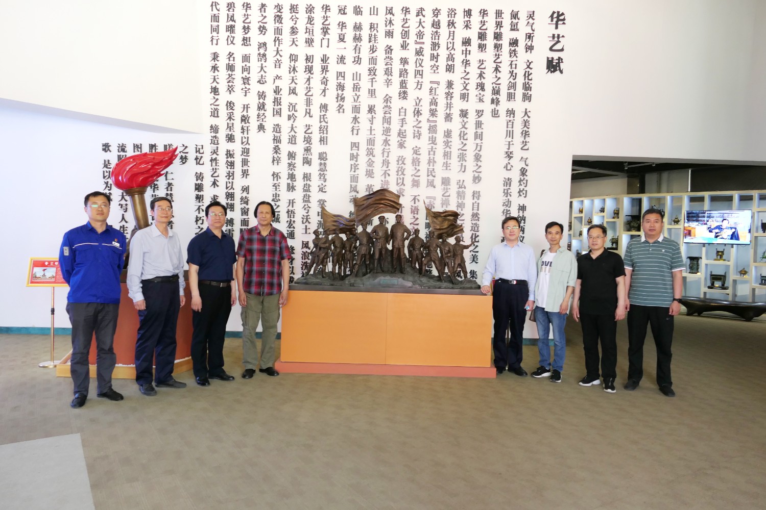 2023年5月16日,山东海化集团党群工作部孙志部长,海化集团高管张良波,海化报社总编辑袁训彦等领导一行7人莅临华艺安博买球参观并审稿安博买球作品,傅绍相陪同活动。
