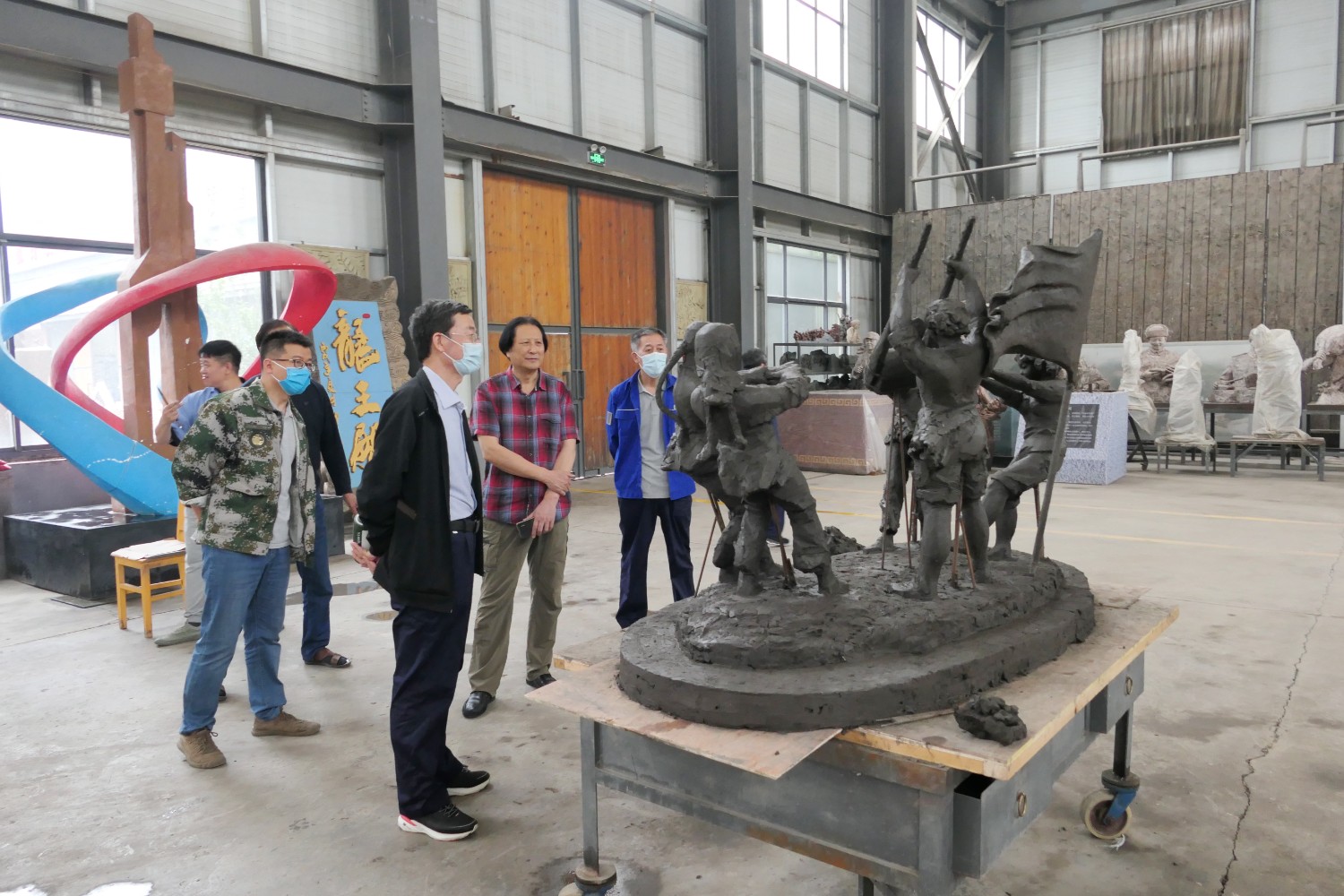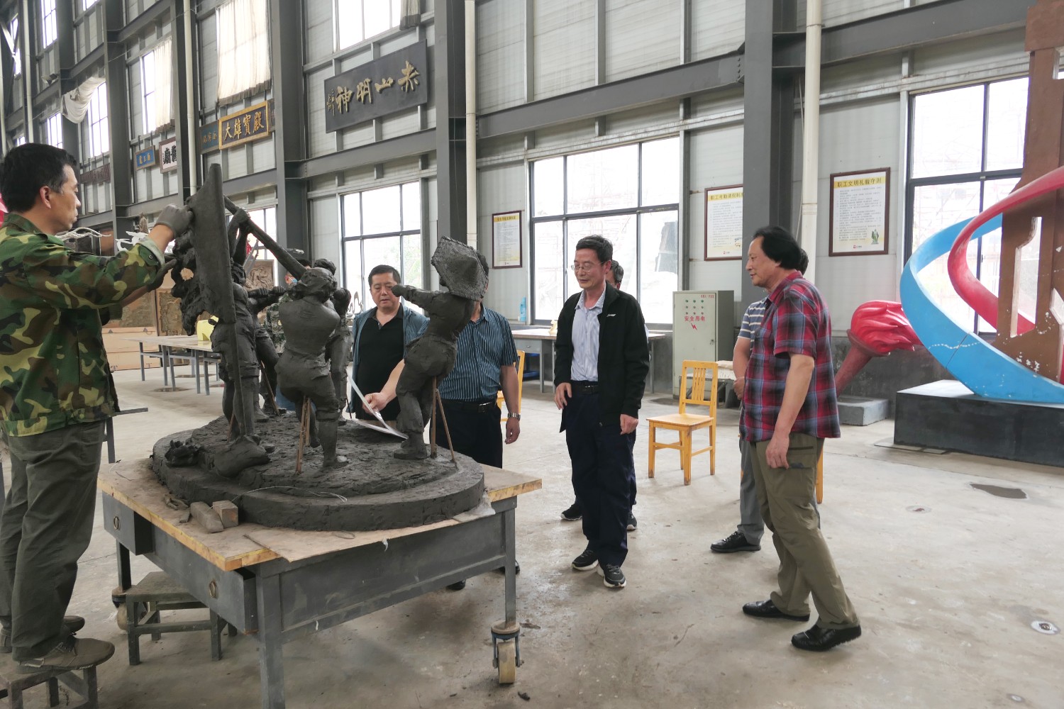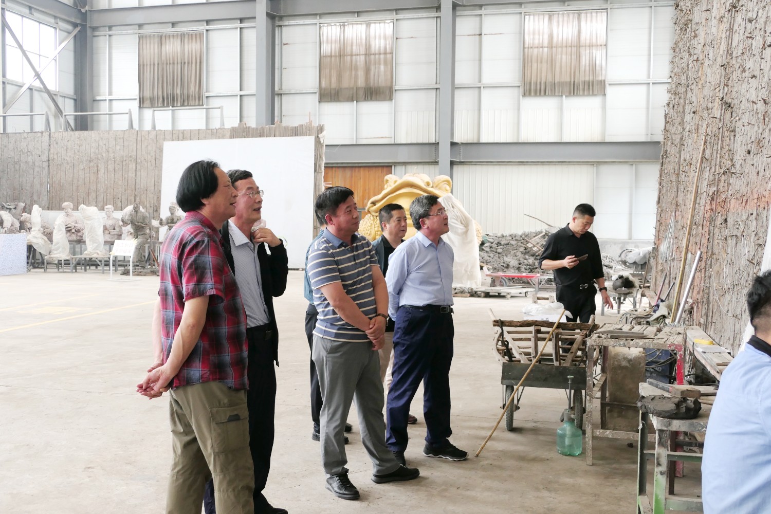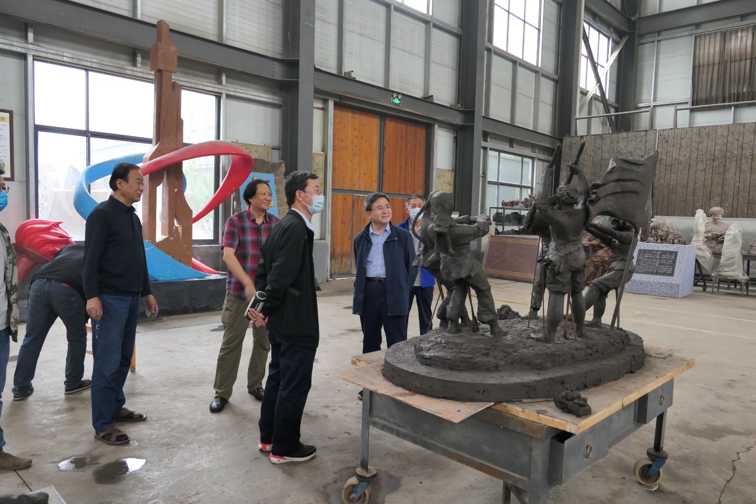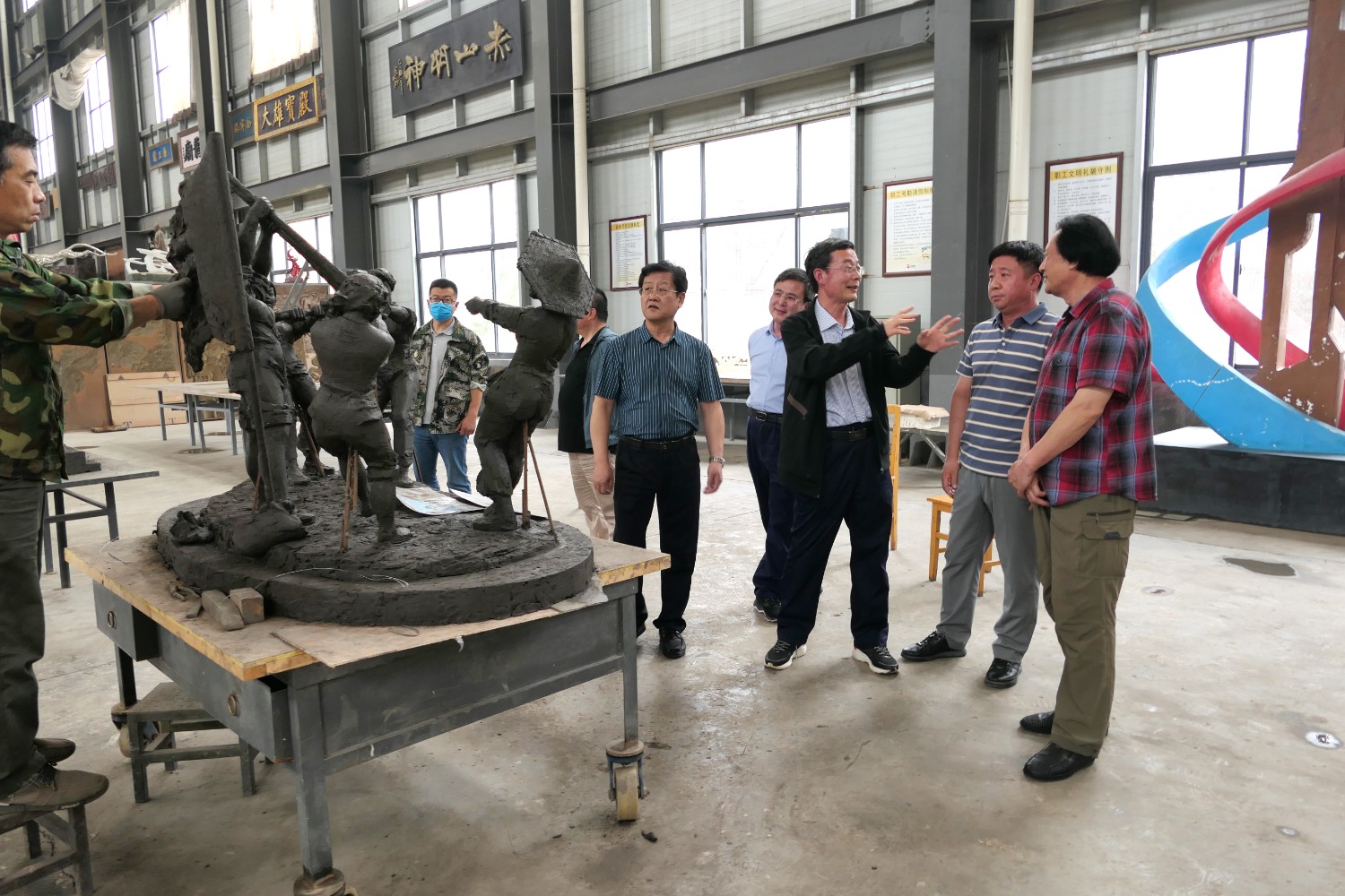 2023年5月30日,山东海化集团党群书记张良波,海化报社总编辑袁训彦,莅临华艺审验泥塑作品。诸城市东升房地产开发有限公司董事长姜卫刚及北京朋友魏玉国等领导,莅临华艺安博买球洽谈合作业务。傅绍相陪同参观并介绍安博买球艺术。