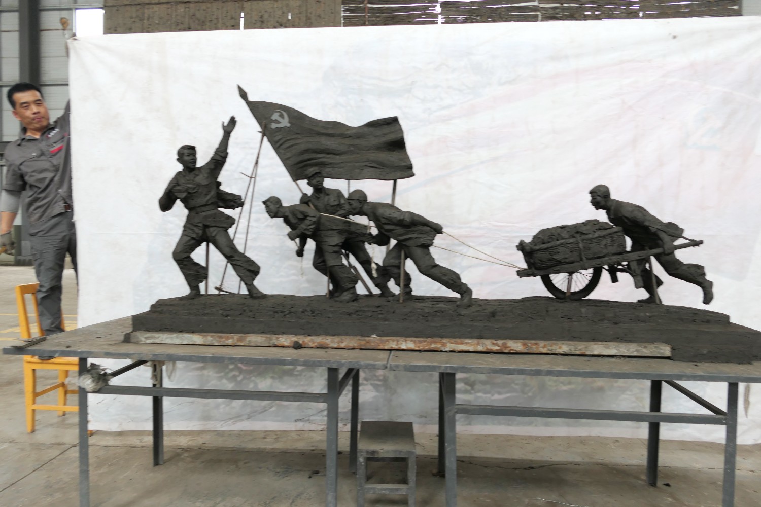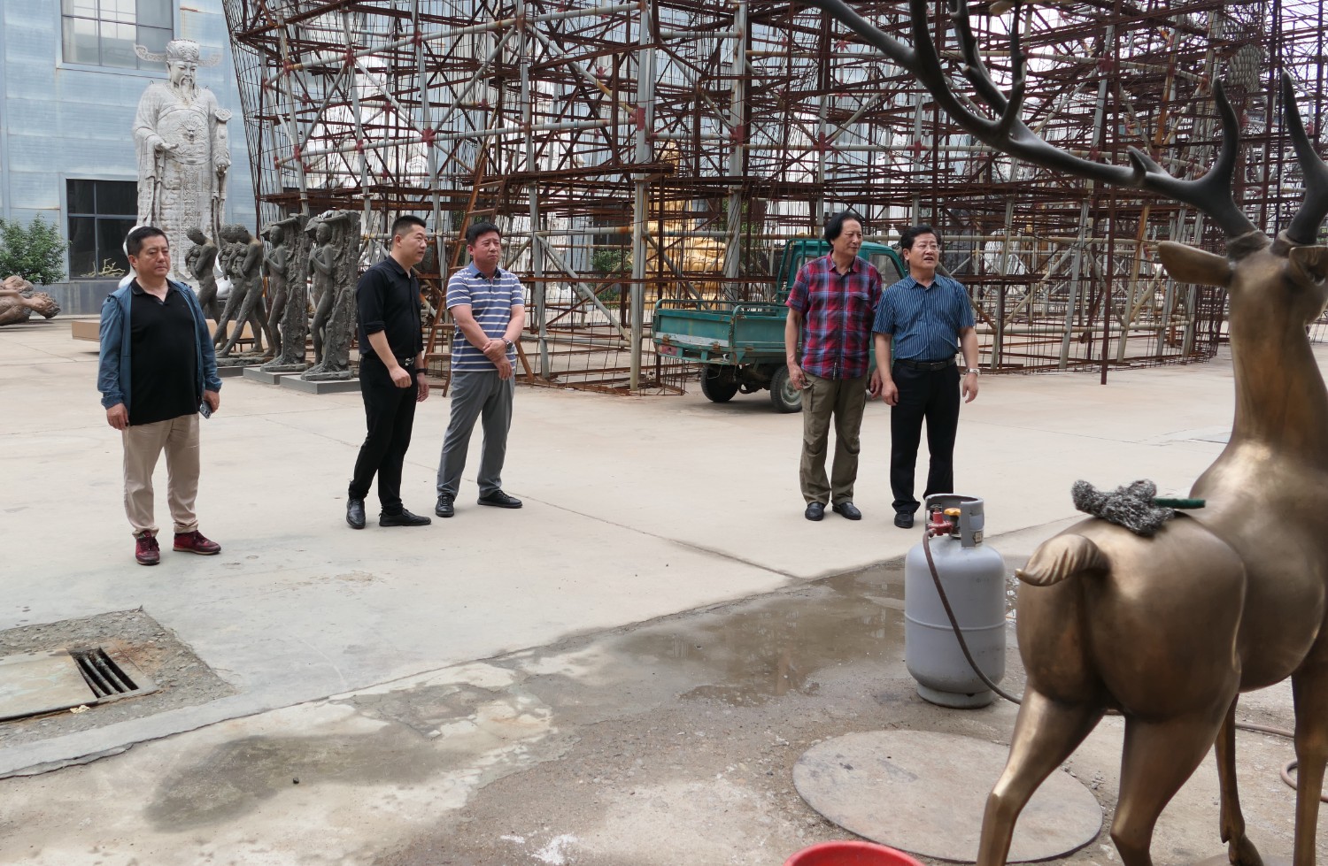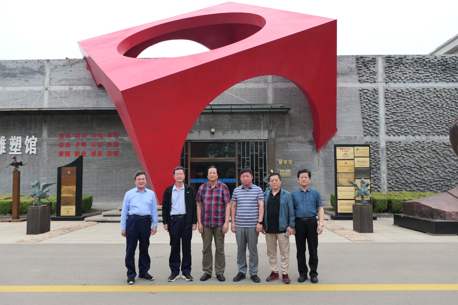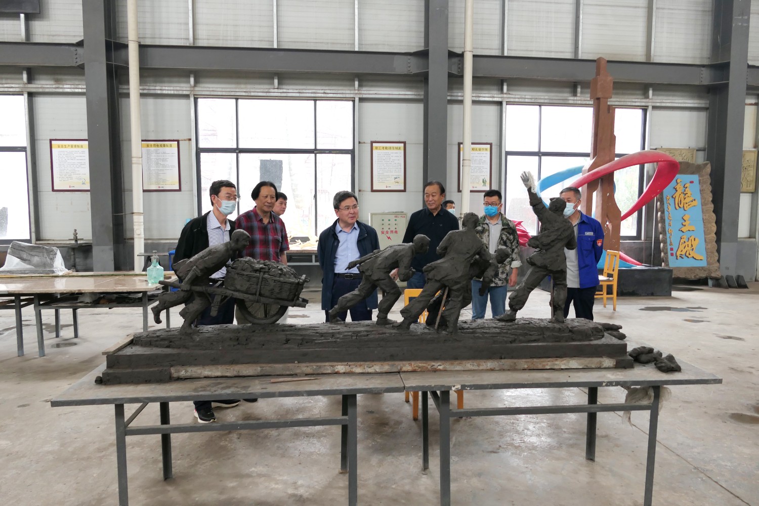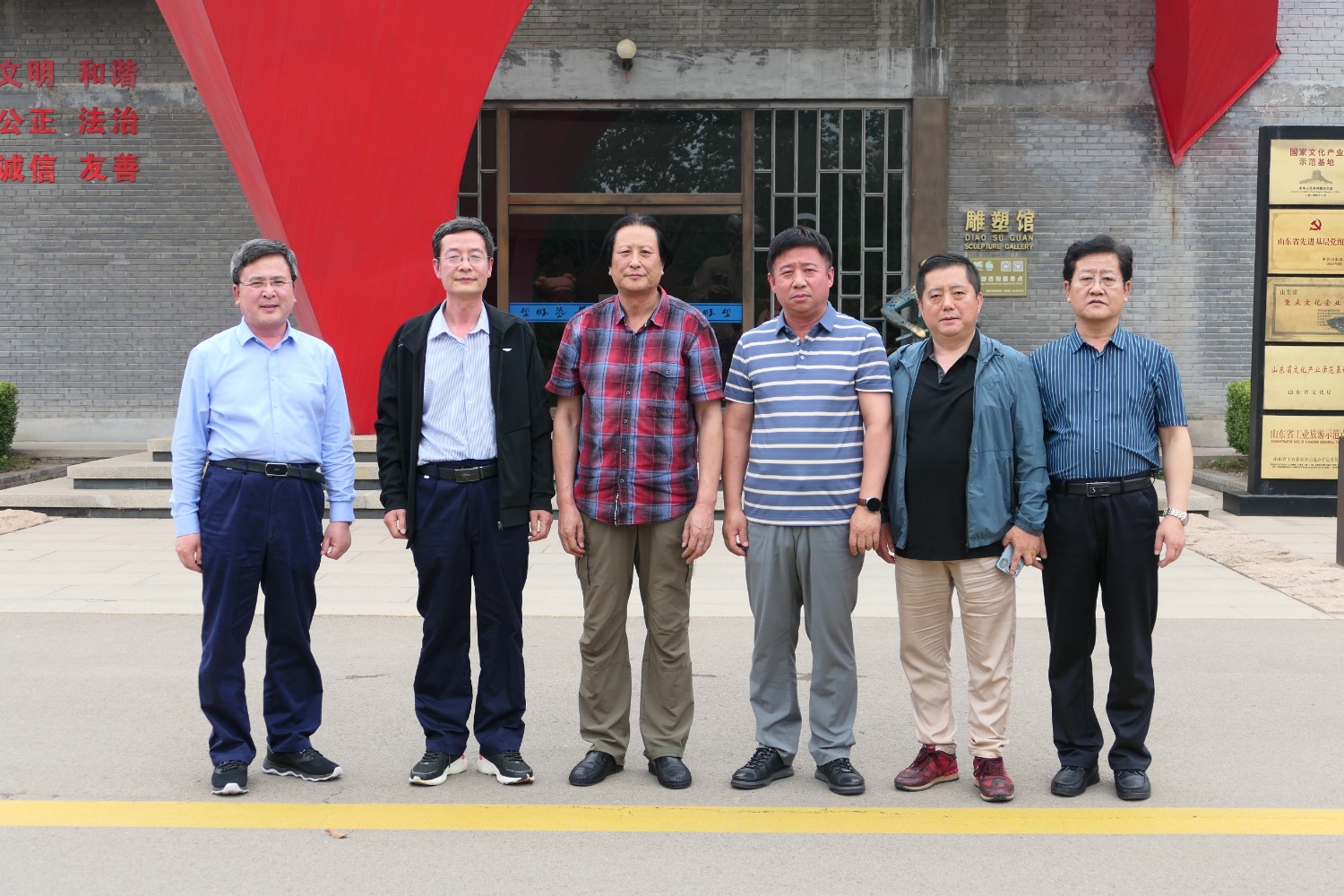 2023年5月30日,山东海化集团党群书记张良波,海化报社总编辑袁训彦,莅临华艺审验泥塑作品。诸城市东升房地产开发有限公司董事长姜卫刚及北京朋友魏玉国等领导,莅临华艺安博买球洽谈合作业务。傅绍相陪同参观并介绍安博买球艺术。