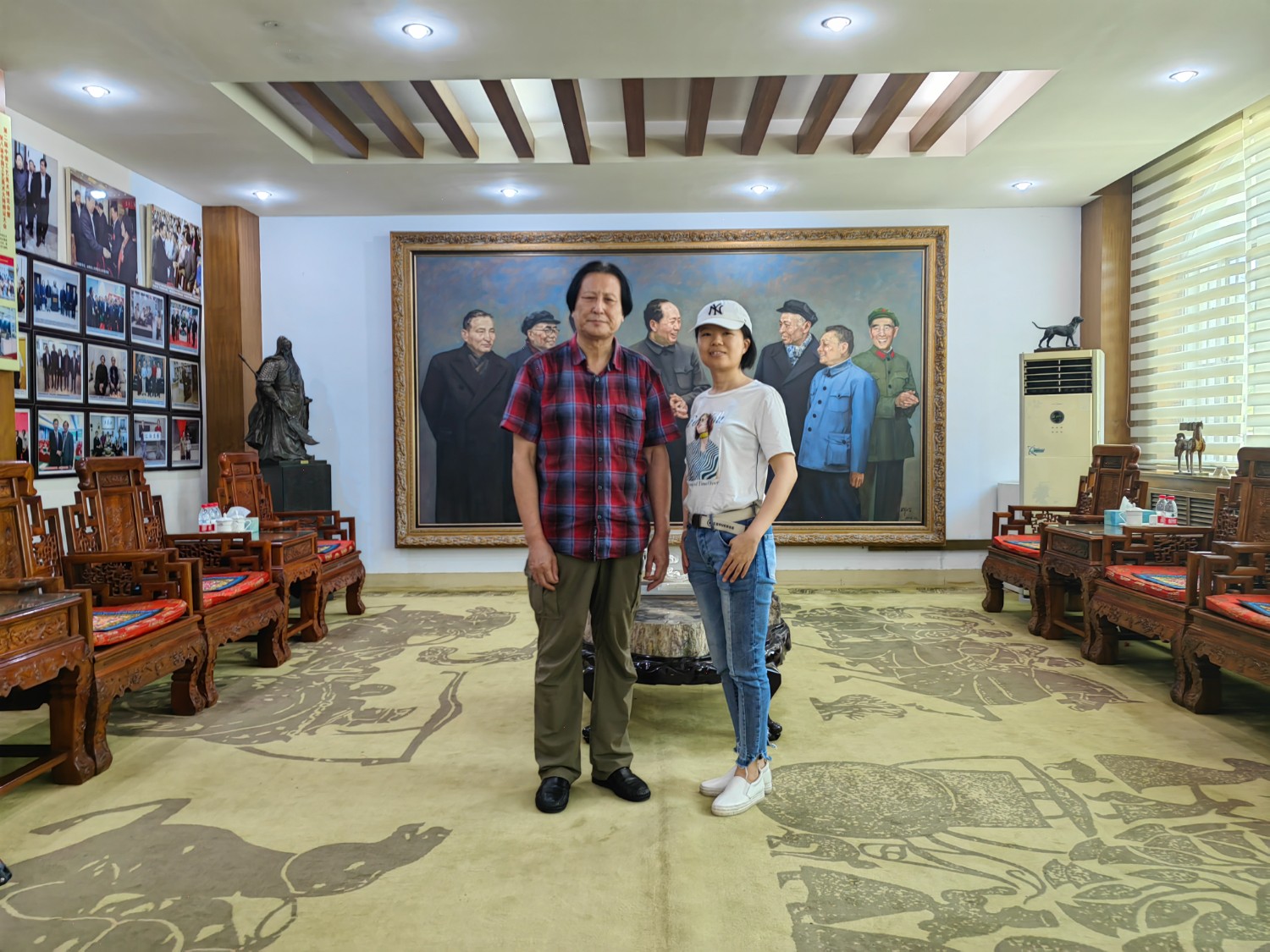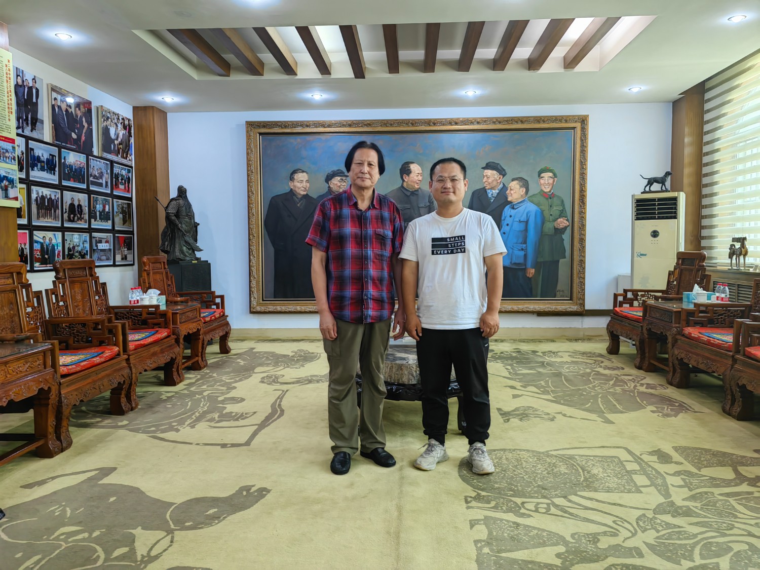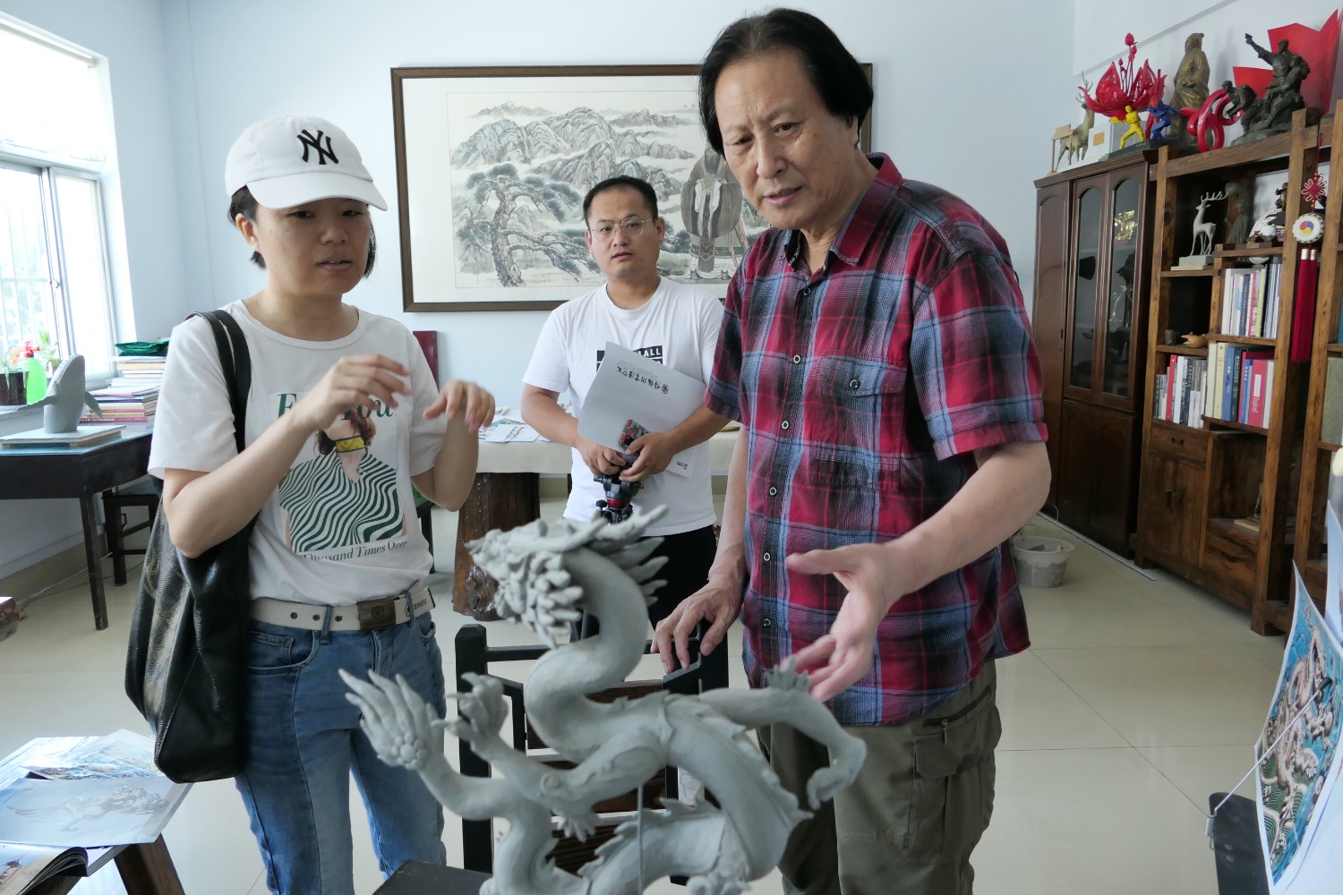 2023年6月21日,大众报业集团齐鲁晚报王赟工作室王赟主任、齐鲁晚报全媒体策划中心主编王建伟主任一行莅临华艺安博买球采访调研活动,傅绍相先生接受采访并介绍安博买球艺术。