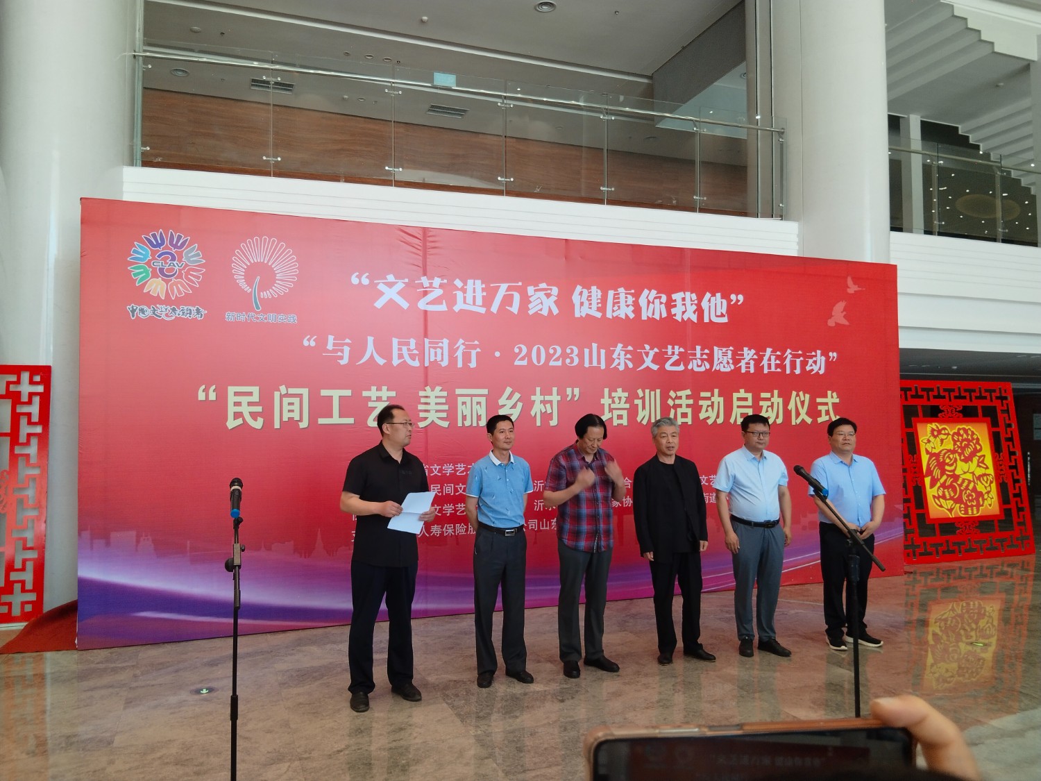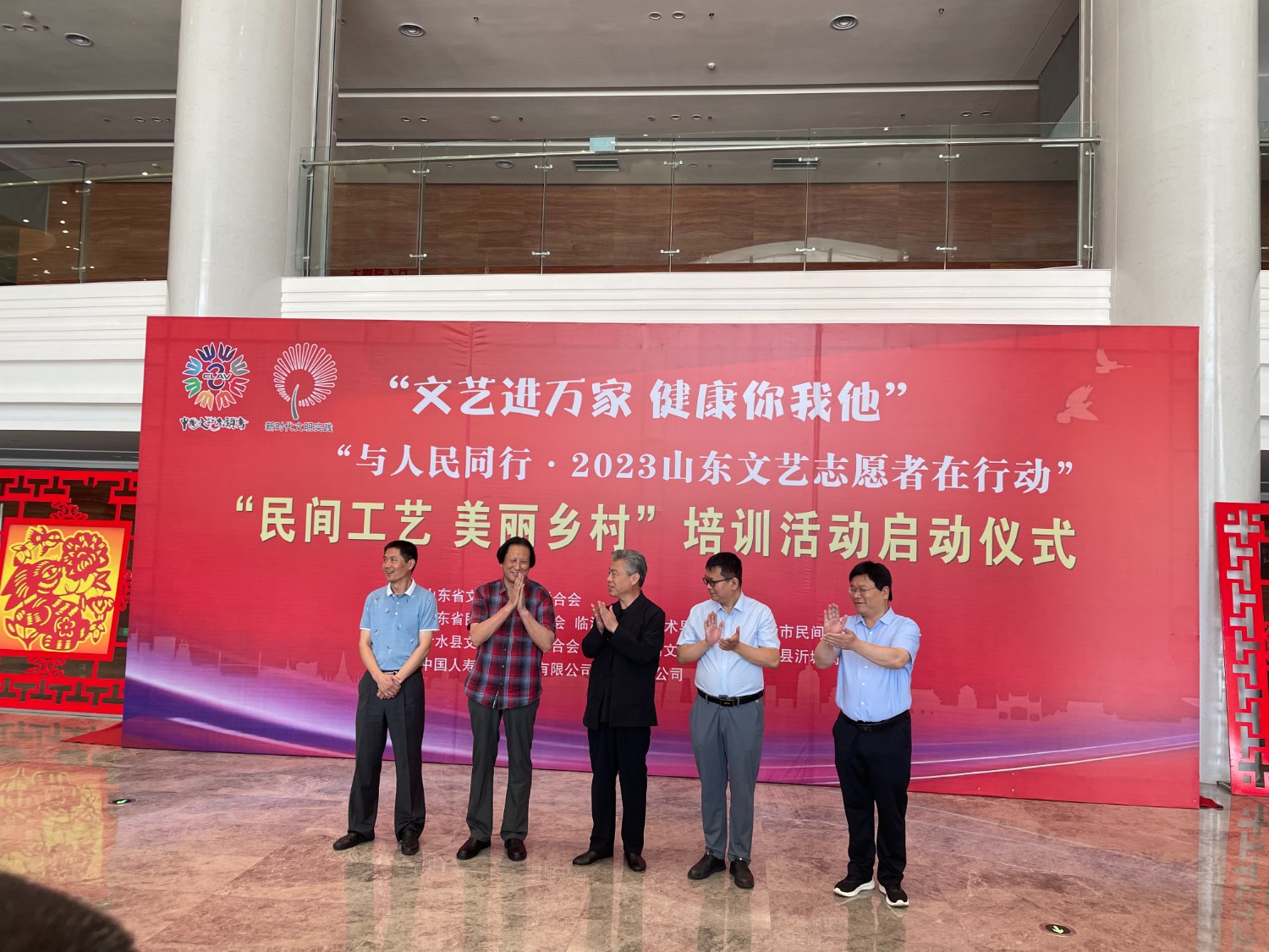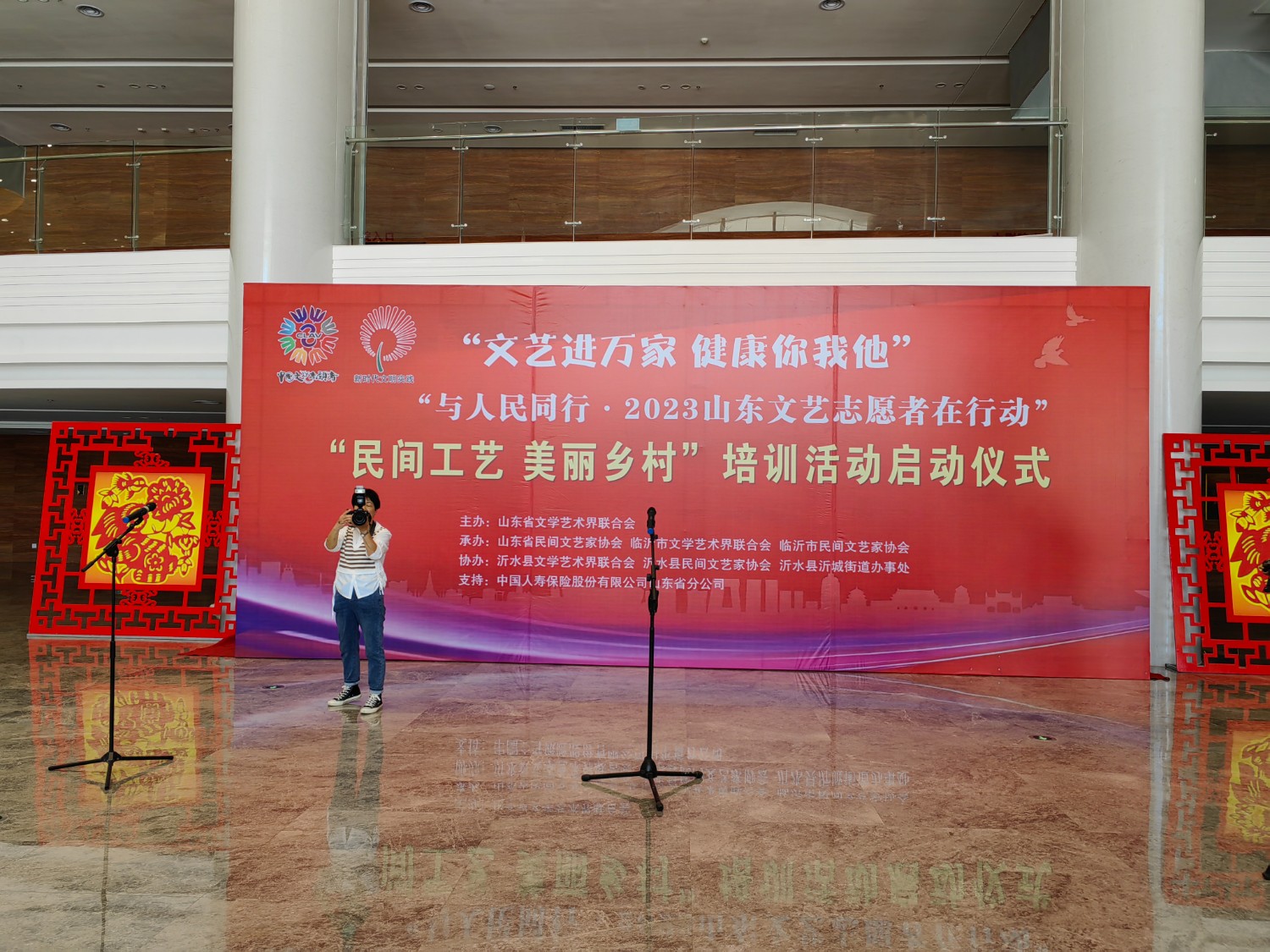 5月23日,山东省新时代文明实践文艺志愿服务“民间工艺 美丽乡村”培训活动启动仪式及“深扎”调研活动在临沂市沂水县文化艺术中心隆重举行。傅绍相作为山东省民协“文艺两新”工作委员会主任,全程参加活动,并与学员参观了沂水县彩虹小镇,沂南县马牧池影视基地,弘扬红色文化,续庚红色血脉,传承红色精神。培训活动期间,观看了《沂蒙山六姐妹》电视剧及到“临沂人才学术交流中心”,高新园区高科技企业“咔得乐”参观。此次培训学习时间虽然短暂,但内容丰富,学员受益匪浅。