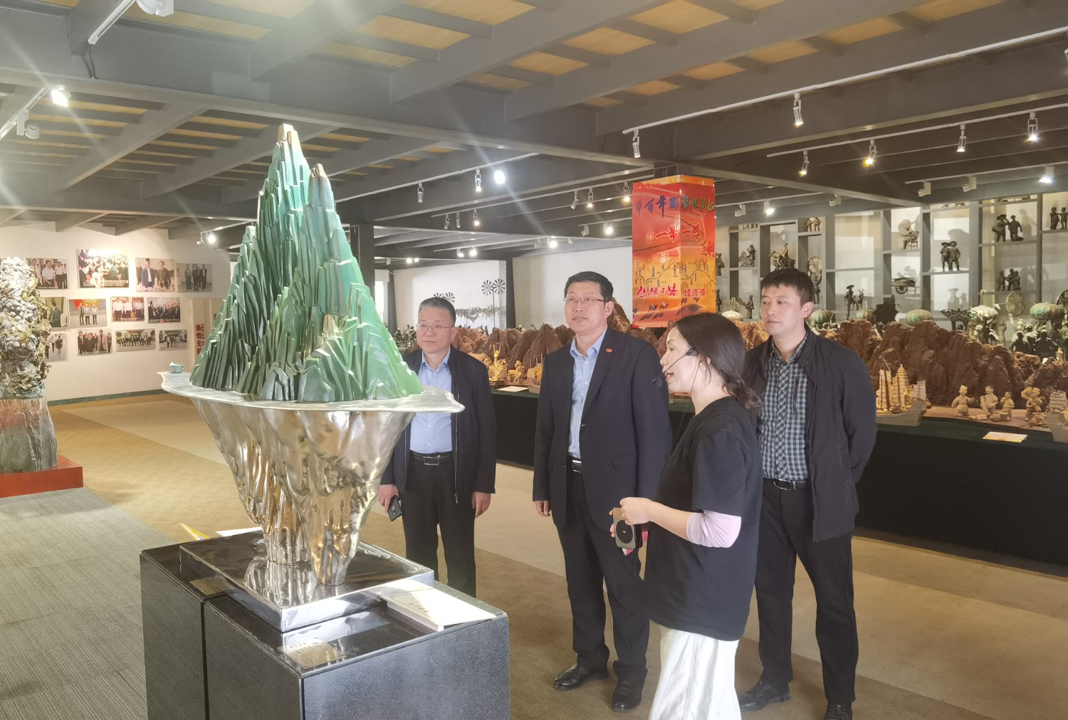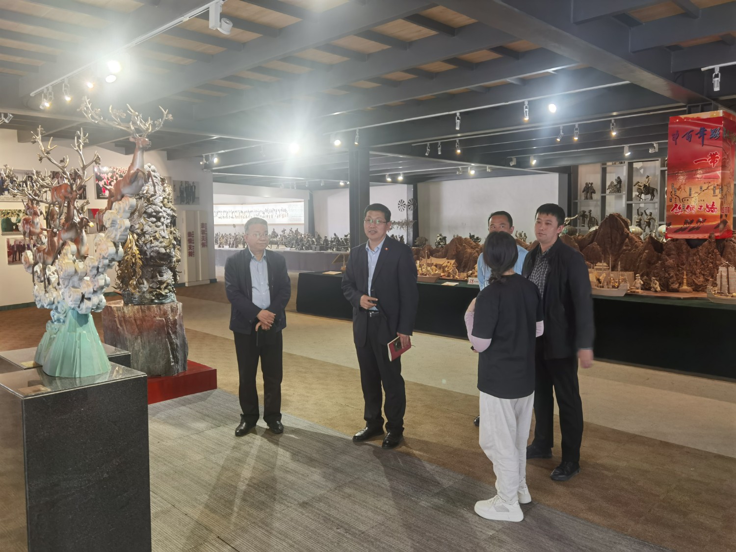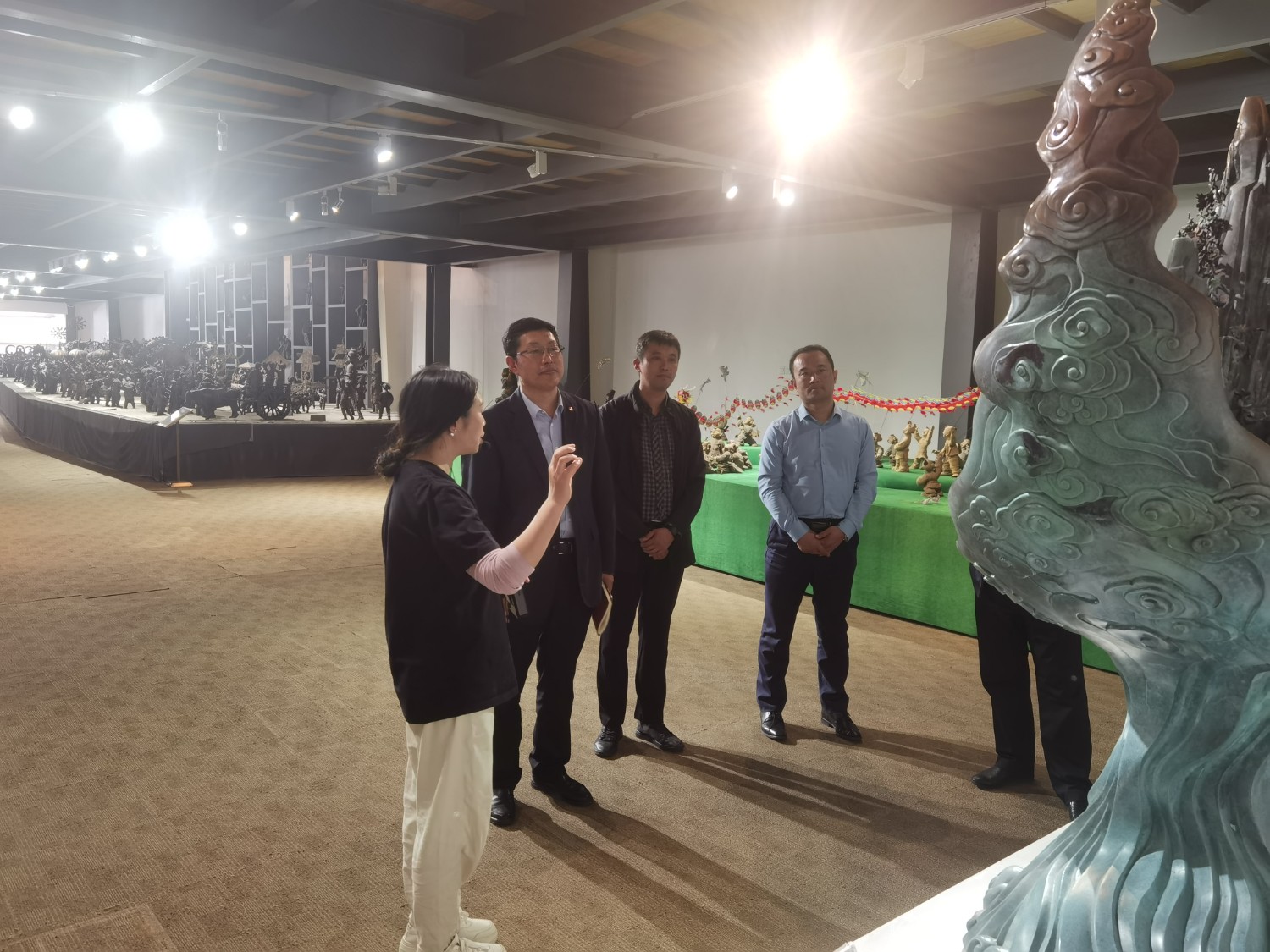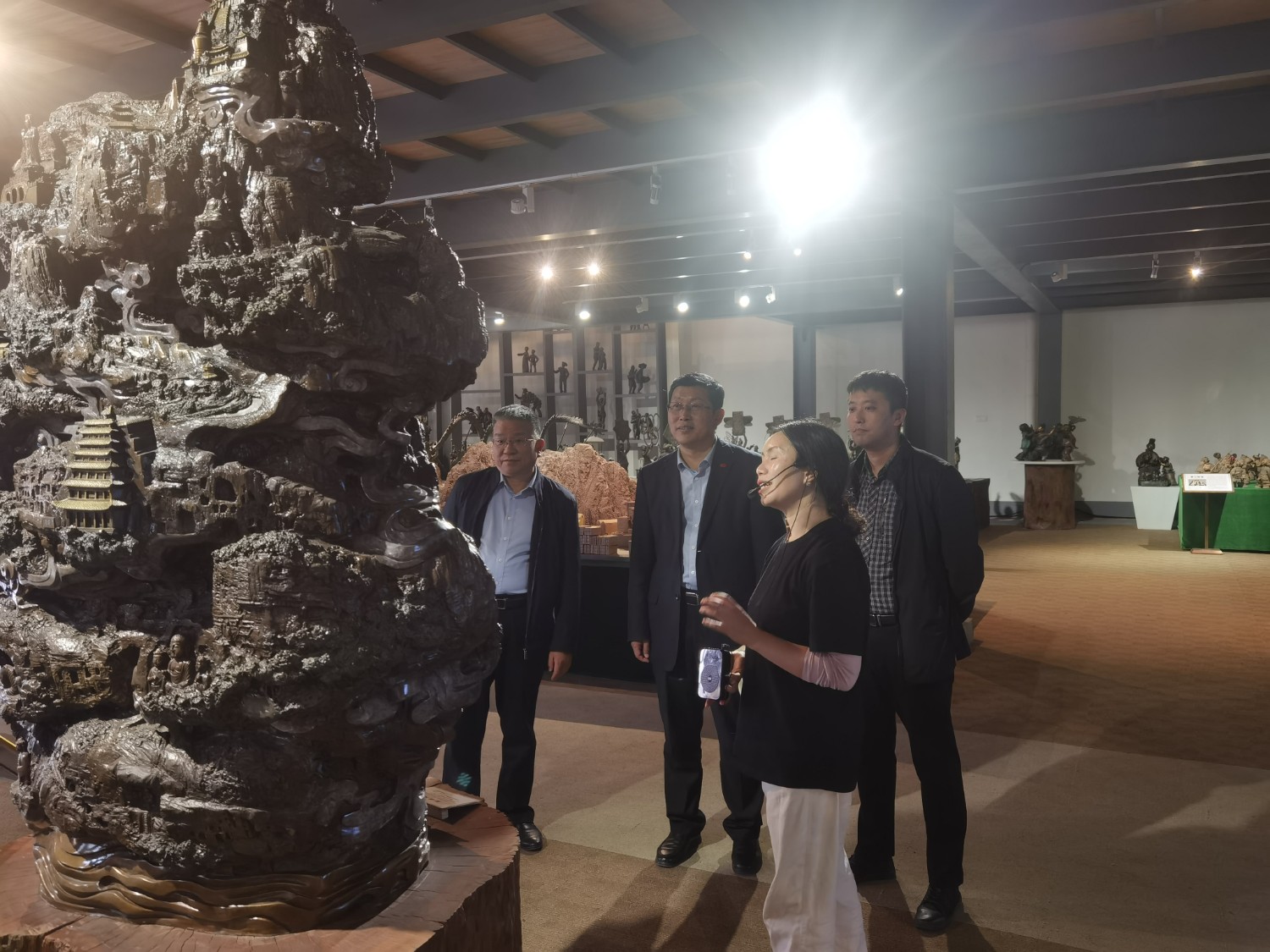 2023年4月18日,中国铸造协会总经济师马宏儒一行,莅临华艺安博买球视察指导,华艺总经理傅东陪同参观并介绍安博买球艺术。