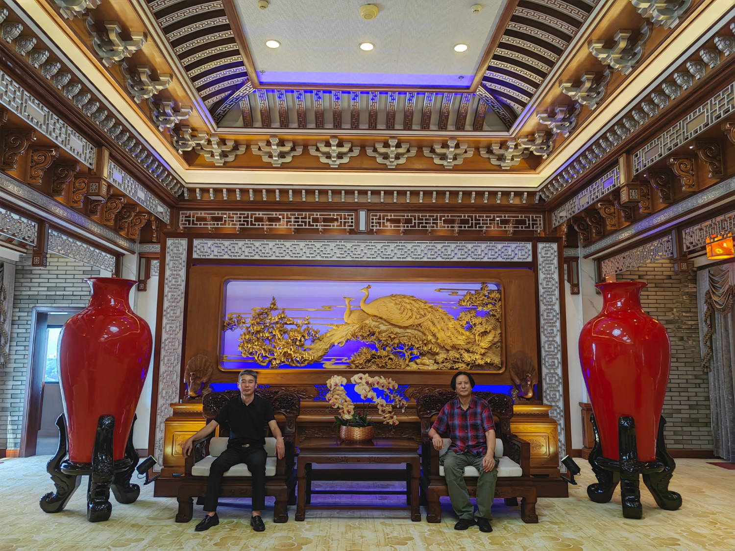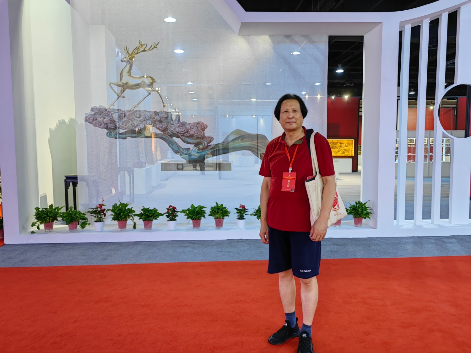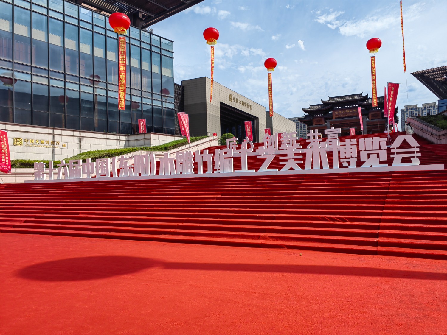 中国工艺美术大师傅绍相应邀出席本次大会,荣获2021年“百花杯”评审活动金奖的《一路祥瑞》作品参加“百花杯”获奖作品展。活动期间,傅绍相出席本次博览会开幕式,并接受东阳电视台记者新闻采访,参加“匠心筑梦,匠艺强国”中国(东阳)工艺美术行业峰会,参观了东阳卢宅古建筑群,继而到中国工艺美术大师陆光正木雕博物馆参观并合影留念。