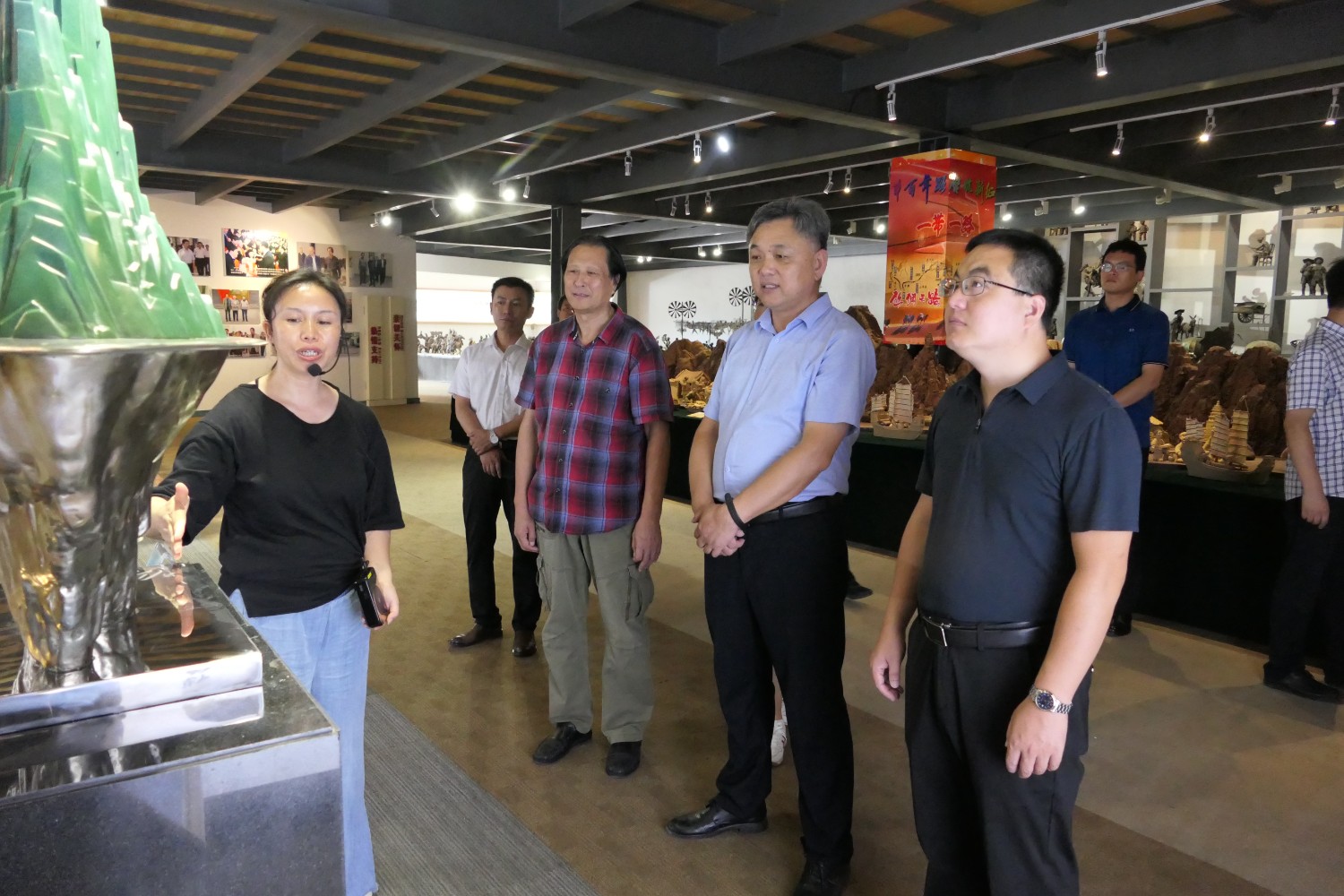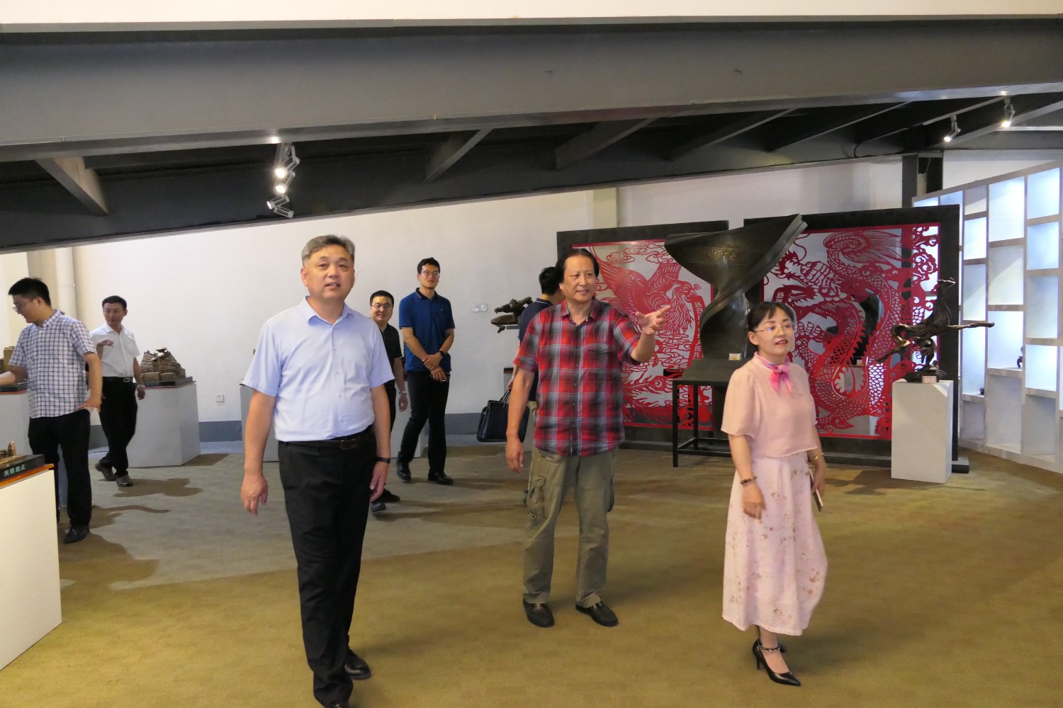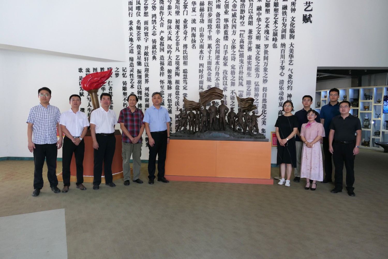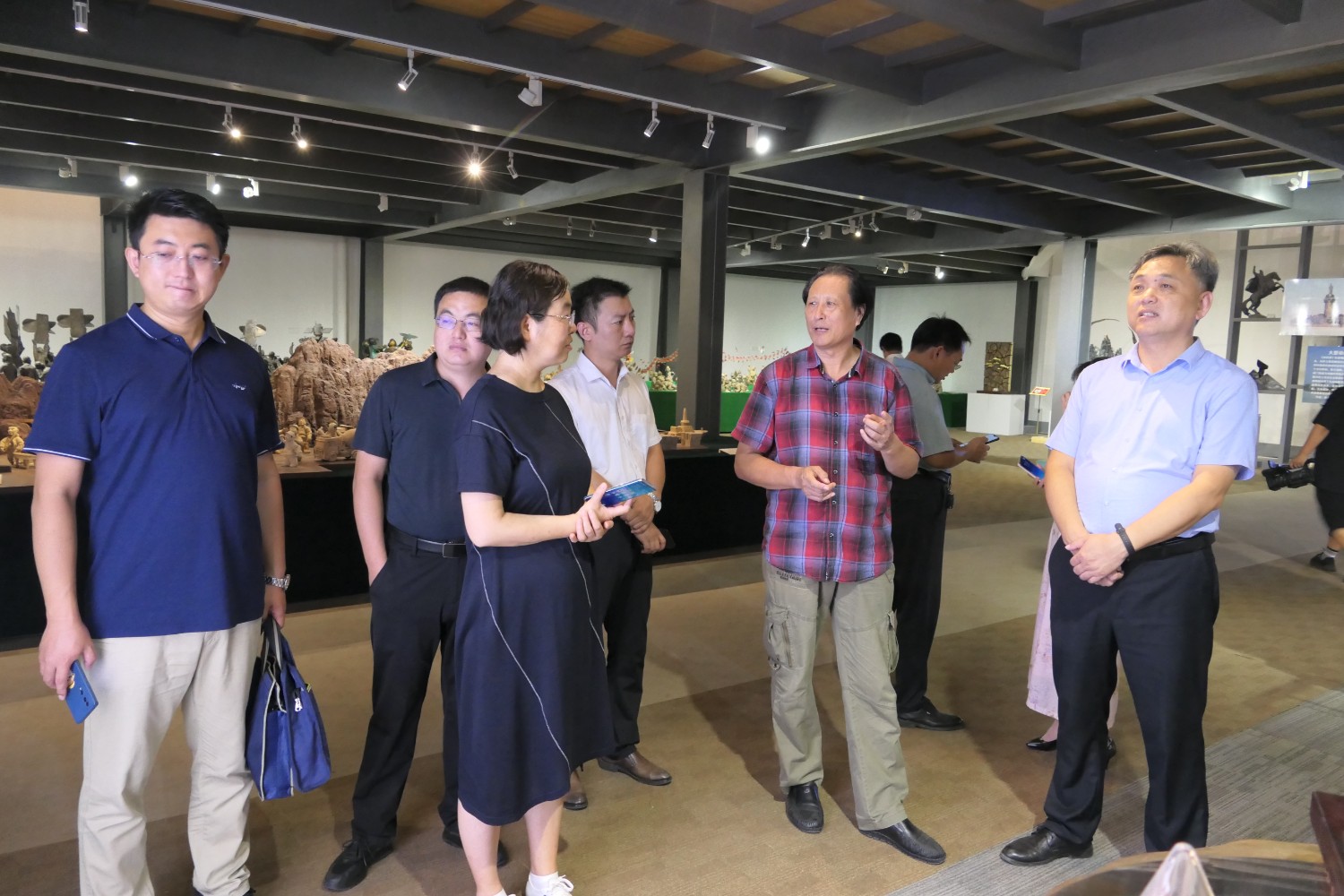 2023年8月17日,潍坊市文联副主席邱兆峰,临朐县文联、社科联主席侯秋玲陪同聊城市委宣传部副部长薛兆立一行,莅临华艺安博买球参观指导。