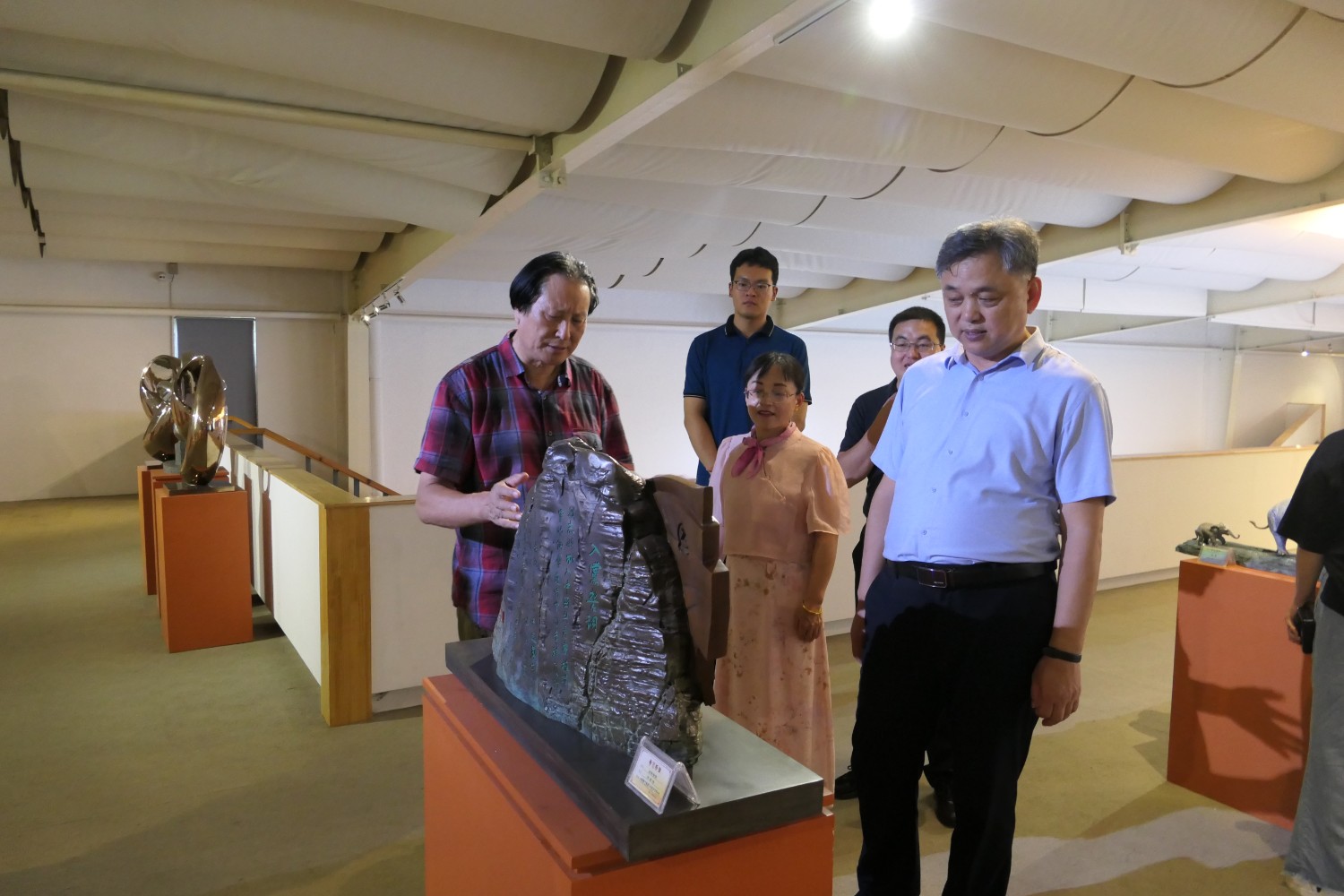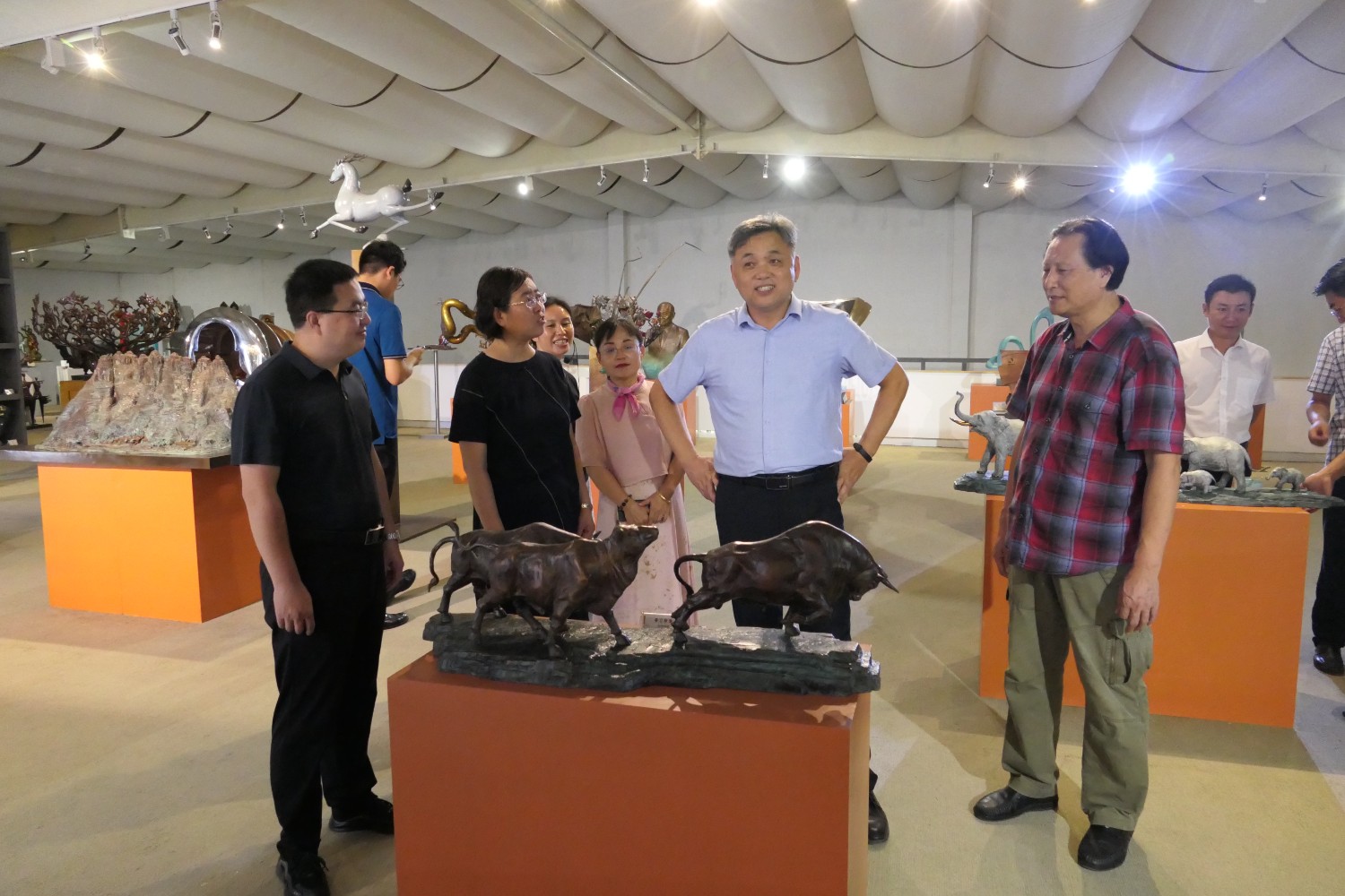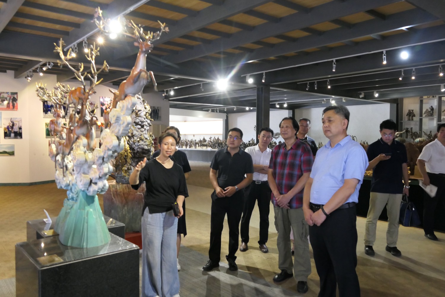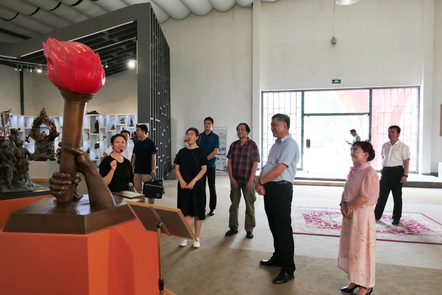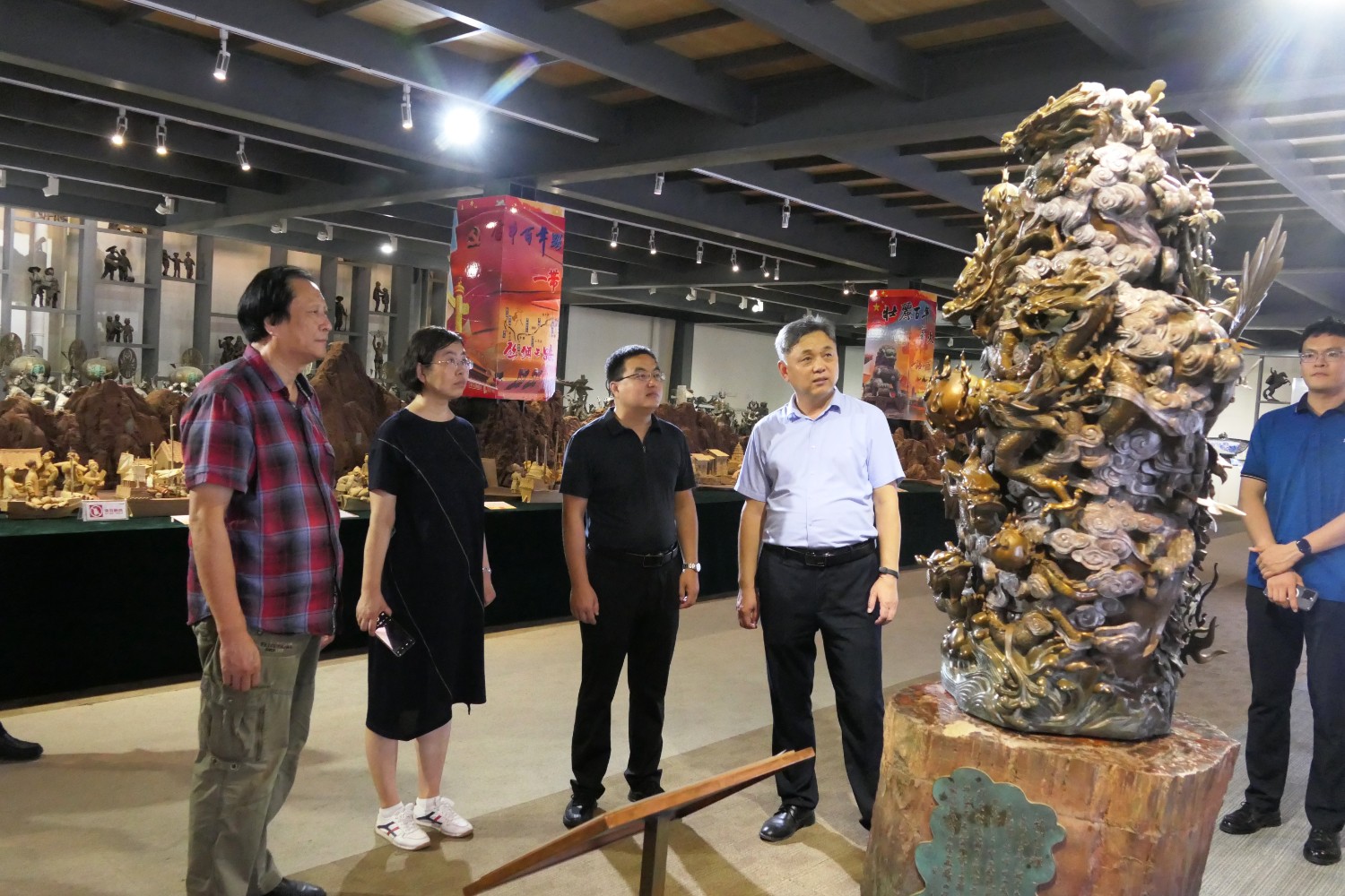 2023年8月17日,潍坊市文联副主席邱兆峰,临朐县文联、社科联主席侯秋玲陪同聊城市委宣传部副部长薛兆立一行,莅临华艺安博买球参观指导。