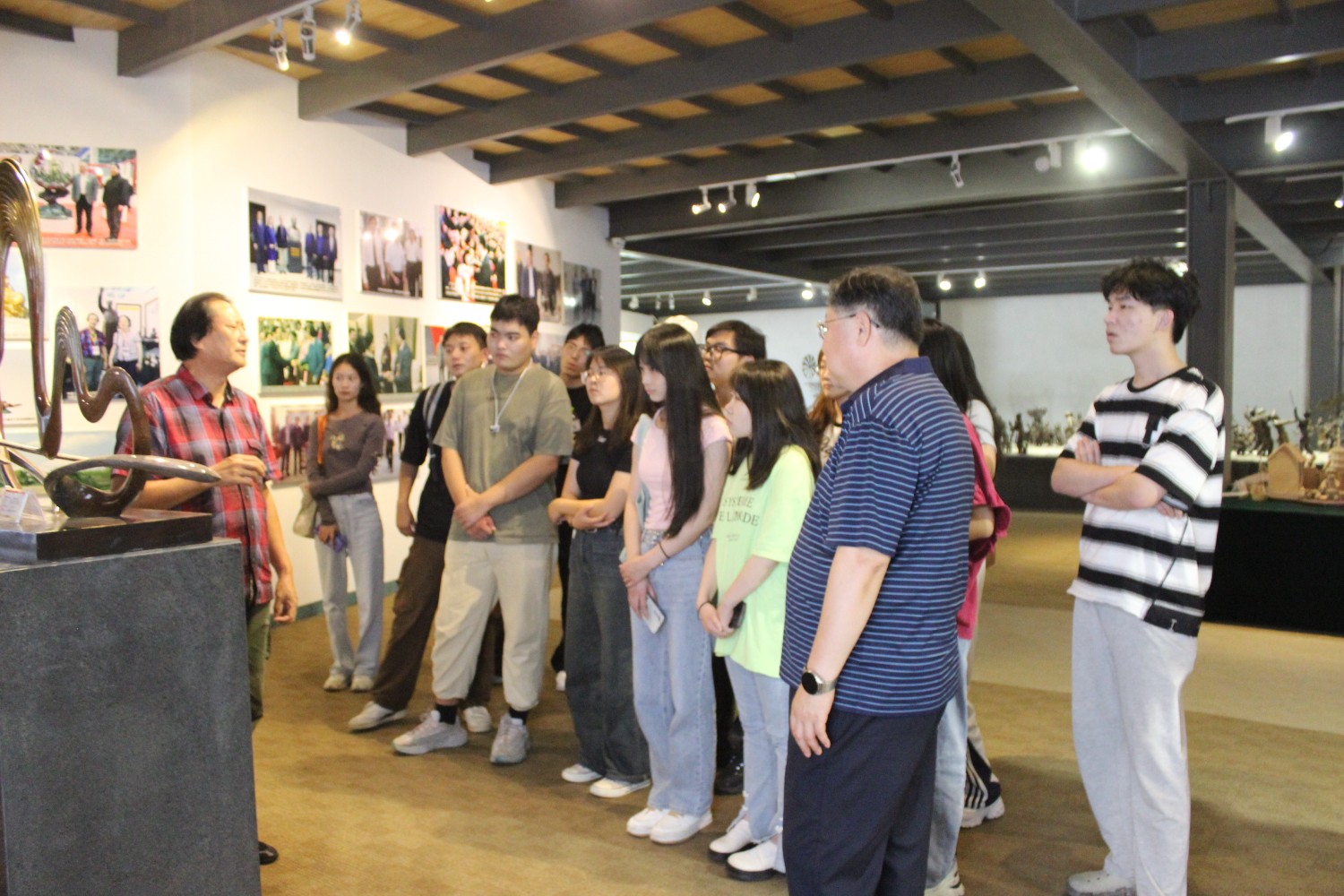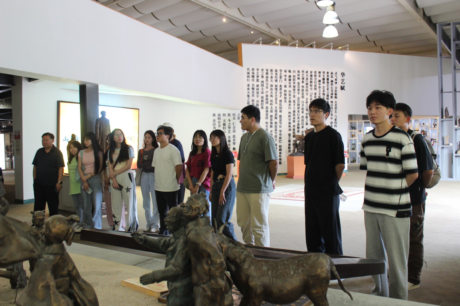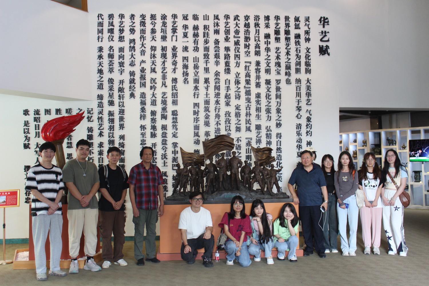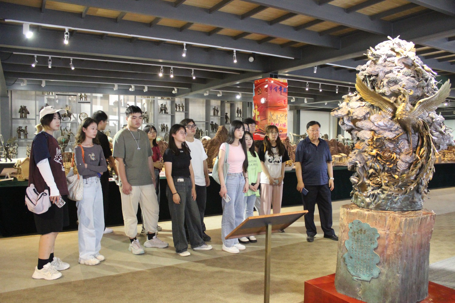 2023年9月13日,山东艺术学院教授、硕士研究生导师、工艺美术学主任郑军先生带领13位学生,莅临华艺安博买球参观学习,中国工美艺术大师、华艺安博买球董事长傅绍相先生介绍安博买球艺术,并与郑军教授和同学们合影留念。