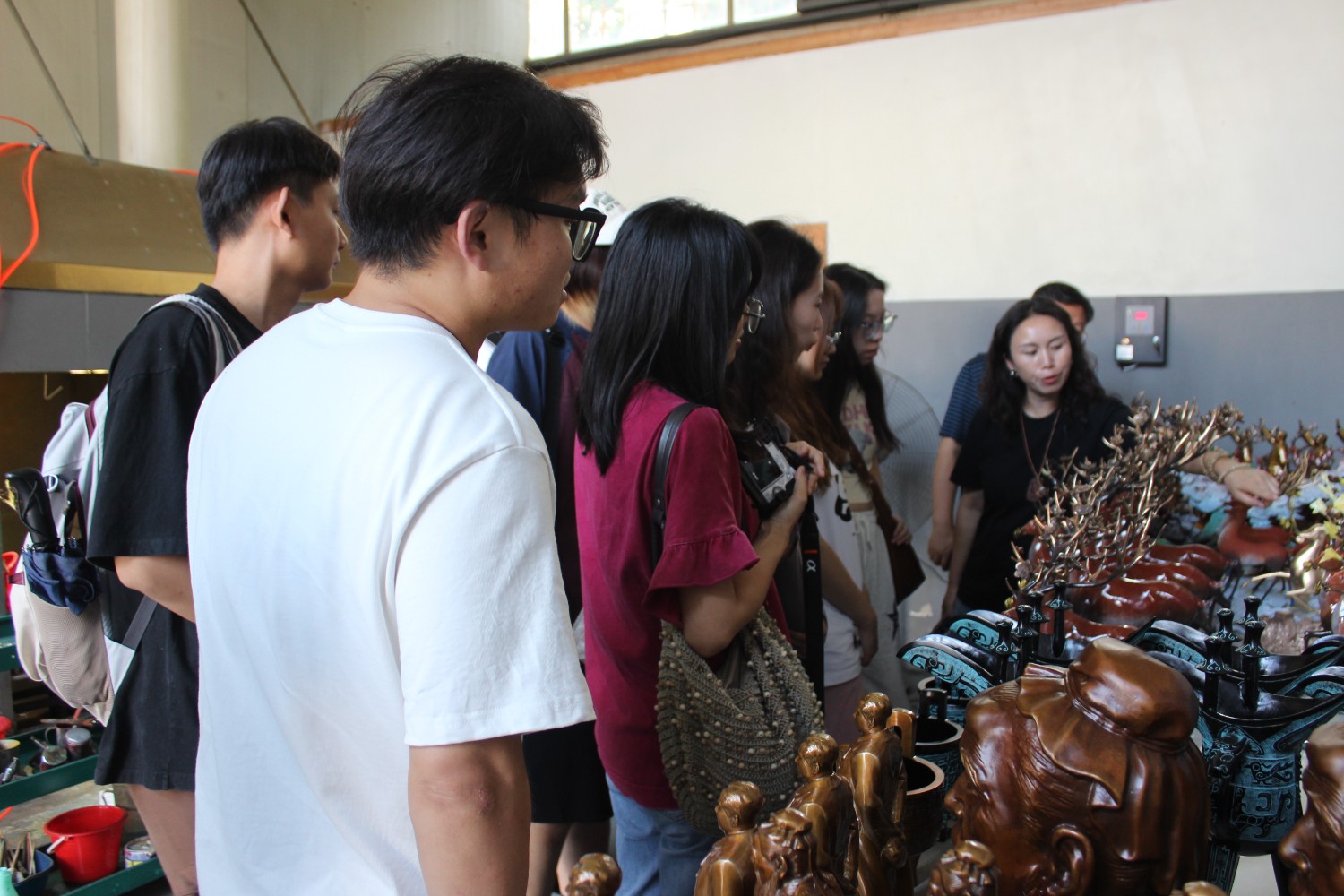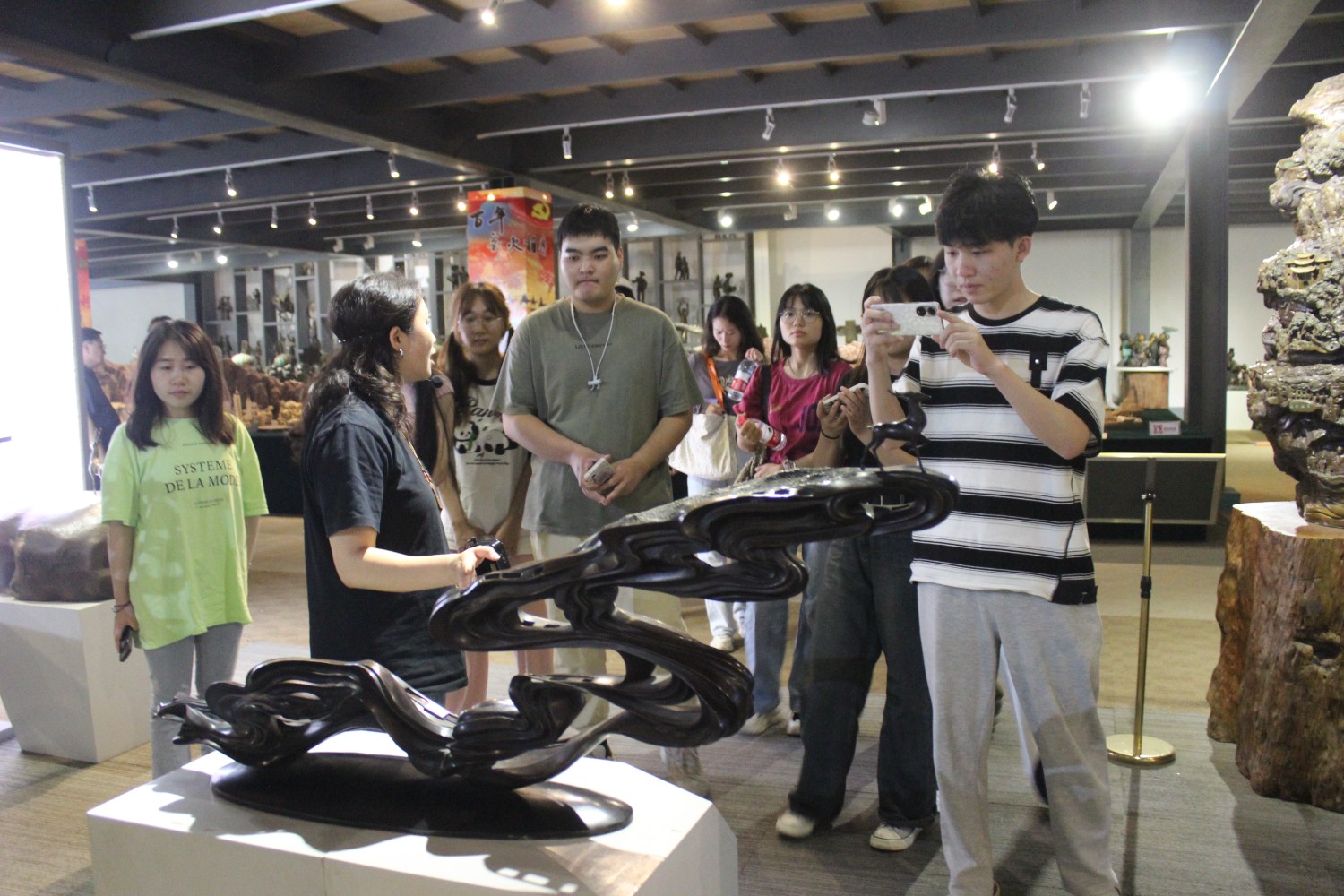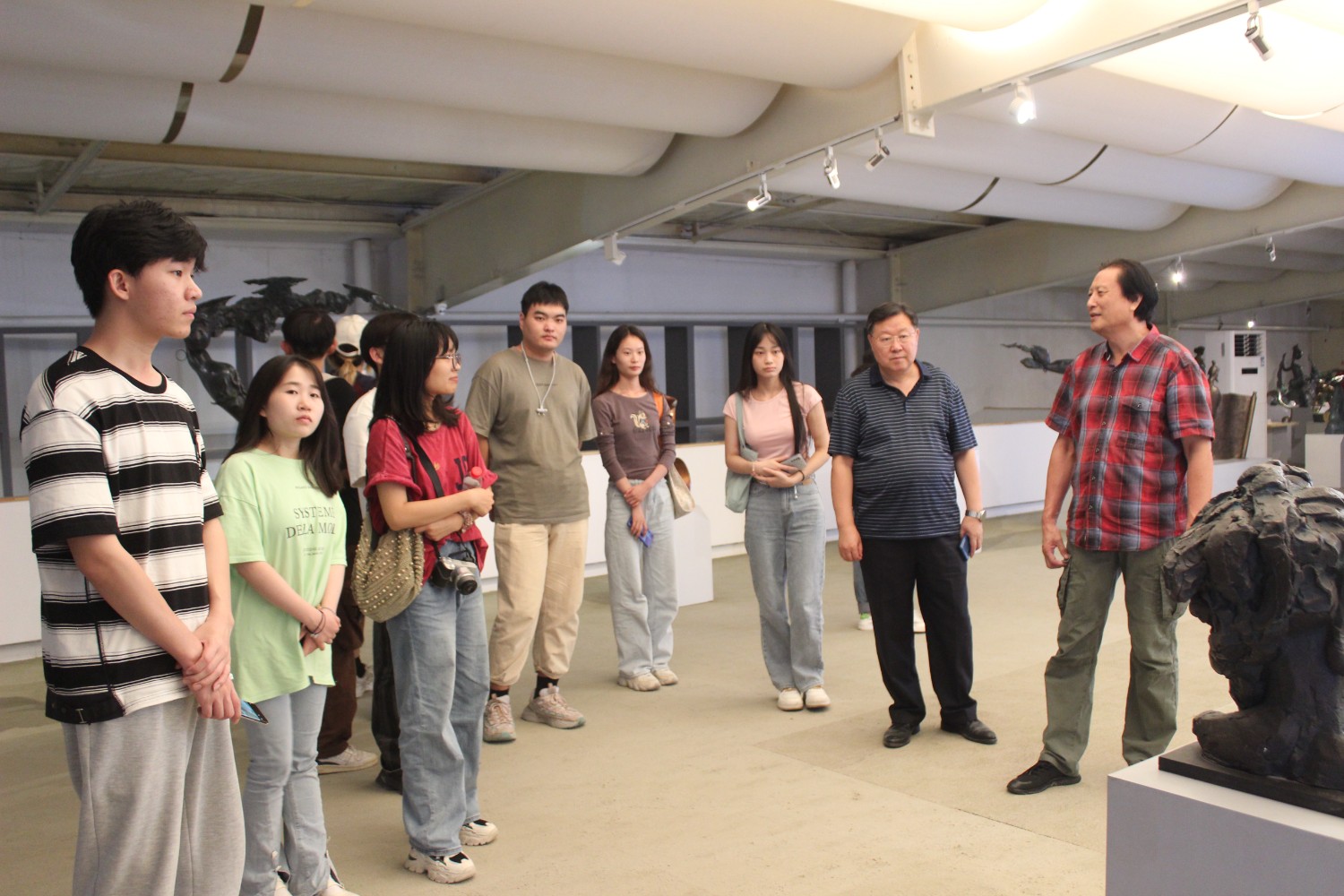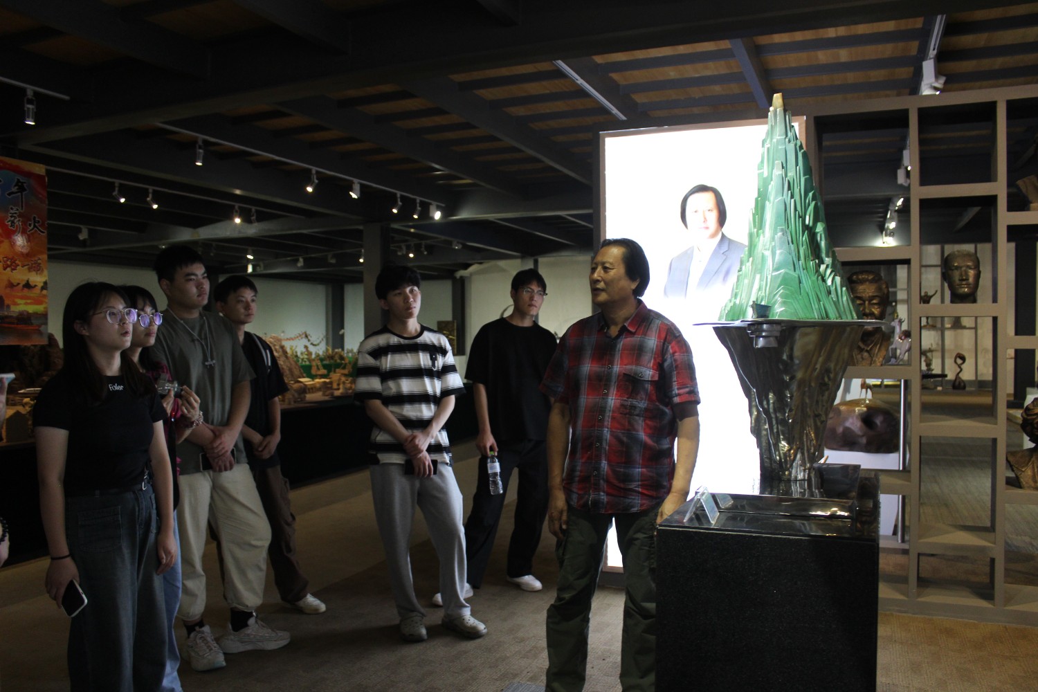 2023年9月13日,山东艺术学院教授、硕士研究生导师、工艺美术学主任郑军先生带领13位学生,莅临华艺安博买球参观学习,中国工美艺术大师、华艺安博买球董事长傅绍相先生介绍安博买球艺术,并与郑军教授和同学们合影留念。