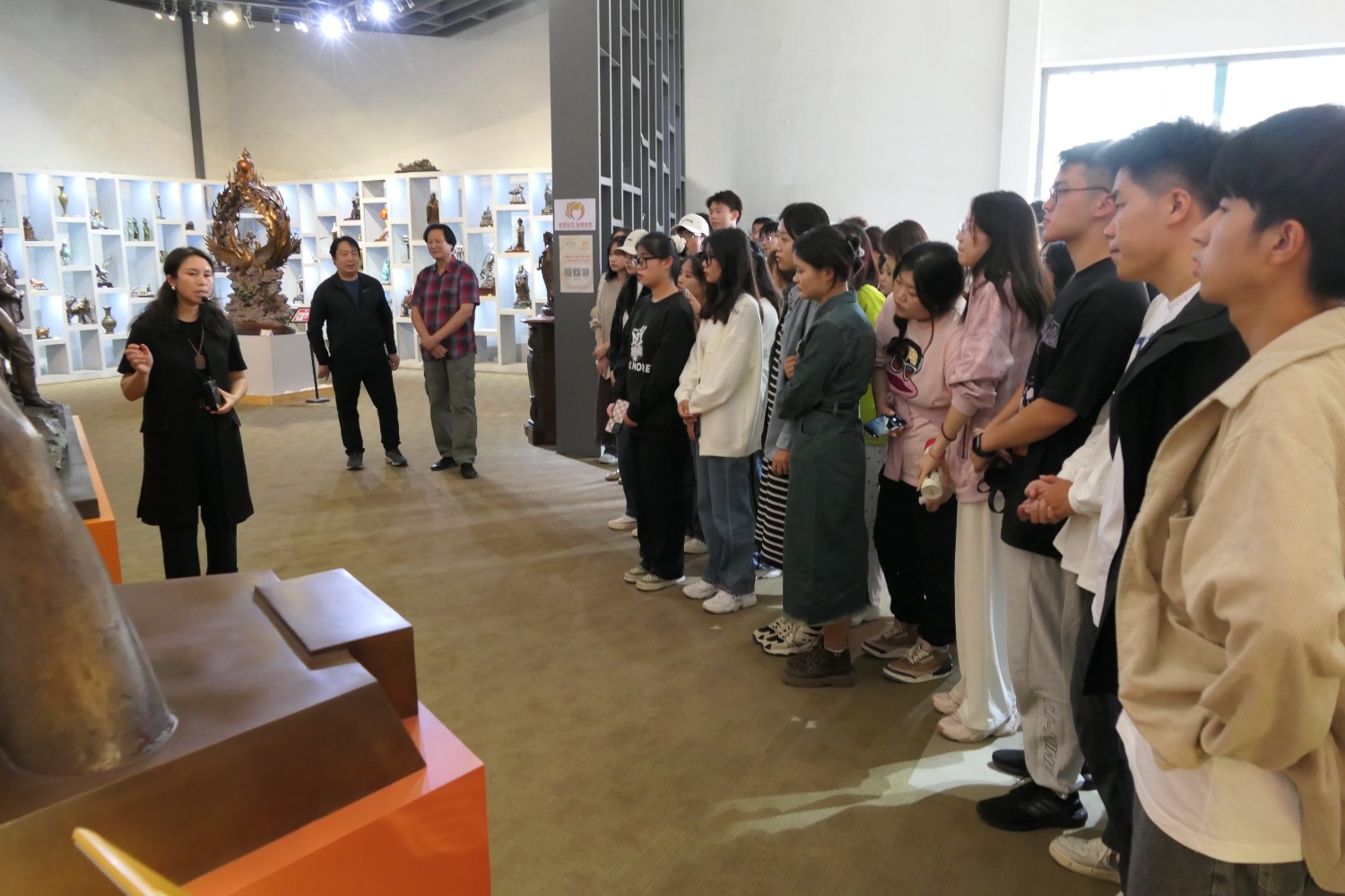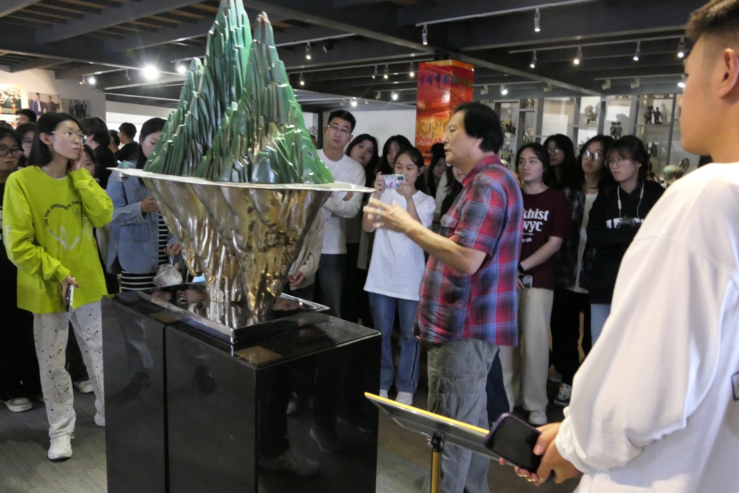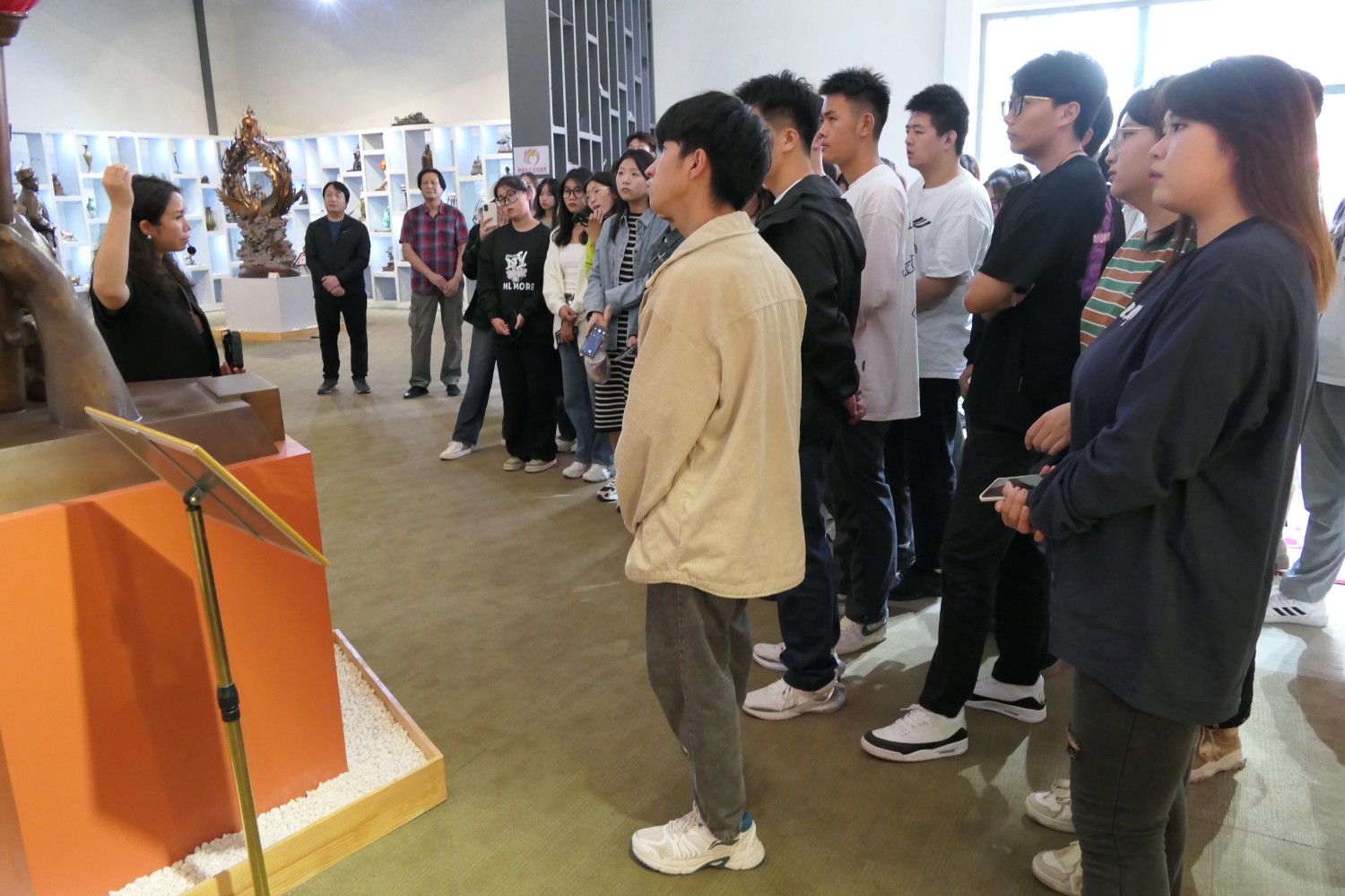 2023年9月26 日,山东大学艺术学院景观设计教研室党支部书记、副主任赵学强副教授带领大三学生60余名,莅临华艺安博买球参观学习,中国工艺美术大师傅绍相向同学们介绍安博买球艺术并与师生合影留念。