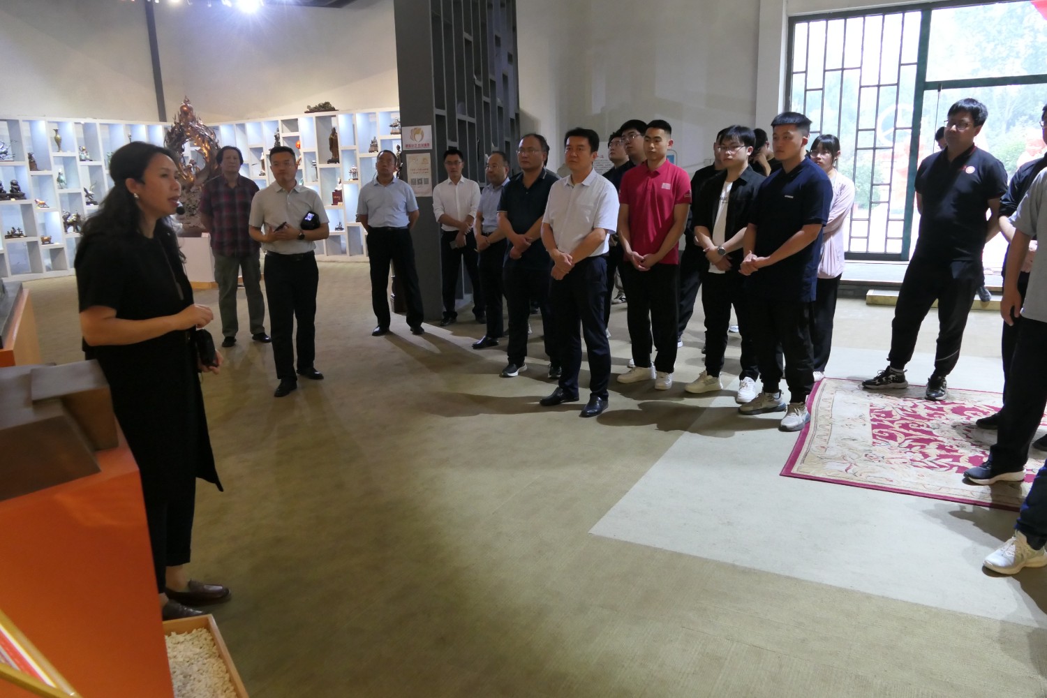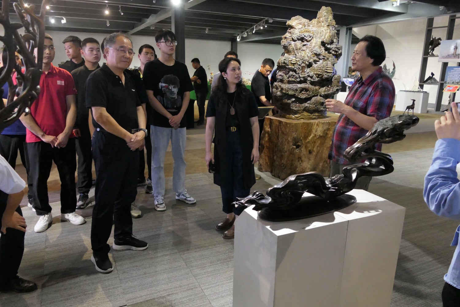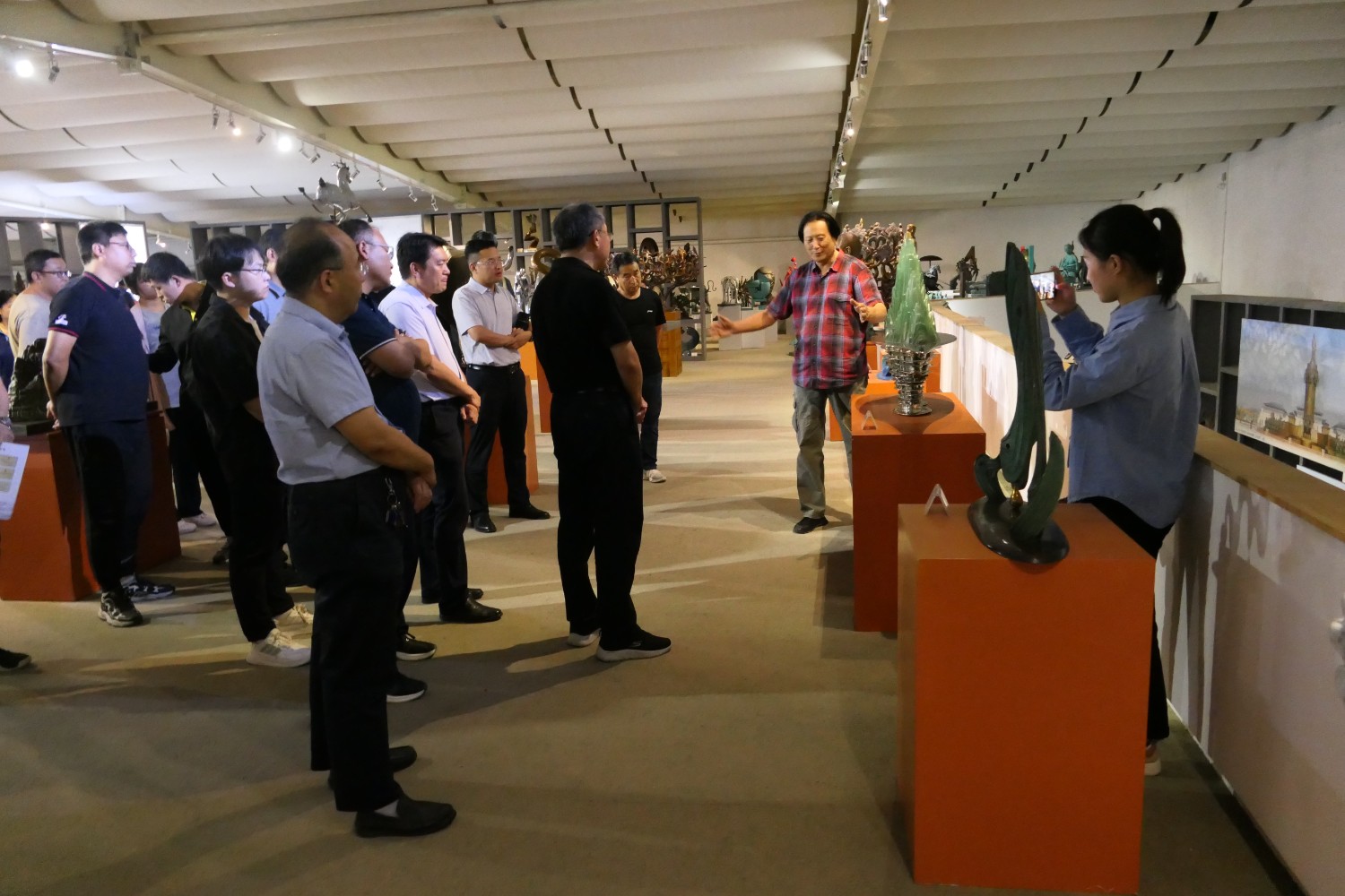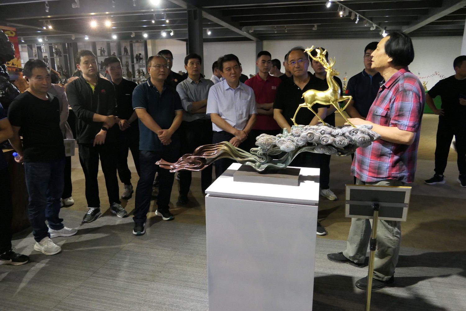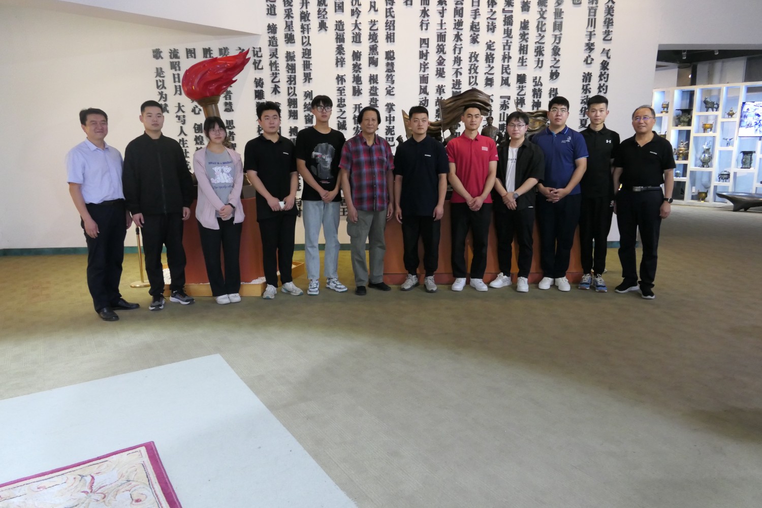 2023年9月26日,山东工业技师学院党委书记孙科顺 、 副院长董振涛一行,带领40余名学生莅临华艺安博买球参观学习,中国工美艺术大师、华艺董事长傅绍相介绍安博买球艺术,并与孙科顺书记和技工能手合影留念。