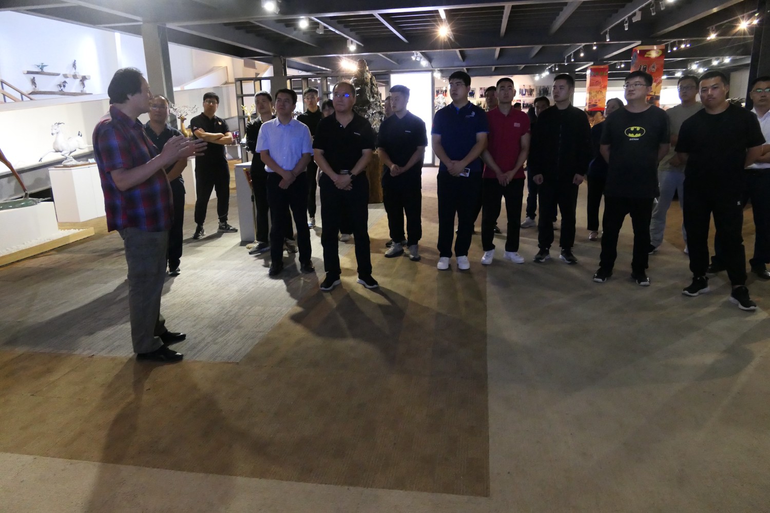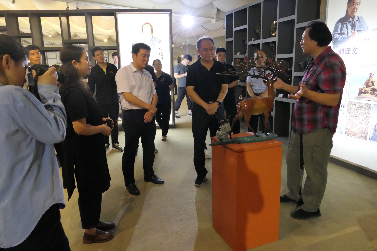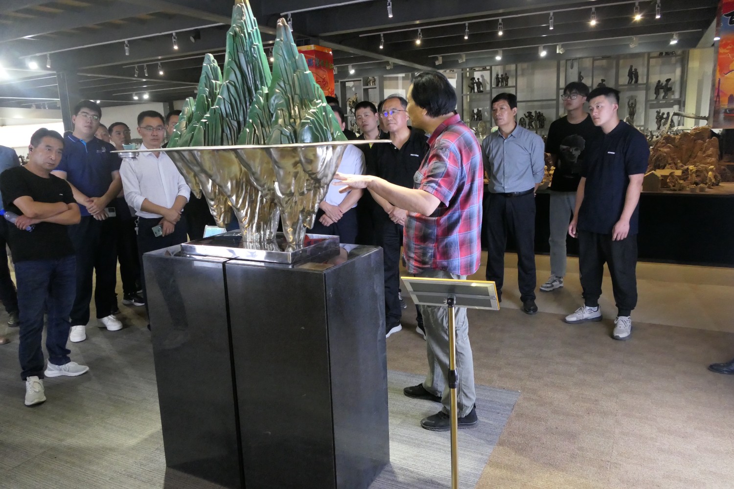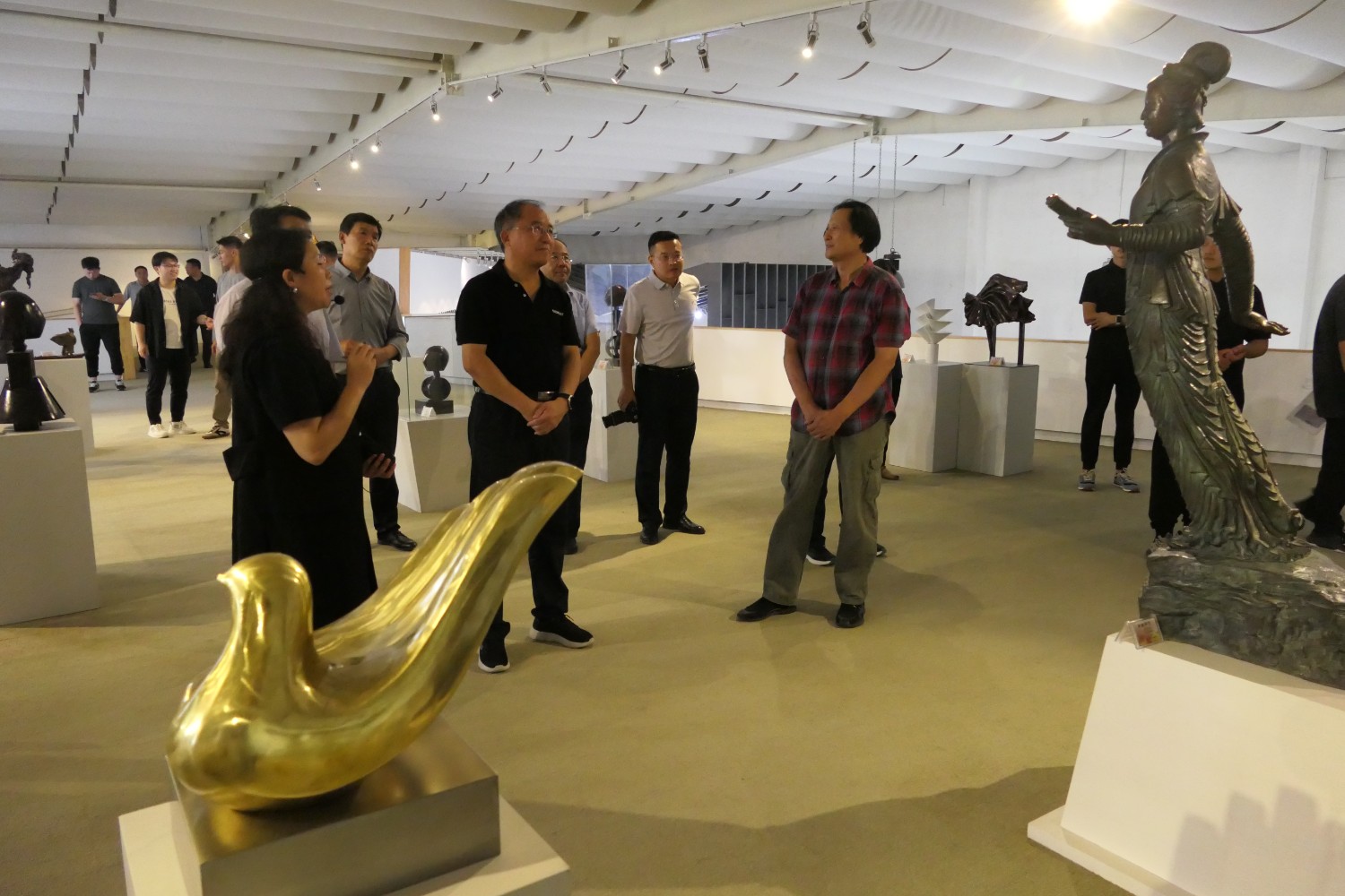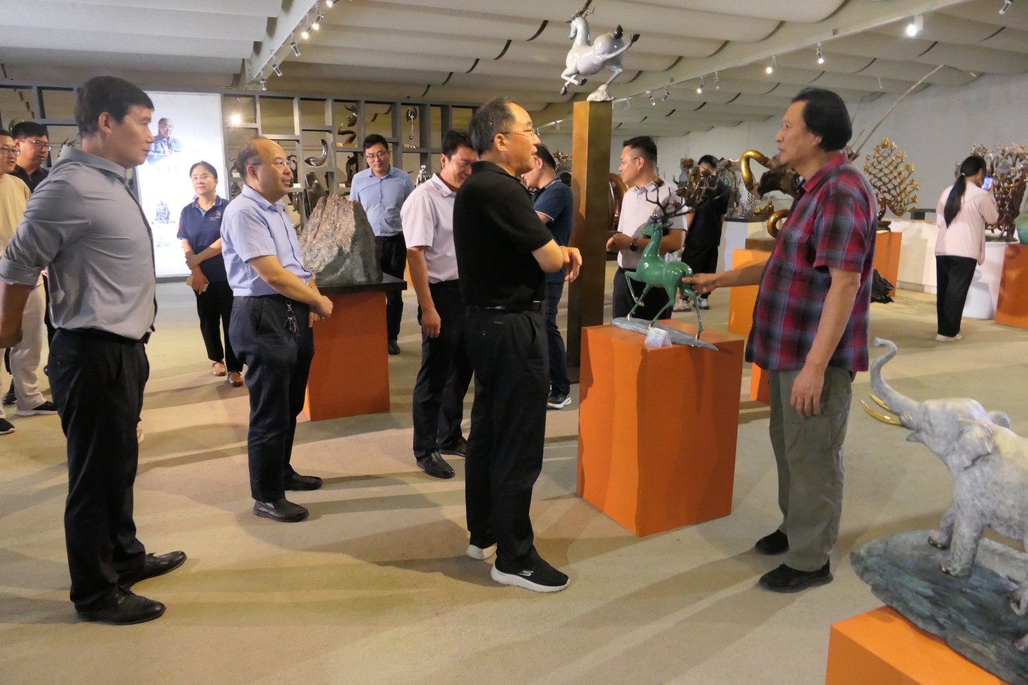 2023年9月26日,山东工业技师学院党委书记孙科顺 、 副院长董振涛一行,带领40余名学生莅临华艺安博买球参观学习,中国工美艺术大师、华艺董事长傅绍相介绍安博买球艺术,并与孙科顺书记和技工能手合影留念。