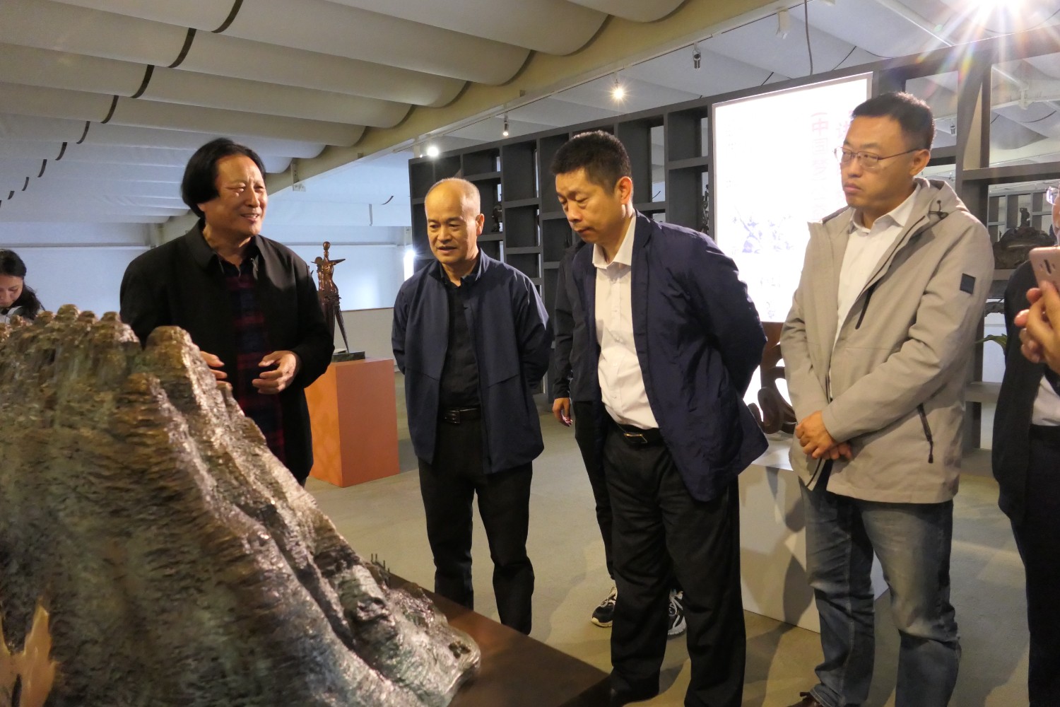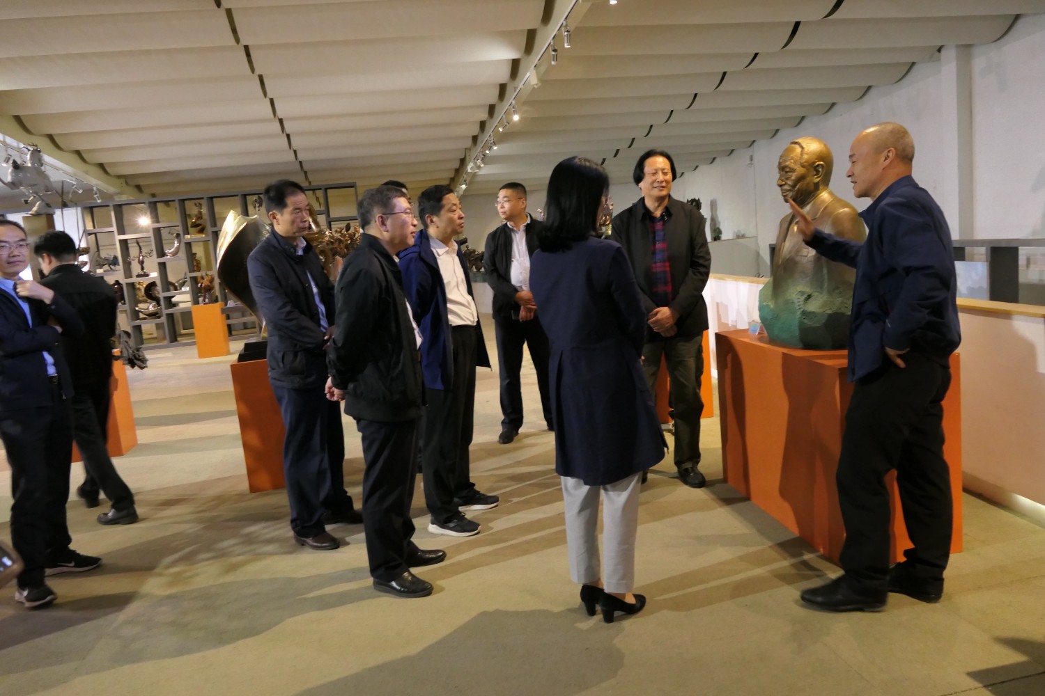 2023年10月20日,原临朐县挂职副书记、山东省统计局财务处长张中华一行,莅临华艺安博买球参观指导,国大师傅绍相向来宾介绍安博买球艺术。
