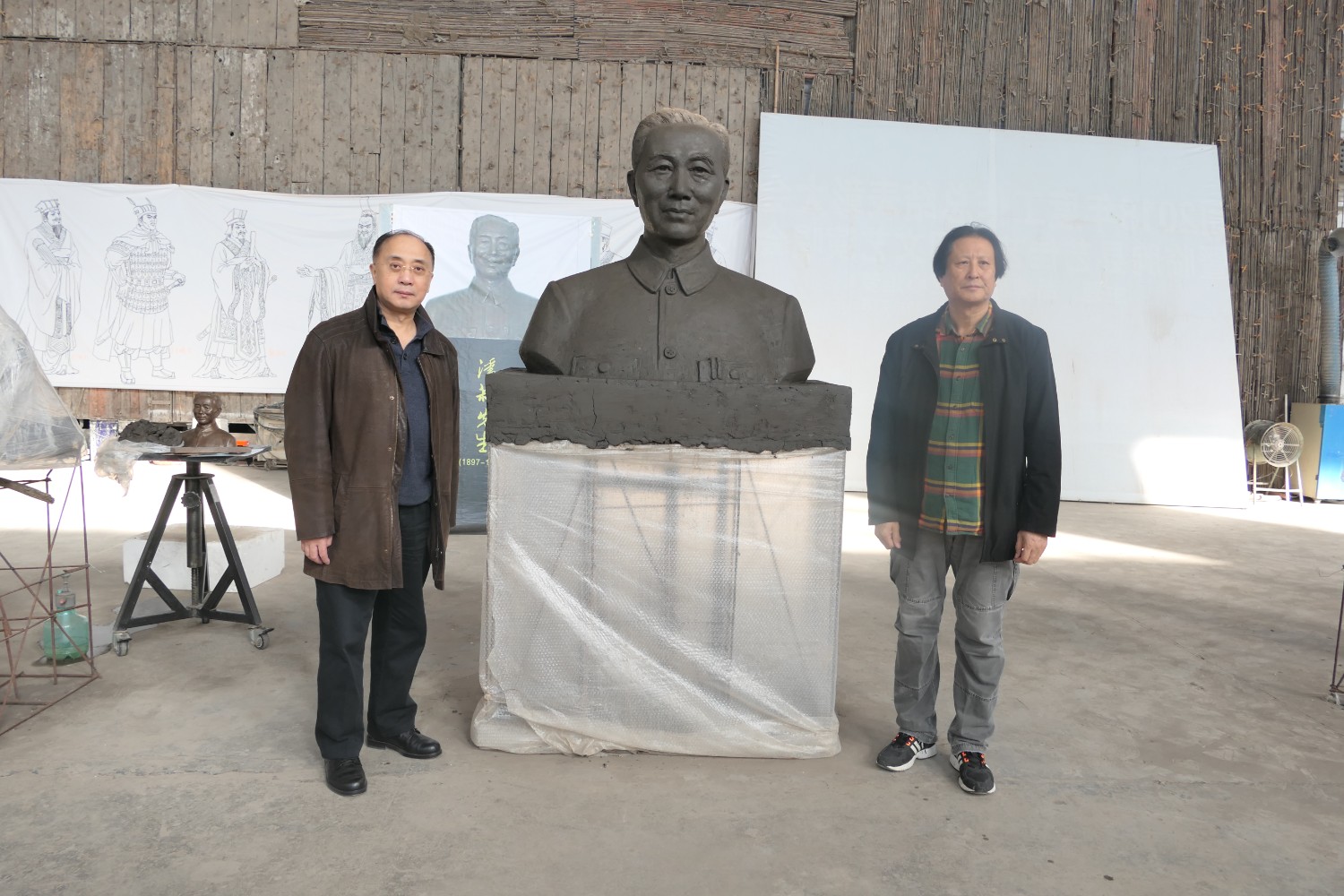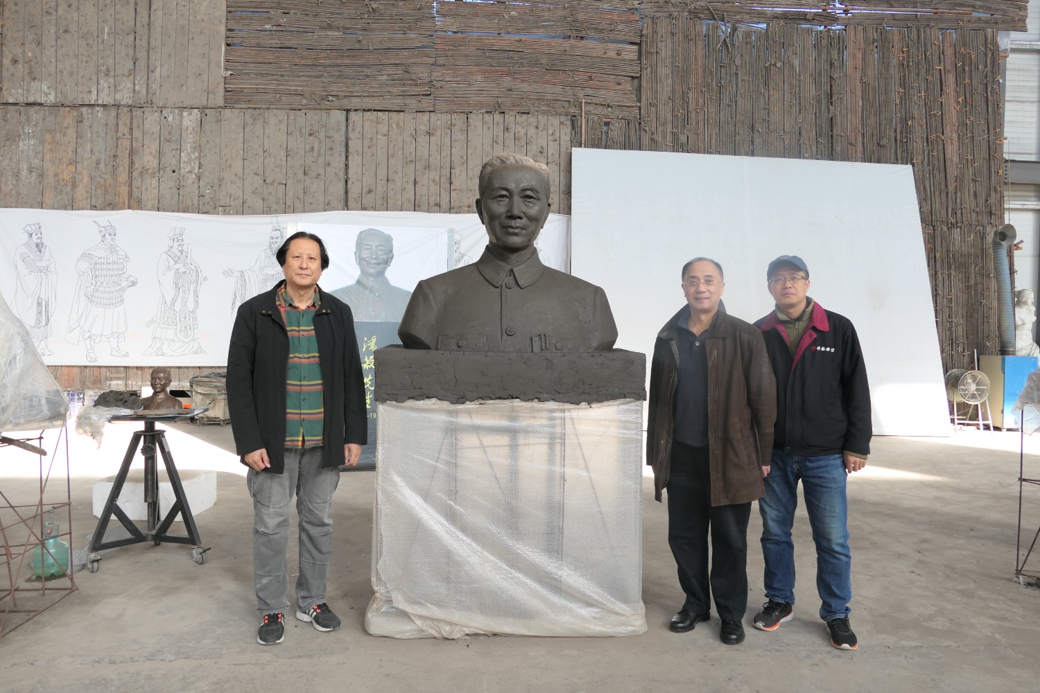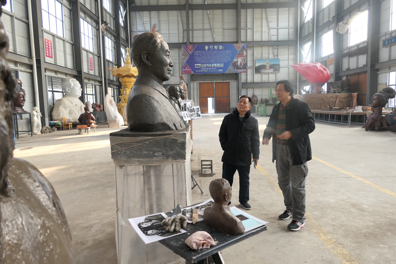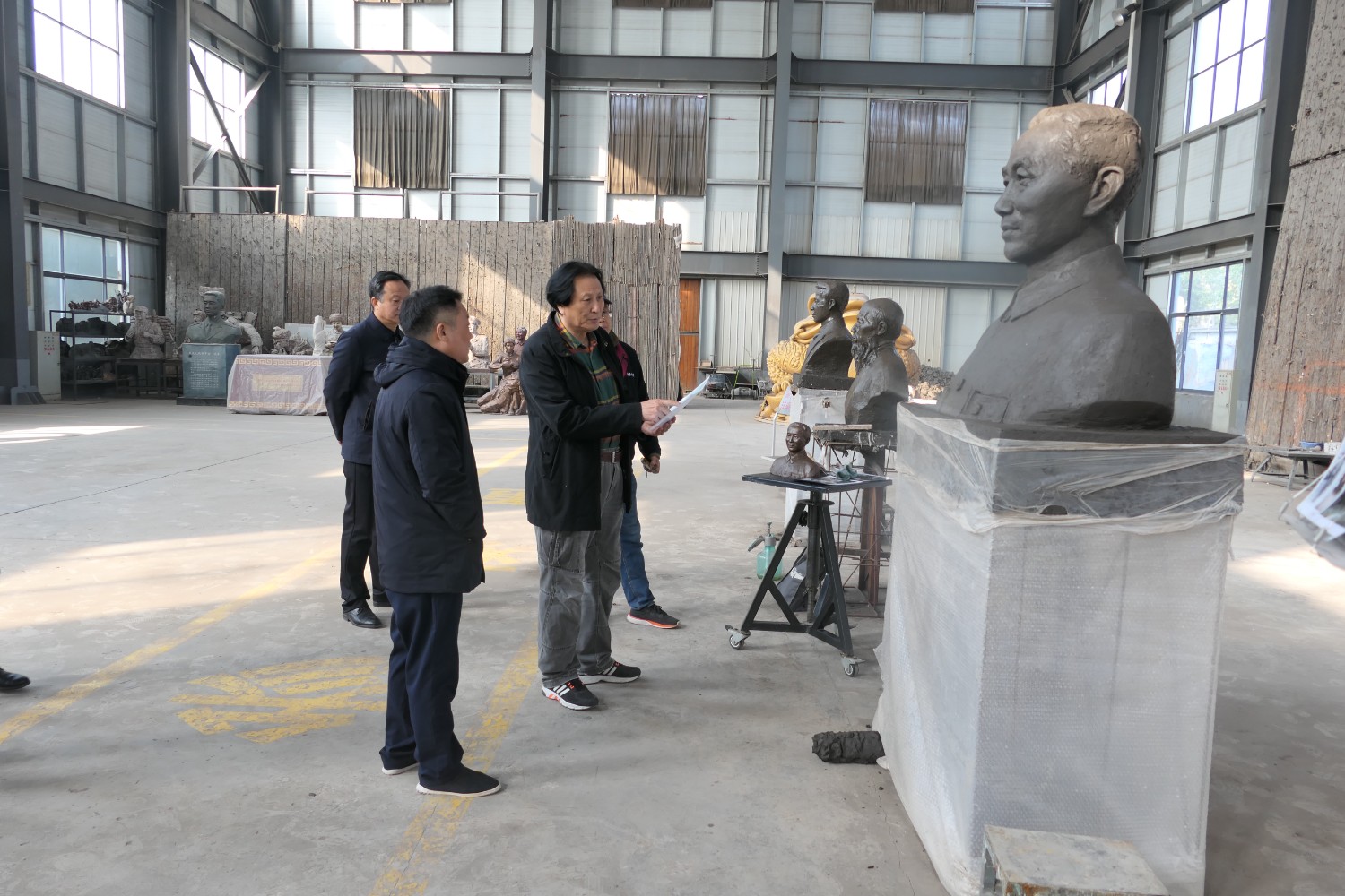 2021年11月16日,中国科学院心理研究所教授、文化与价值研究中心主任潘垚天博士,广州潮起澳江文化有限公司黄顺南董事长,莅临华艺指导验收潘菽雕像泥塑。潘菽安博买球由国大师傅绍相设计,傅总与两位嘉宾亲切交流安博买球艺术。