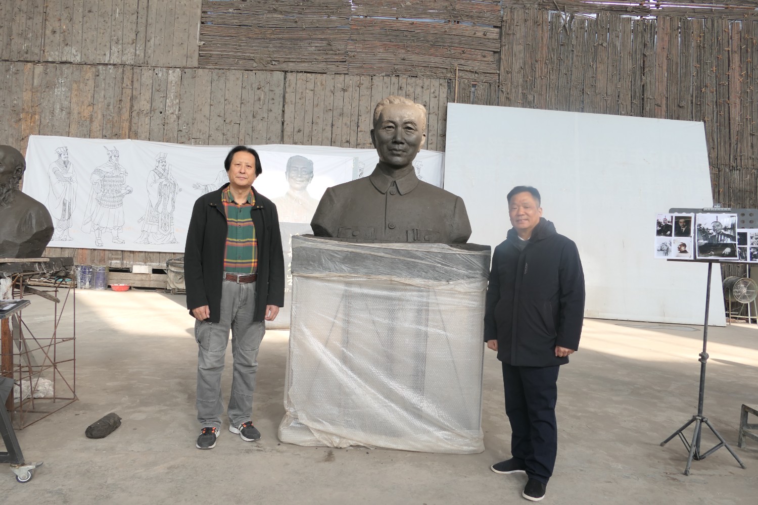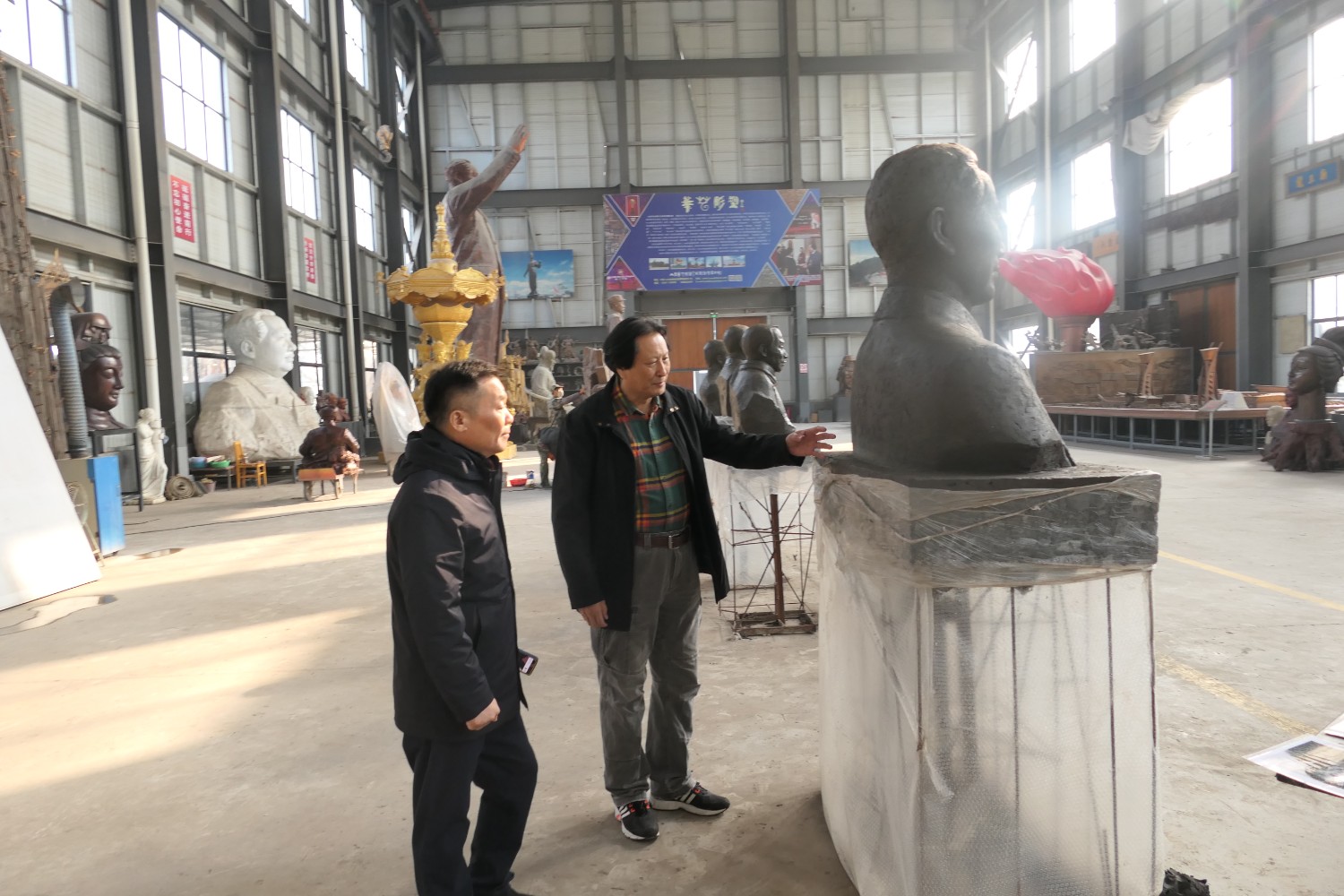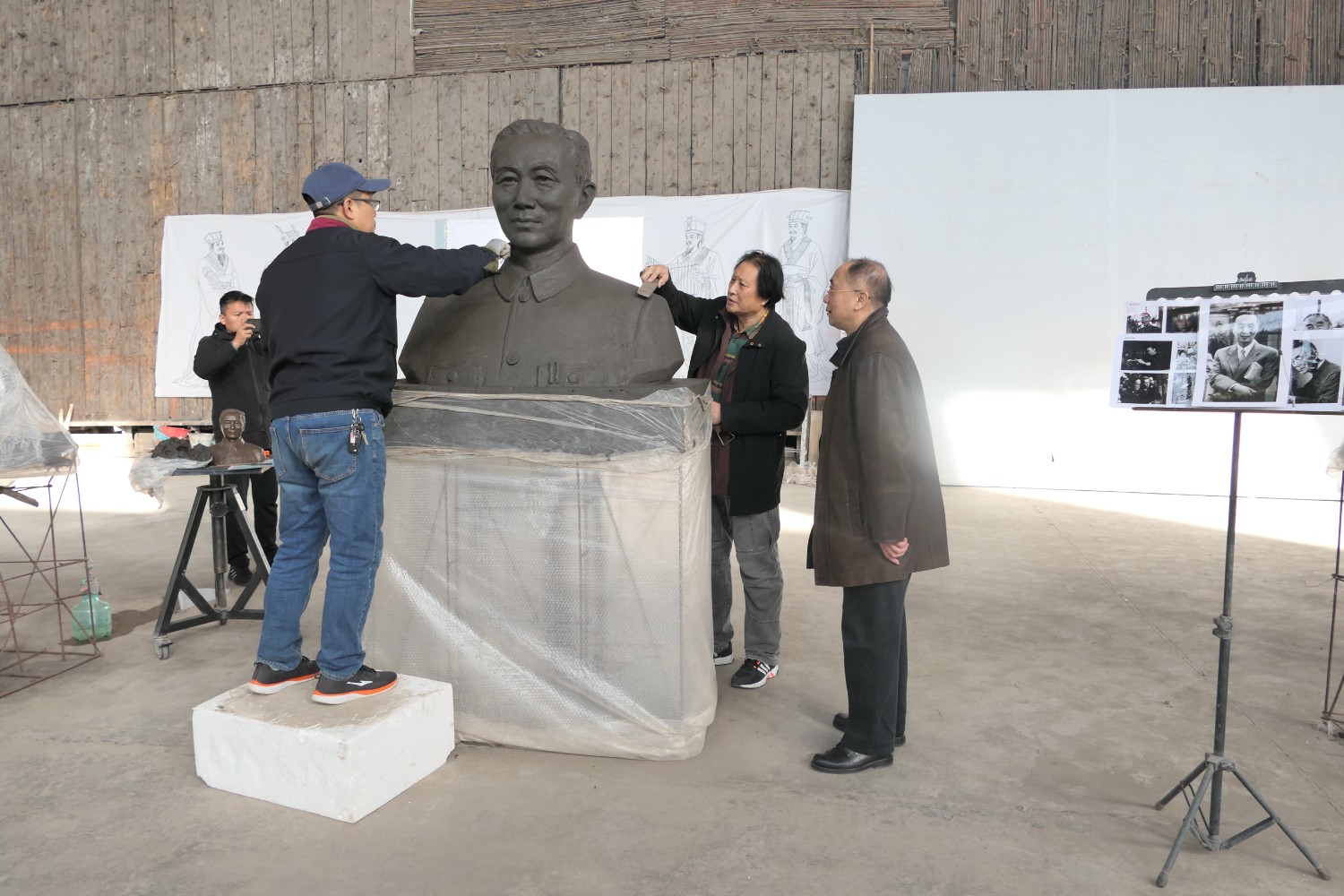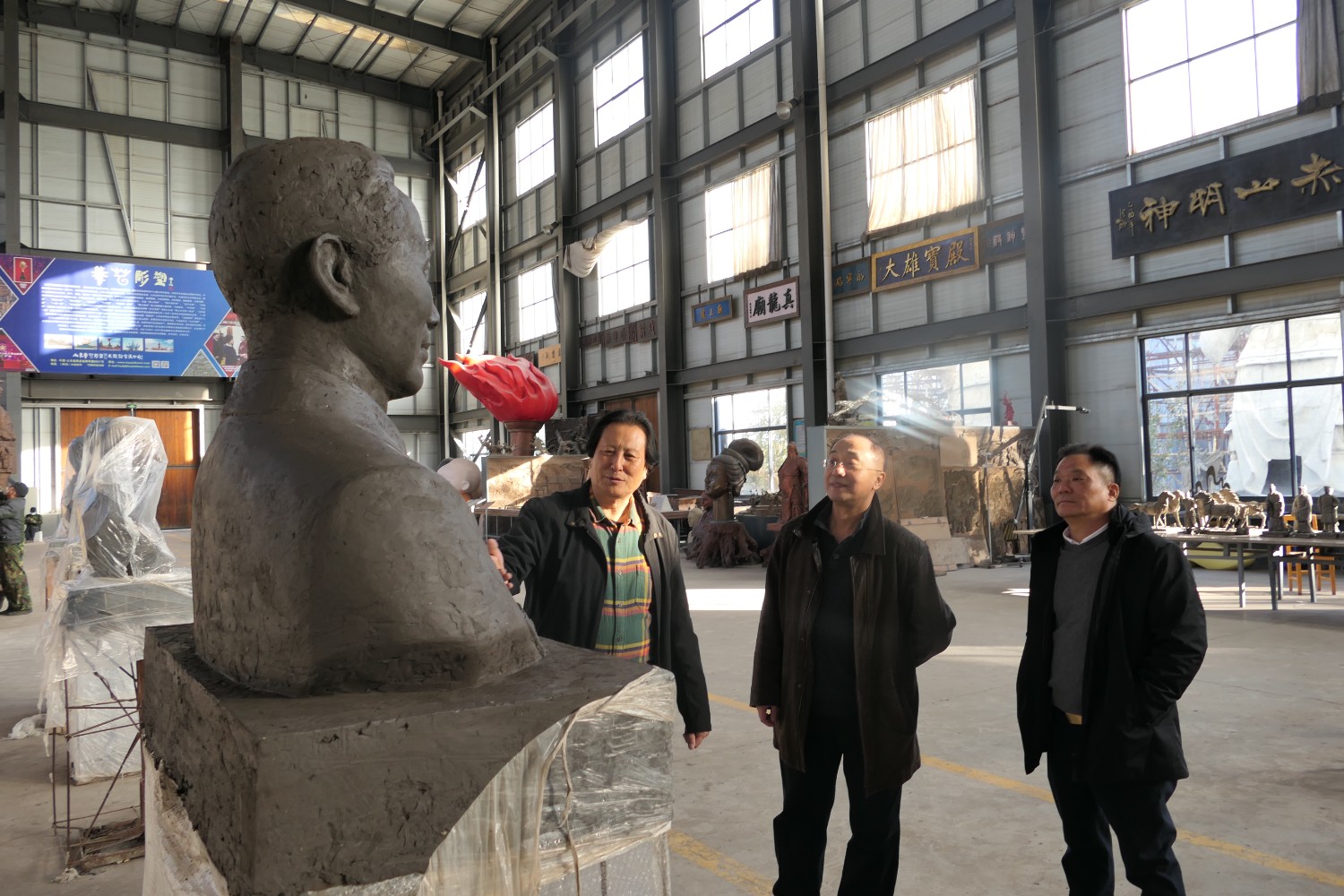 2021年11月16日,中国科学院心理研究所教授、文化与价值研究中心主任潘垚天博士,广州潮起澳江文化有限公司黄顺南董事长,莅临华艺指导验收潘菽雕像泥塑。潘菽安博买球由国大师傅绍相设计,傅总与两位嘉宾亲切交流安博买球艺术。