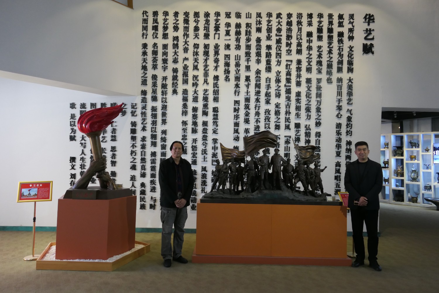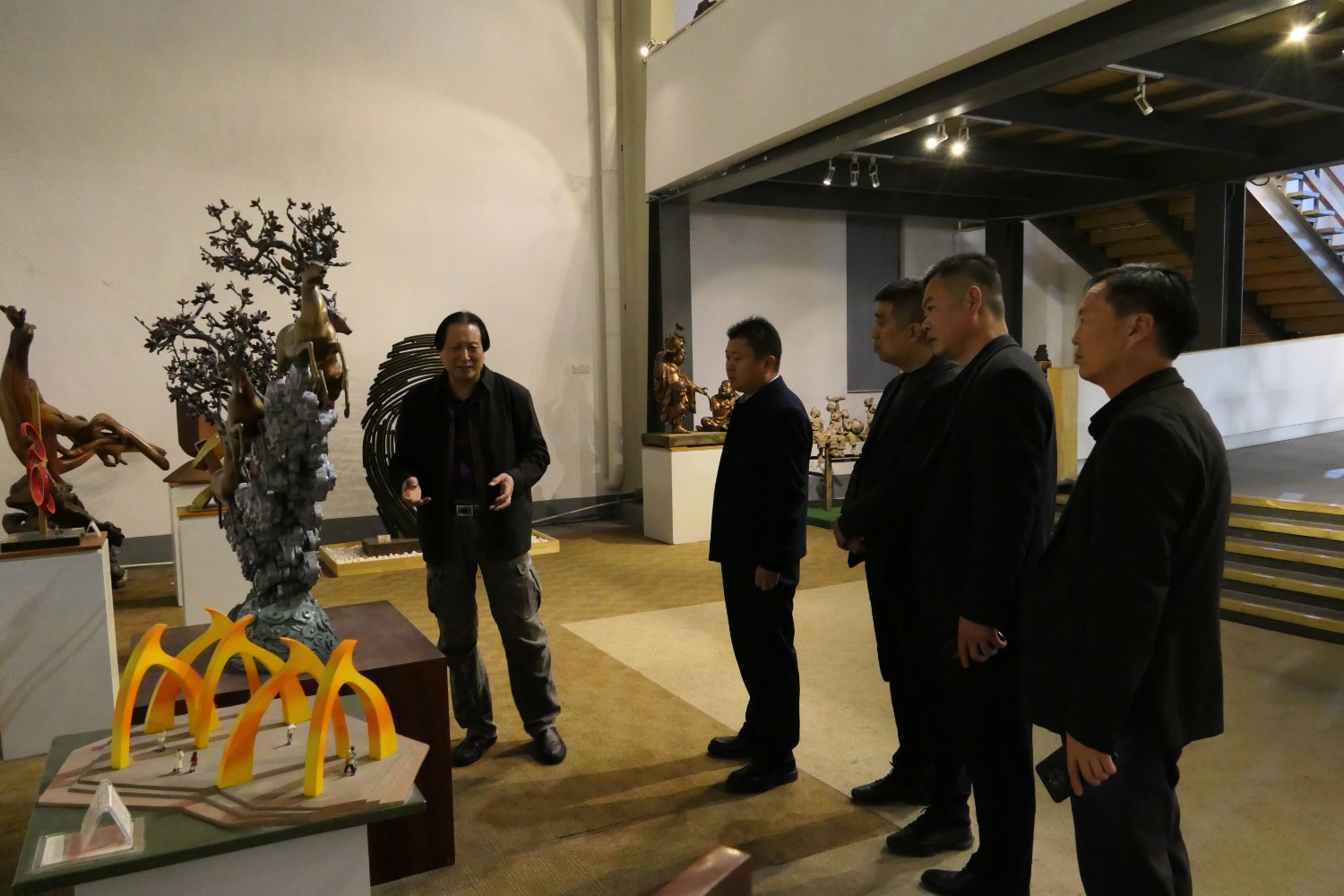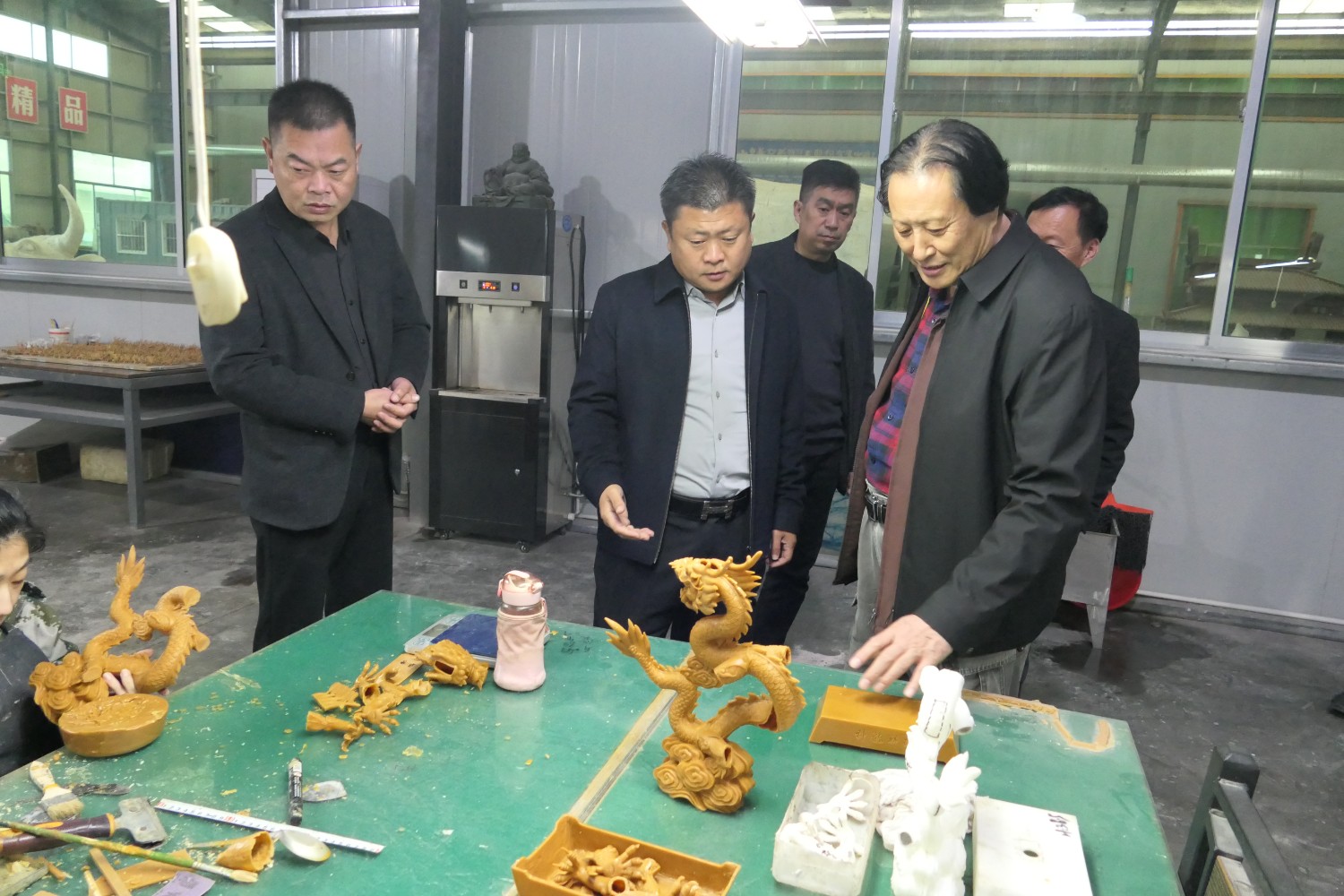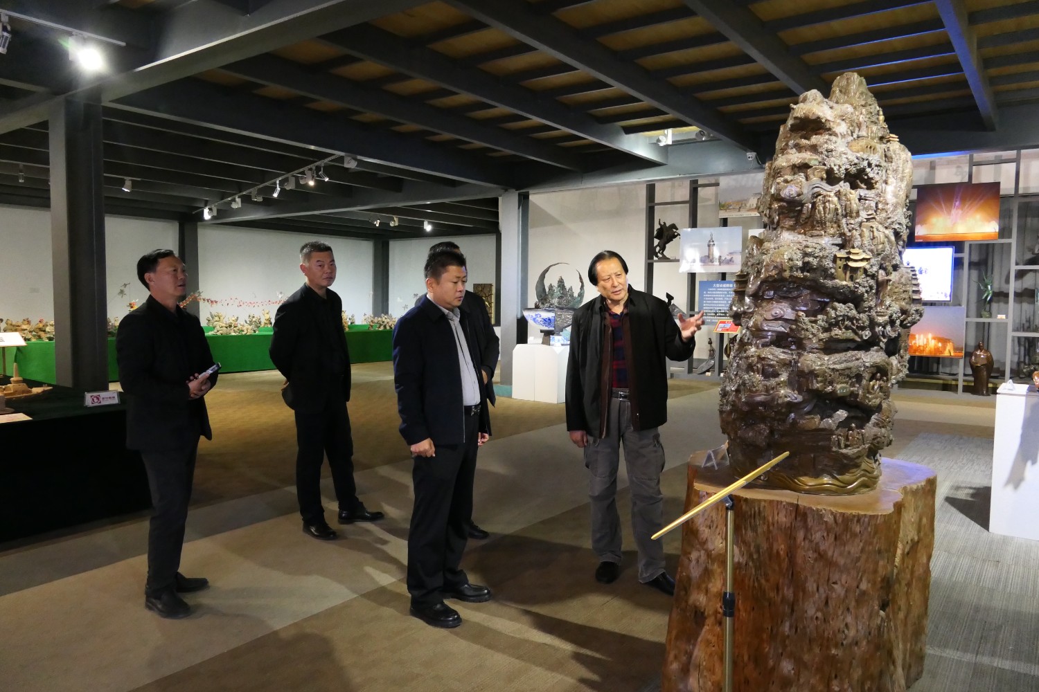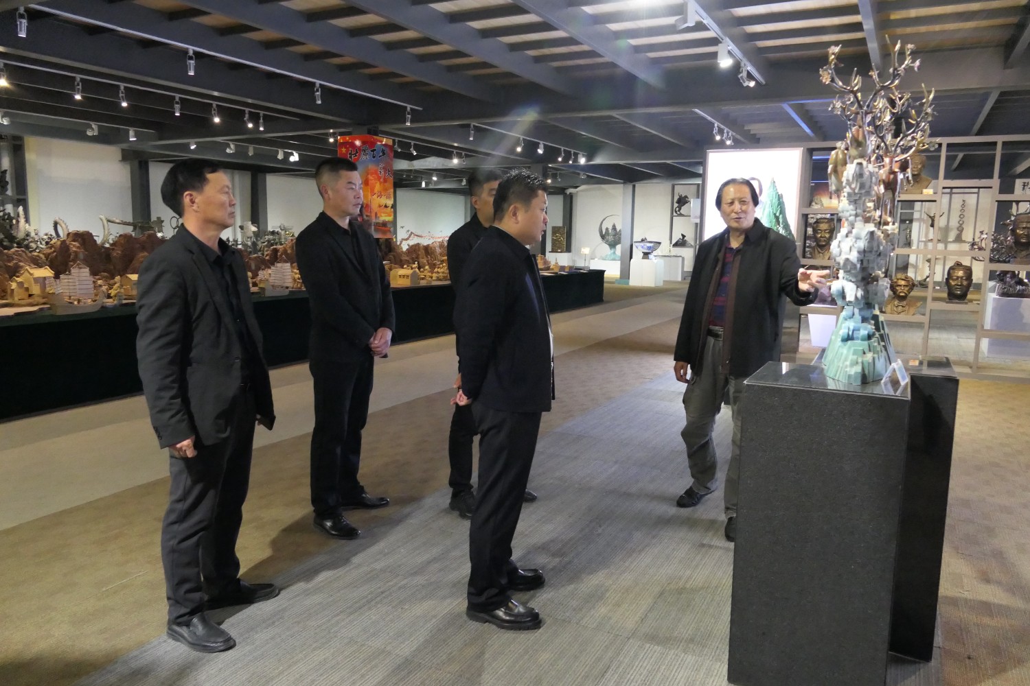 2023年11月22日,山东江正食品有限公司李红飞董事长,菏泽市匠工木雕文化有限公司董事长李彦锋一行,莅临华艺安博买球参观指导,国大师傅绍相介绍安博买球艺术并与嘉宾进行了友好的合作交流。