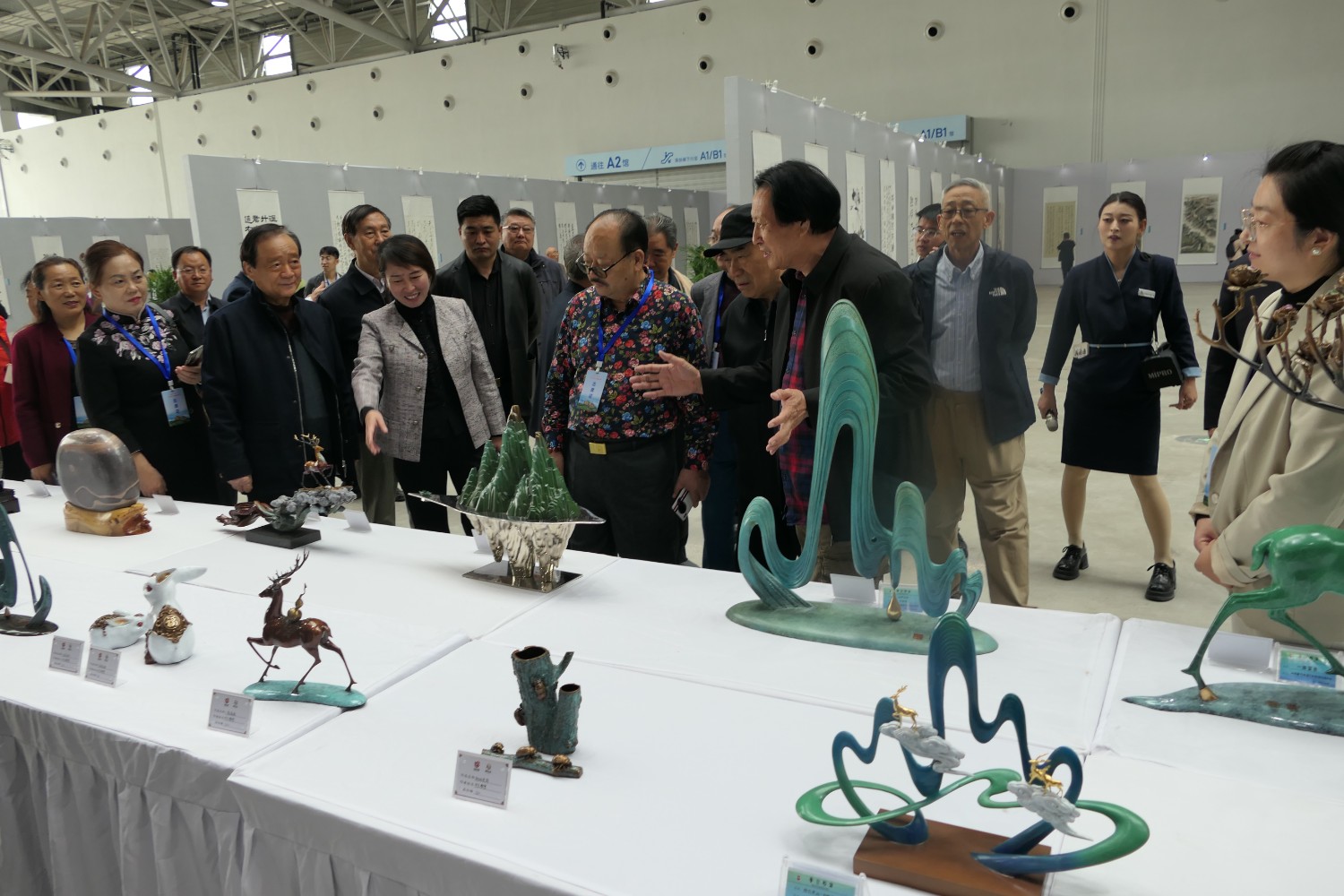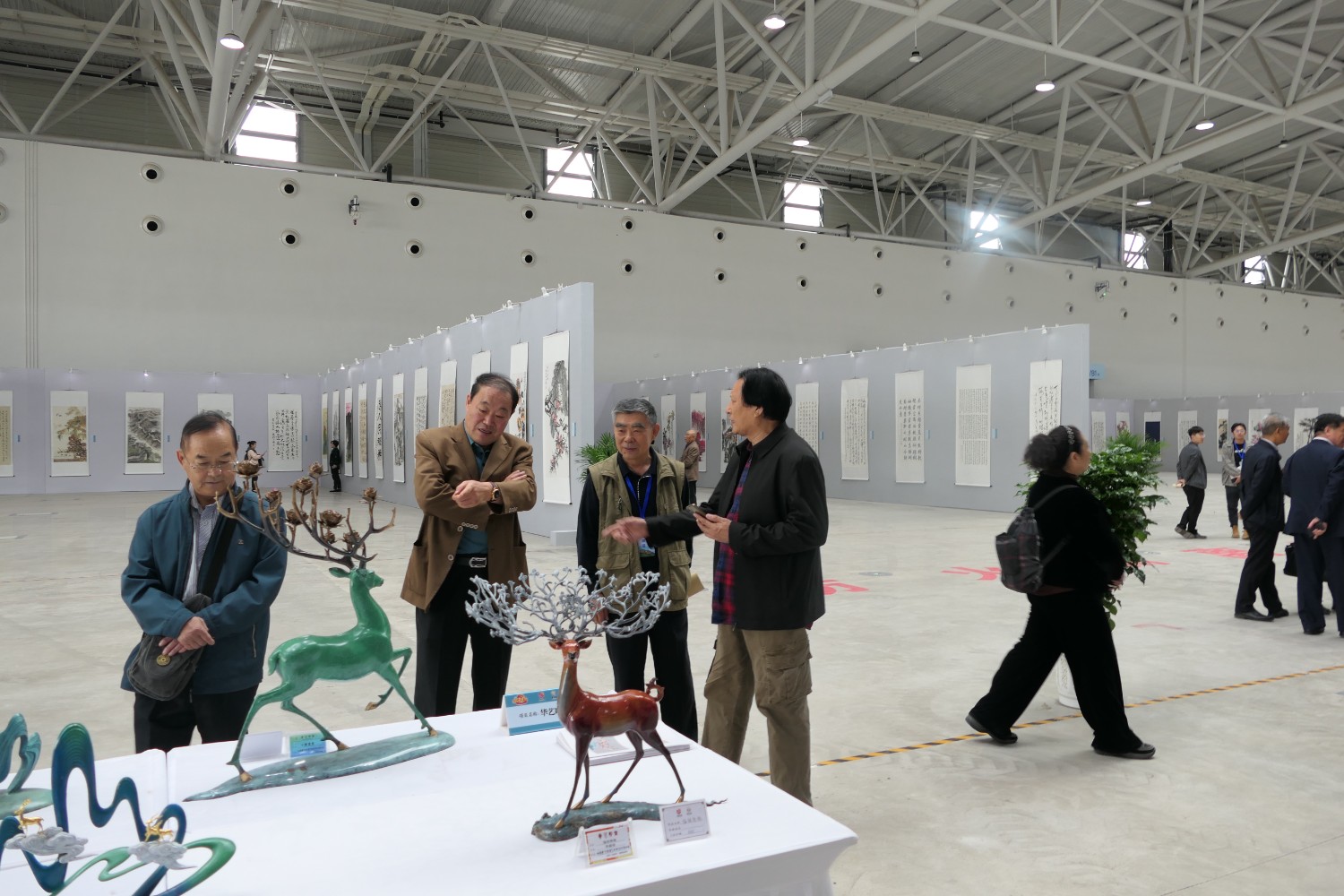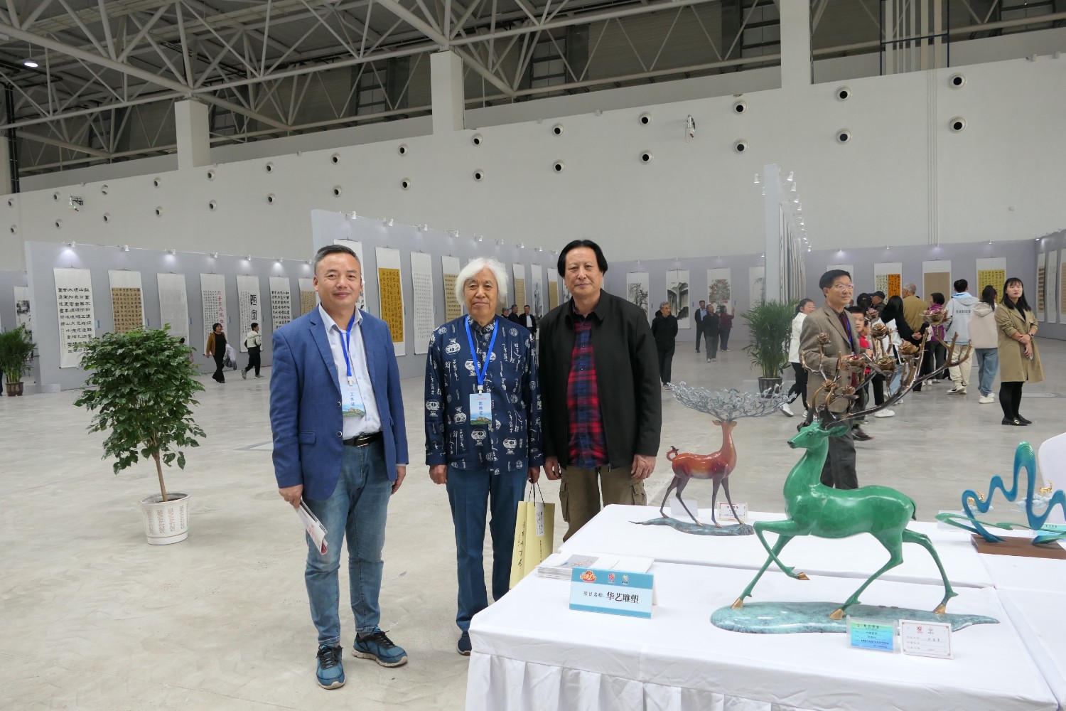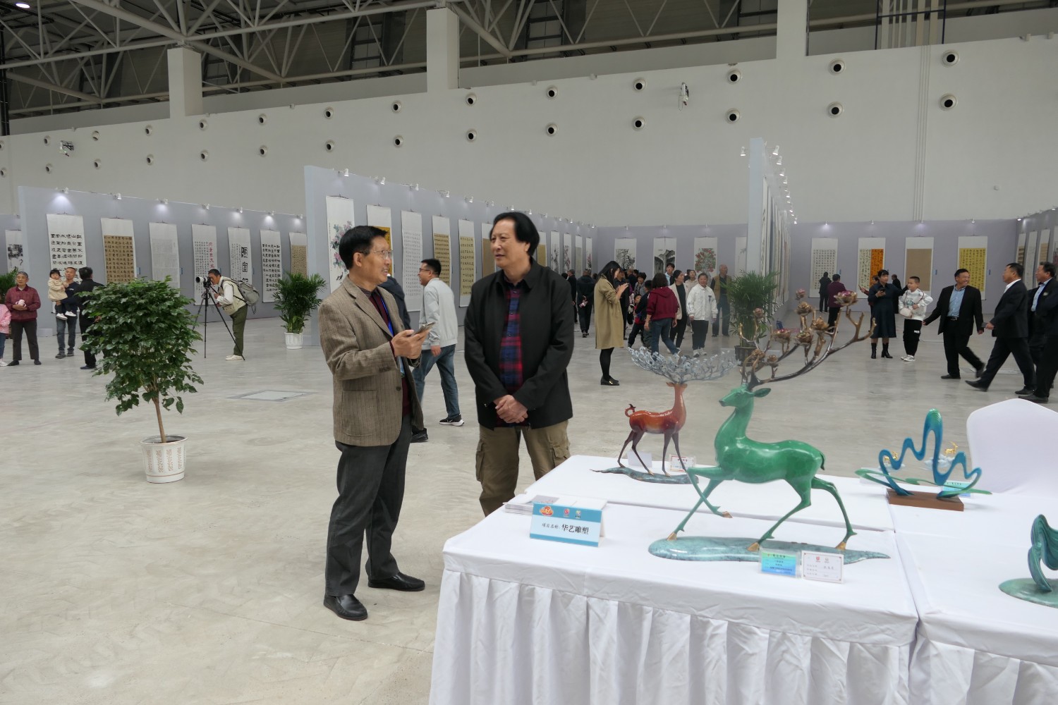 2024-1-222023年11月4日,“永远跟党走·奋进新征程”山东老年书画精品展在临朐国际会展中心开幕。出席开幕式的老领导和嘉宾有:原文化部直属机关党委常务副书记、中国老年书画研究会党支部书记王吉,山东省人大常委会原副主任国家森,山东省高级人民法院原院长尹忠显,山东省人大常委会原常委、财经委主任委员马金忠,山东老年大学原副校长孙波,山东老年书画研究会会长吴永福、副会长兼秘书长王荣福,副会长杨文侠、副会长王健。潍坊市委原常委、秘书长李光信,潍坊市人大常委会副主任韩幸福,潍坊市老年(老干部)书画研究会会长于友国,潍坊市老干部服务中心主任王德斌、副主任郭振森,潍坊市委常委、临朐县委书记刘艳芳,临朐县人大常委会主任田立军,临朐县政协主席王秀刚,临朐县委常委、办公室主任王磊等领导,临朐县人大常委主任田立军同志主持开幕式,临朐县老干部书画研究会邓世华书记汇报“山东老年书画精品展”筹备情况,临朐县委书记刘艳芳同志讲话,山东老年书画研究会会长吴永福在致辞,中国老年书画研究会王吉书记(中)宣布“山东老年书画精品展”开幕,各级领导及书画作者嘉宾出席开幕式。 中国工美艺术大师傅绍相书法作品“毛泽东诗词沁园春•长沙“参加展出。华艺安博买球遴选20余件青铜作品参加活动,傅绍相与朋友嘉宾合影留念,华艺精湛的青铜技艺,精美的青铜作品得到各级领导和观众的高度赞誉。