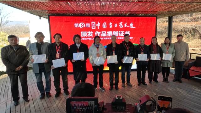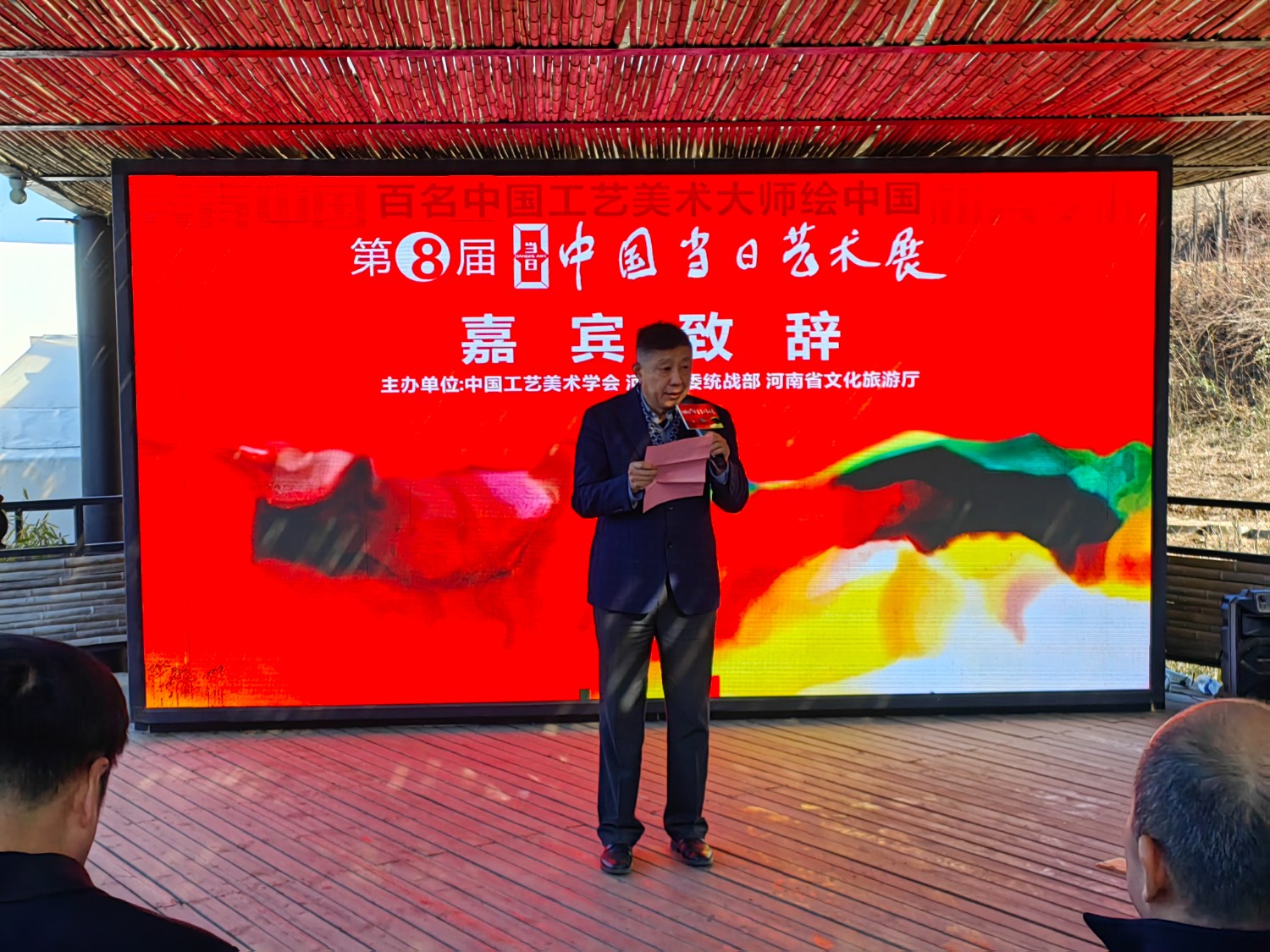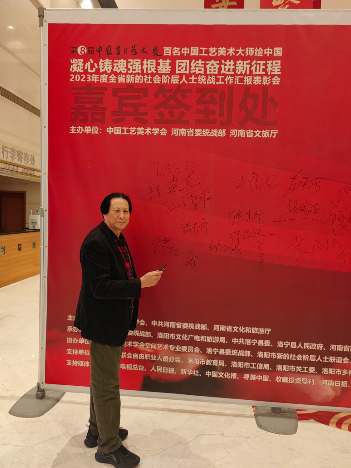 2024-3-112023年12月31日,由中国工艺美术学会、河南省委统战部、河南省文化旅游厅共同主办的第八届中国【当日】艺术展暨百名中国工艺美术大师绘中国活动在洛阳隆重举办。出席开幕式的主要领导及嘉宾有中国工艺美术学会党委书记、理事长才大颖,河南省委统战部副部长、一级巡视员梁险峰,洛阳市人大常委会副主任雷雪芹,洛阳市政协副主席魏险峰,中国工艺美术学会党委副书记王建良,河南省委统战部新阶层人士统战工作处处长、二级巡视员张天阵,洛宁县县长王瑞,洛宁县委统战部部长易剑波,中国工艺美术大师代表:赵国安、杨德全、苗炜、郑国明、熊建新、袁洪滨、傅绍相、王芝文、苗长强、雷天勇、孔相卿、贾会成、仵孟超、李竹玲、史延春、庞永辉、郭爱和,以及相关单位领导、专家、学者近二百余人出席了此次活动。