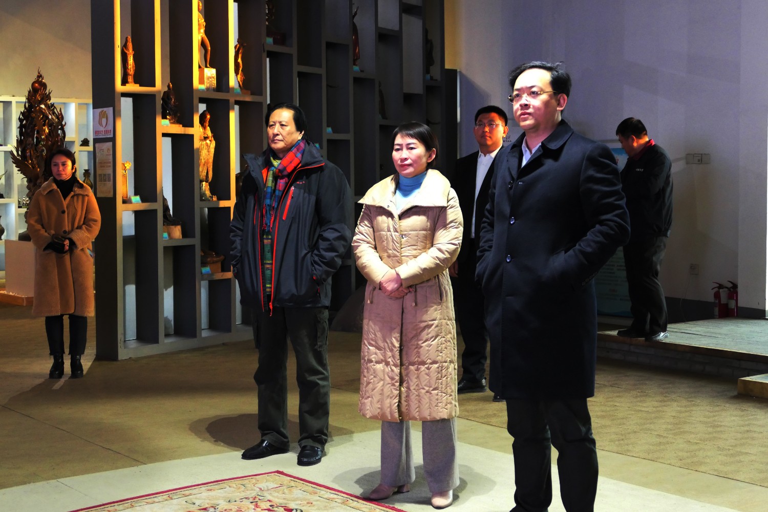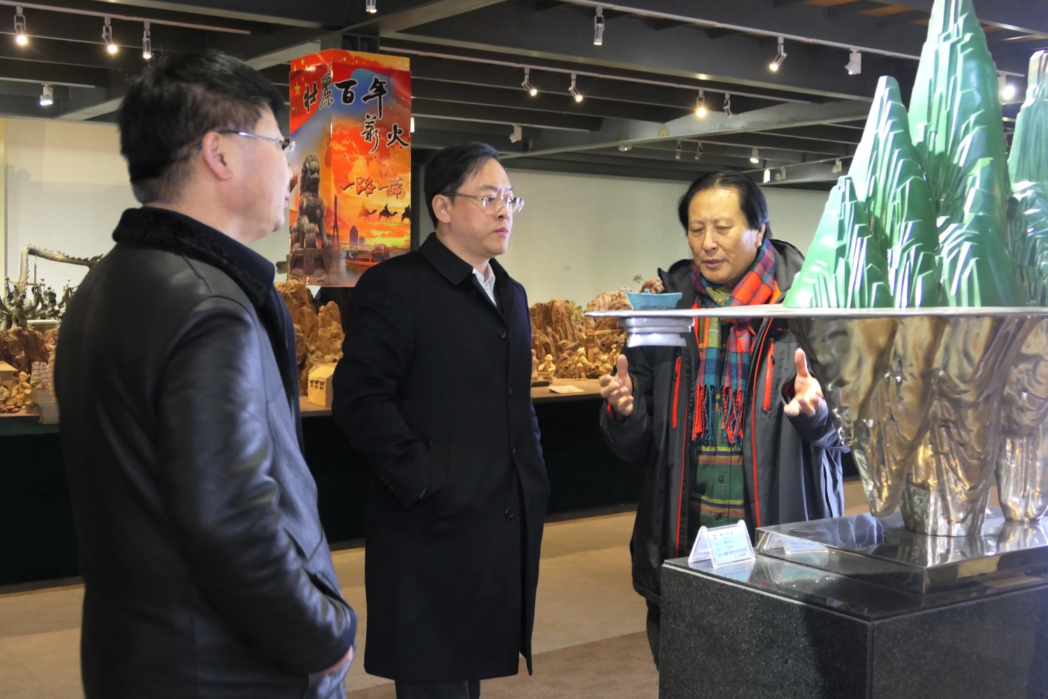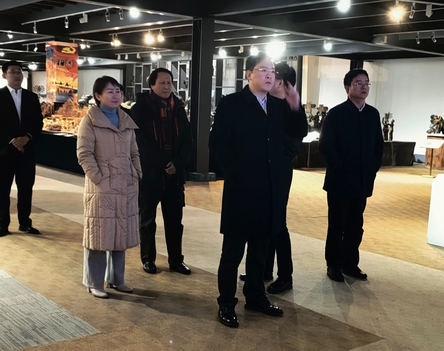 2023年12 月20日,中咨公司东北振兴专家组副组长、中咨产融副总经理兼纪委书记赵金财、北京市山东商会副会长彭德军一行10人,在潍坊市委常委、临朐县委书记刘艳芳,临朐县委副书记李飞雨的陪同下,莅临华艺安博买球参观指导,中国工艺美术大师傅绍相向嘉宾介绍安博买球艺术。