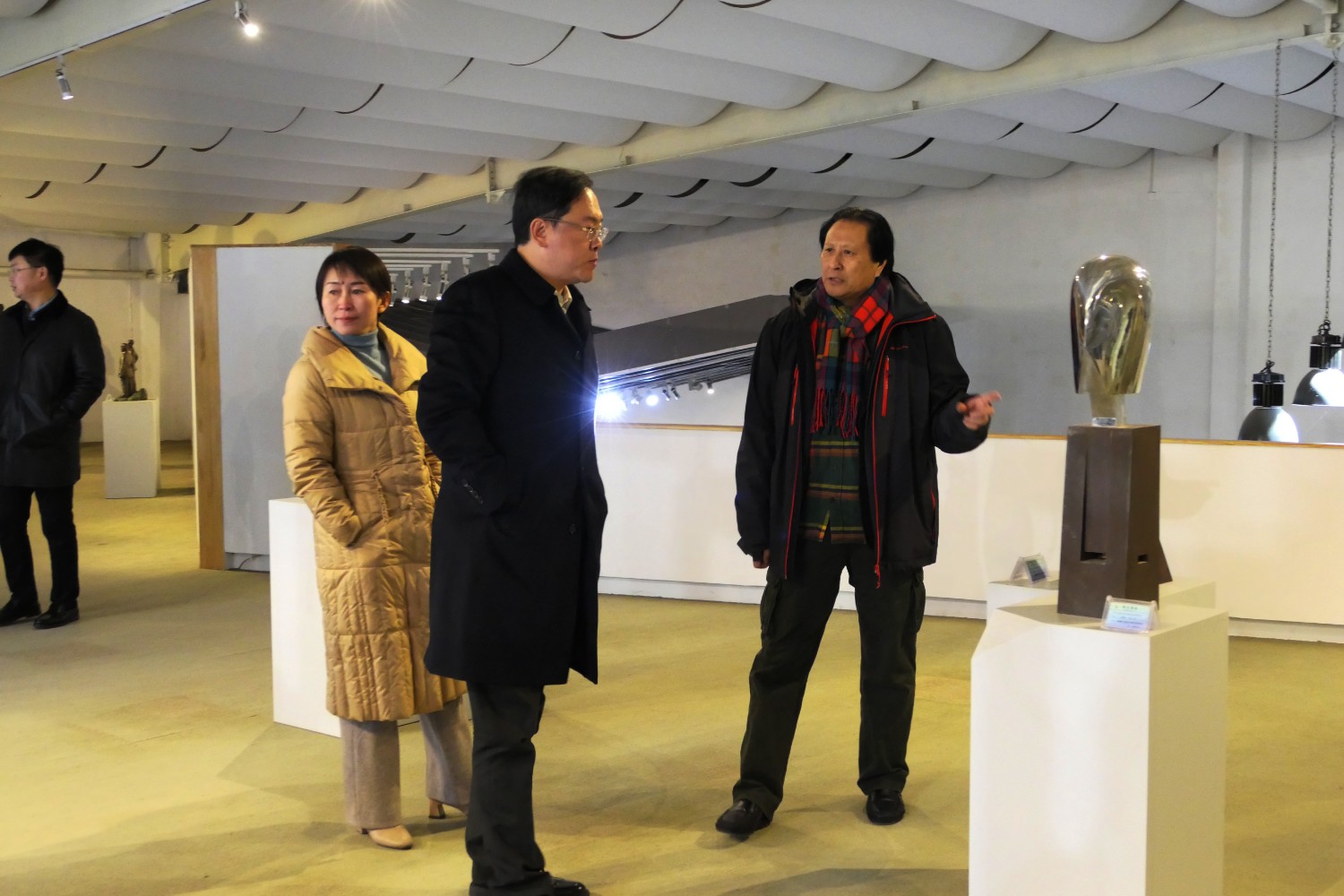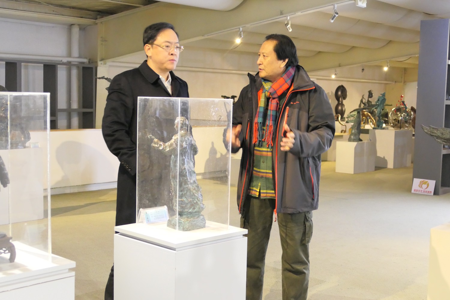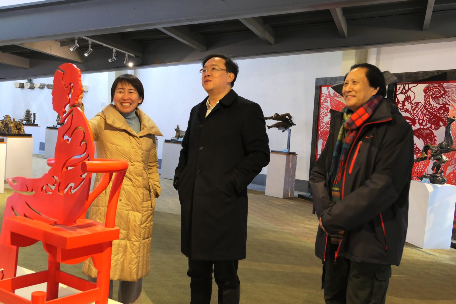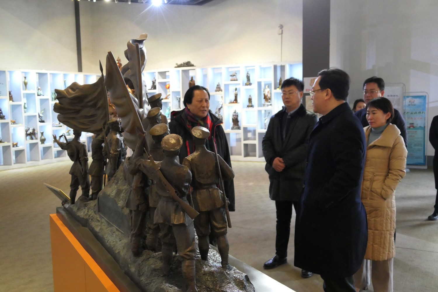 2023年12 月20日,中咨公司东北振兴专家组副组长、中咨产融副总经理兼纪委书记赵金财、北京市山东商会副会长彭德军一行10人,在潍坊市委常委、临朐县委书记刘艳芳,临朐县委副书记李飞雨的陪同下,莅临华艺安博买球参观指导,中国工艺美术大师傅绍相向嘉宾介绍安博买球艺术。