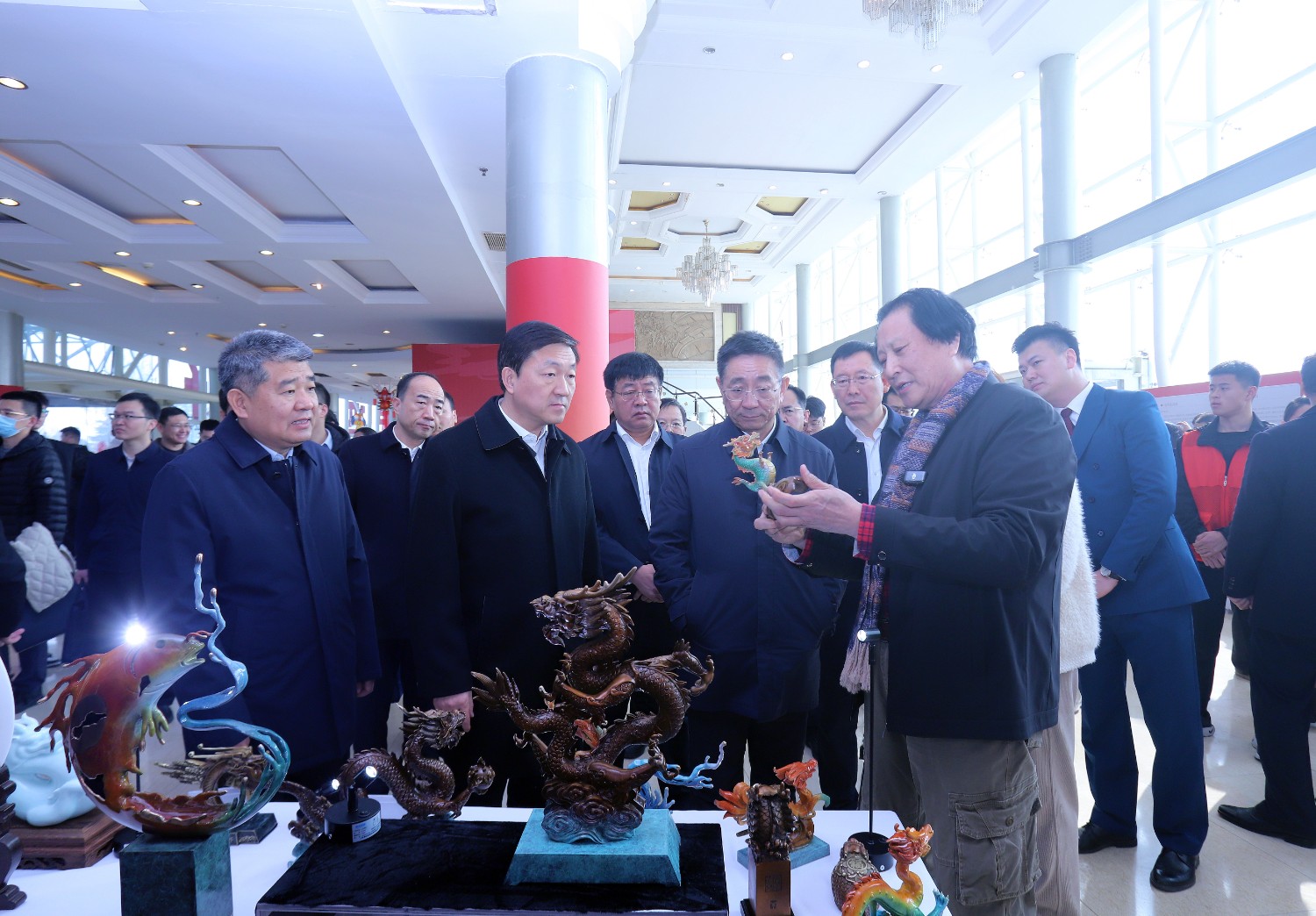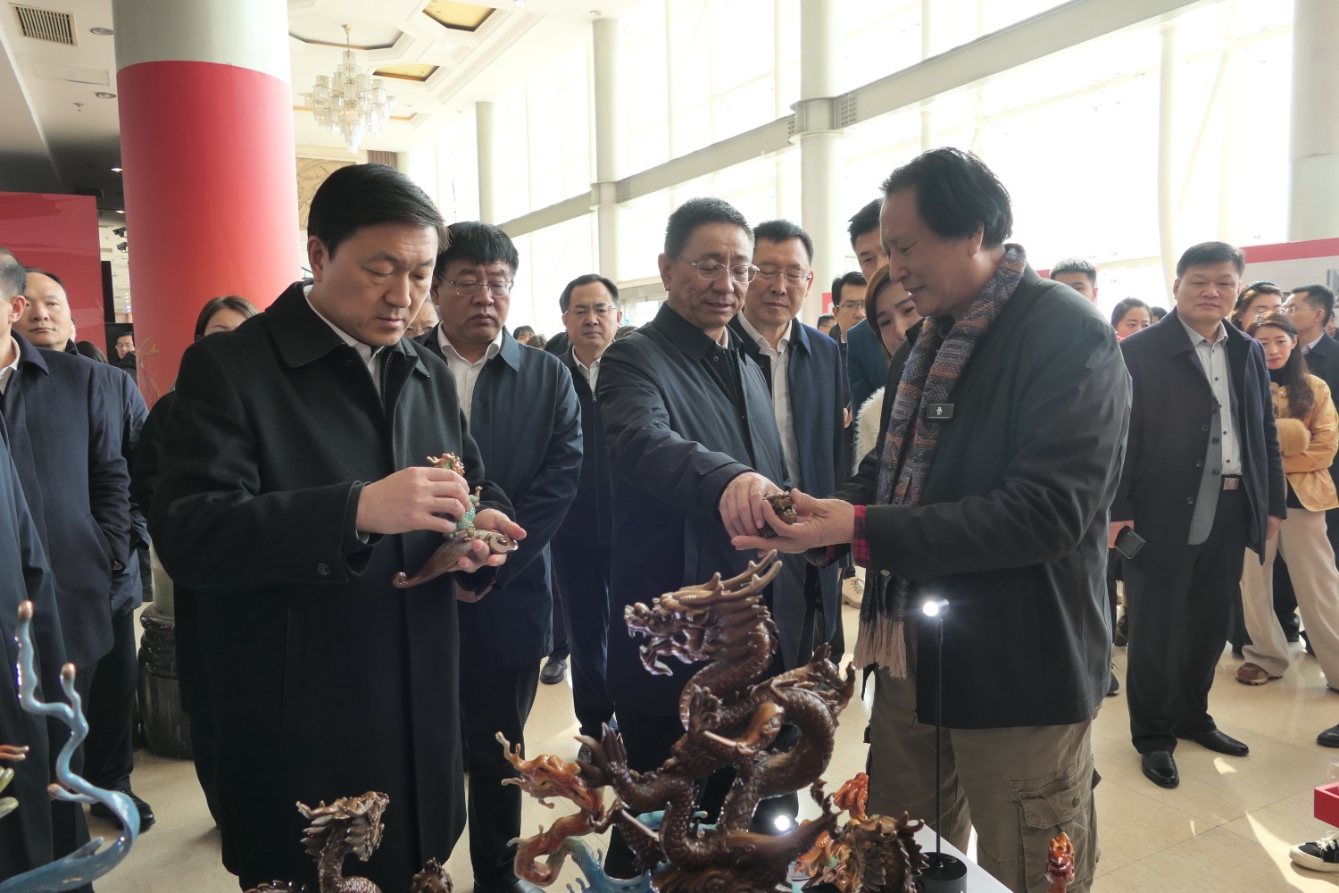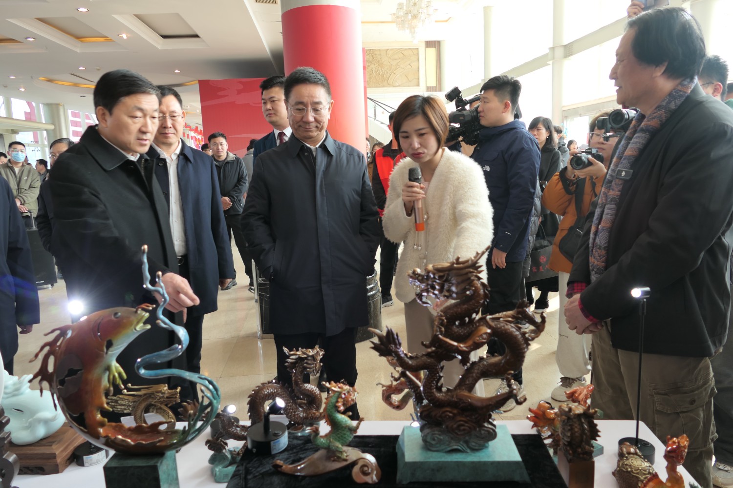 2024年3月11日,二月二“龙点晴、龙抬头”风筝放飞活动在潍城区浮烟山国际风筝放飞广场举行。山东省委常委、宣传部部长白玉刚,潍坊市委副书记、市长刘建军等领导出席活动,并参观了“龙年主题”文创展,中国工艺美术大师傅绍相设计的甲辰龙年青铜贺岁礼品,得到了各位领导的高度赞誉,白玉刚部长、刘建军市长与傅绍相亲切交流了“山东手造”青铜文创作品的研发情况及“黄河龙”青铜作品的设计制作。傅绍相接受潍坊电视台记者采访,并与参观华艺安博买球龙年青铜艺术品的外国留学生合影留念。
