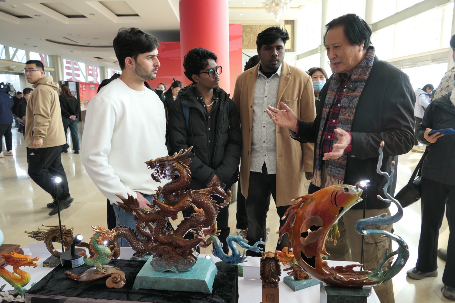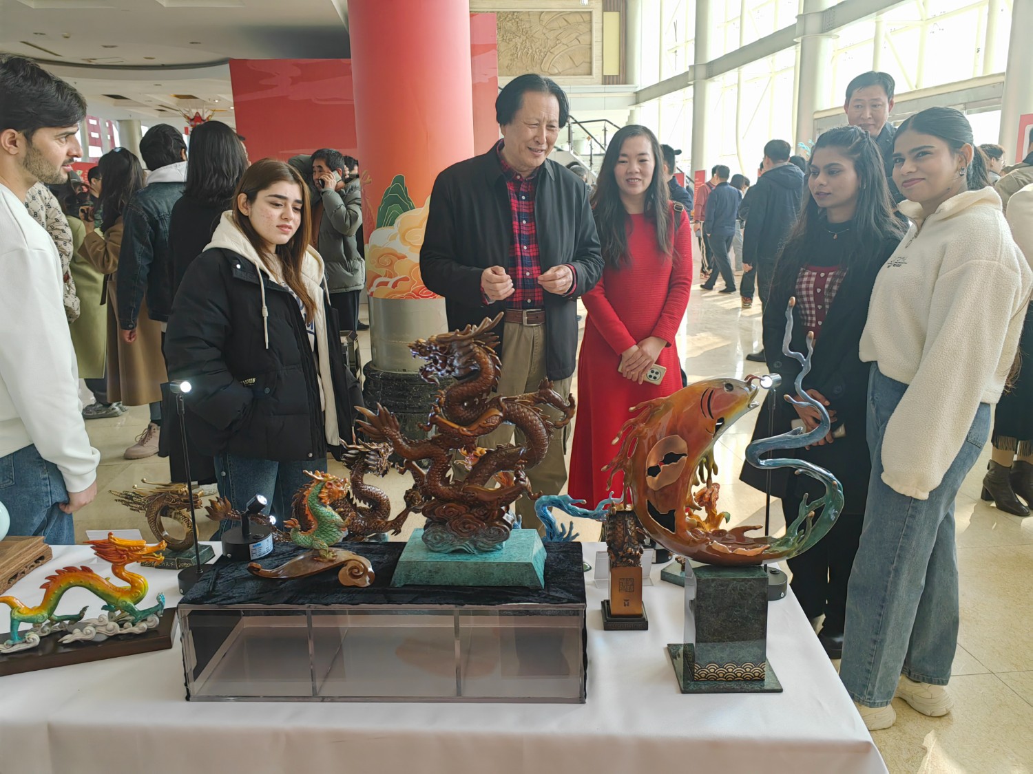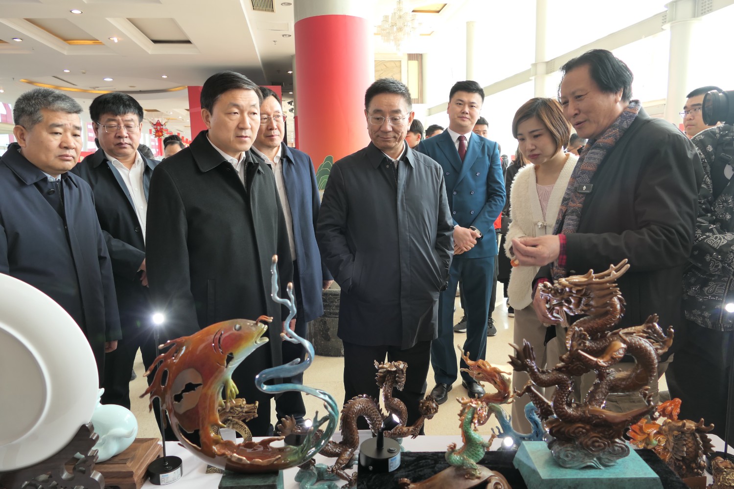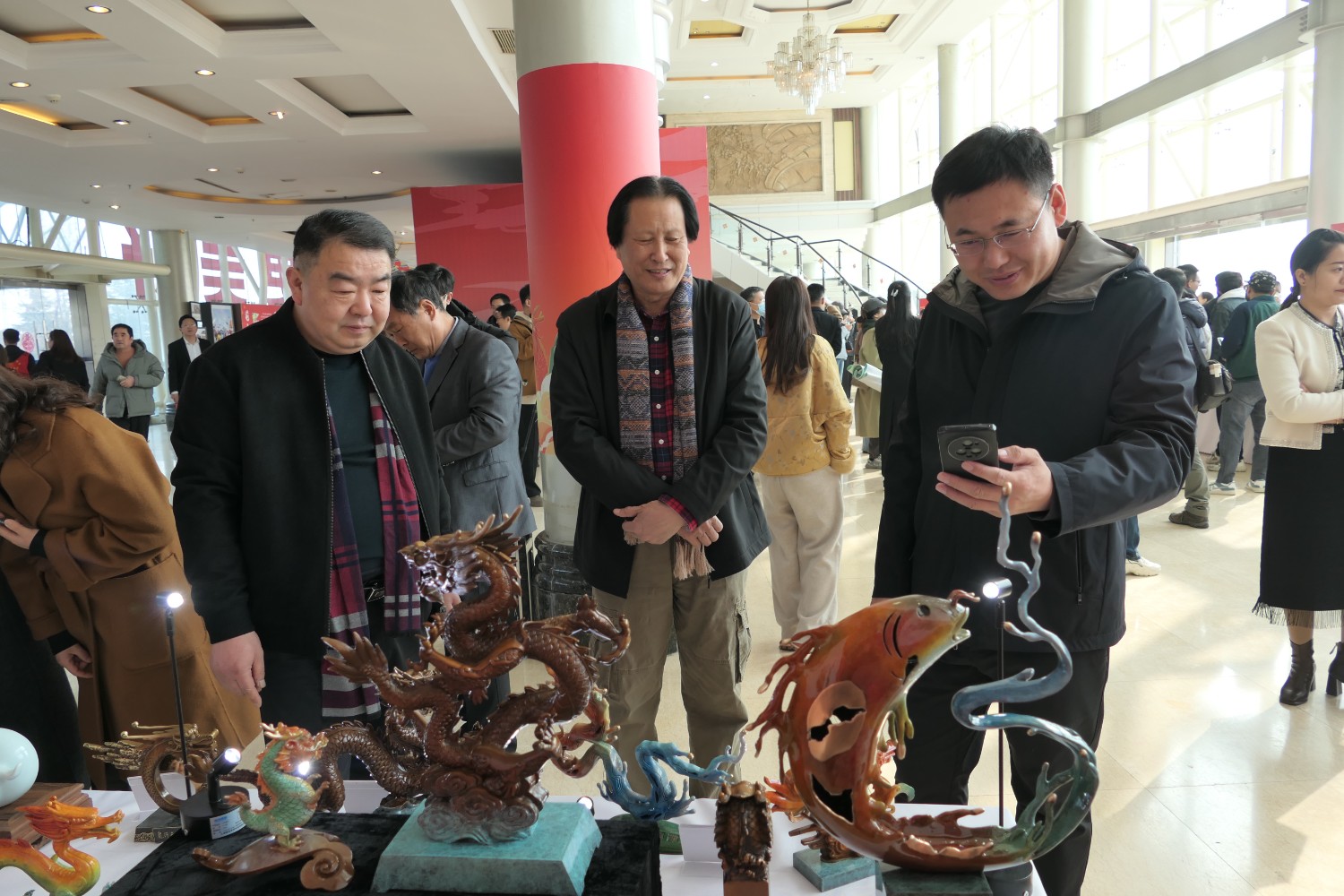 2024年3月11日,二月二“龙点晴、龙抬头”风筝放飞活动在潍城区浮烟山国际风筝放飞广场举行。山东省委常委、宣传部部长白玉刚,潍坊市委副书记、市长刘建军等领导出席活动,并参观了“龙年主题”文创展,中国工艺美术大师傅绍相设计的甲辰龙年青铜贺岁礼品,得到了各位领导的高度赞誉,白玉刚部长、刘建军市长与傅绍相亲切交流了“山东手造”青铜文创作品的研发情况及“黄河龙”青铜作品的设计制作。傅绍相接受潍坊电视台记者采访,并与参观华艺安博买球龙年青铜艺术品的外国留学生合影留念。